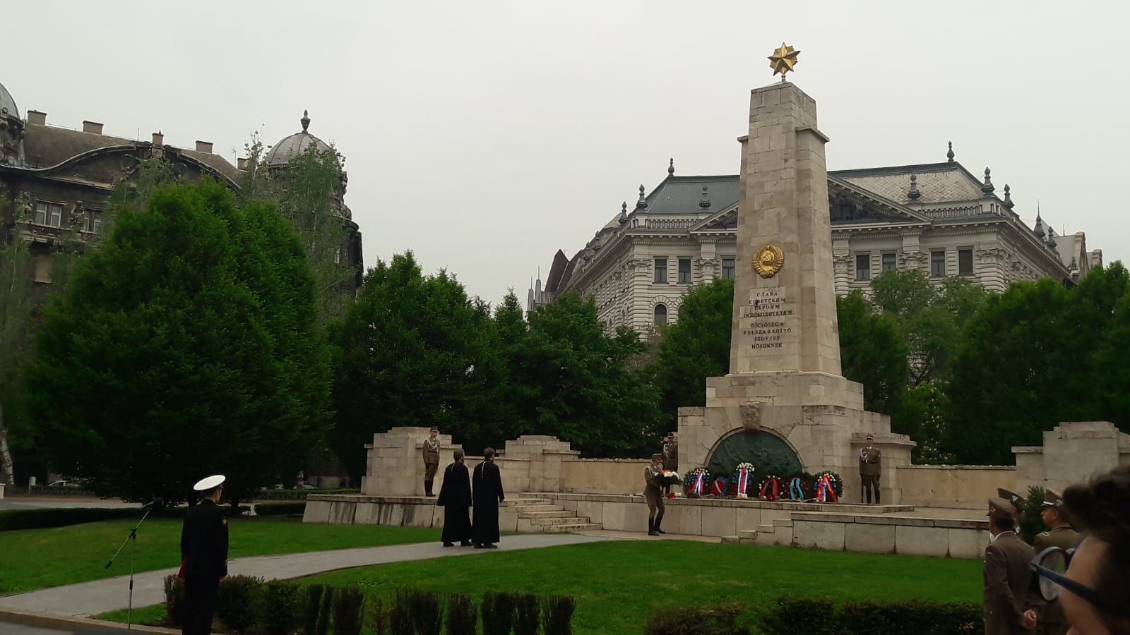 На площади Сабадшаг в Будапеште прошло возложение венков к памятнику советским воинам.