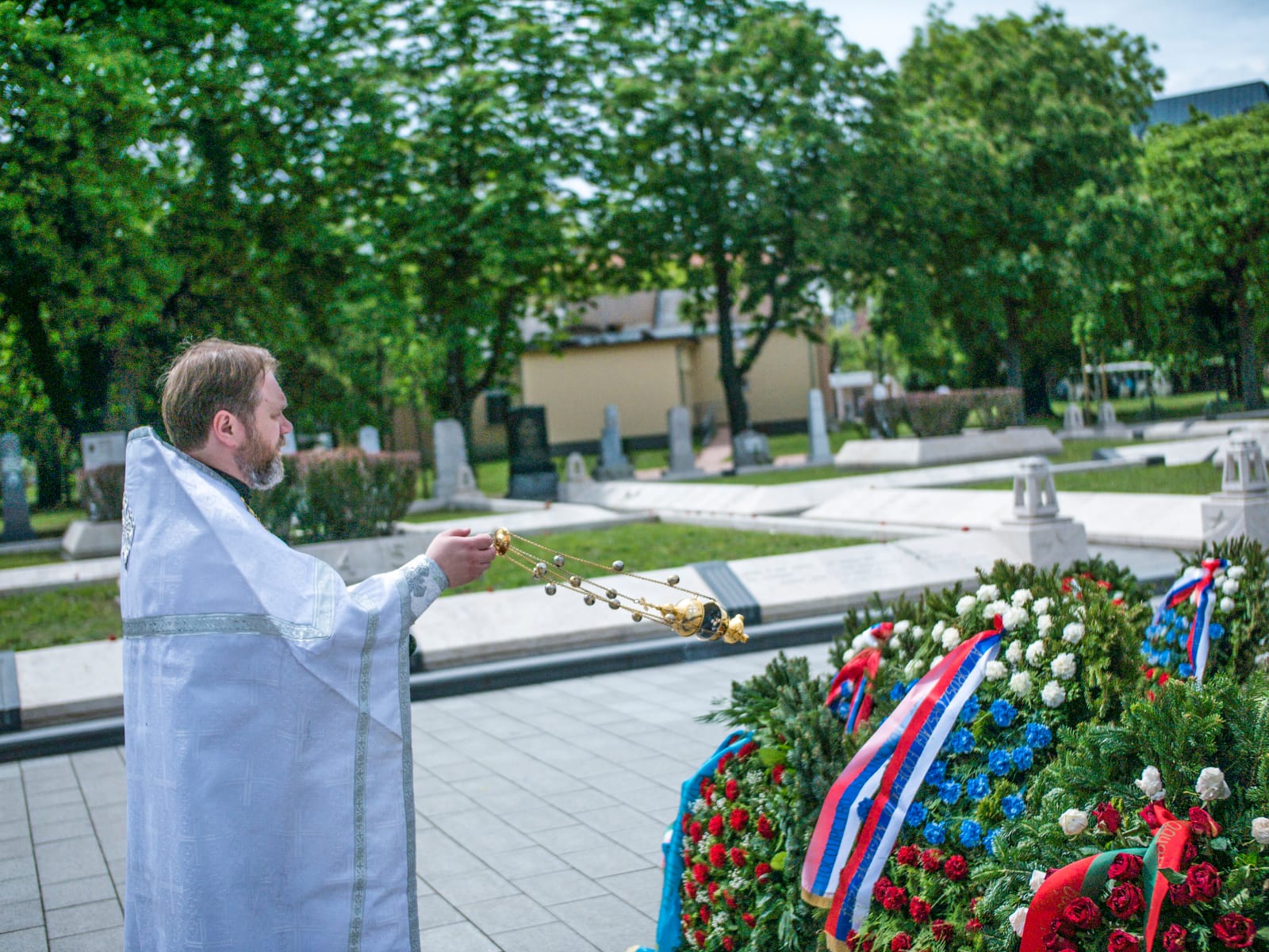 Возложение венков на могилы советских воинов на будапештском кладбище Керепеши