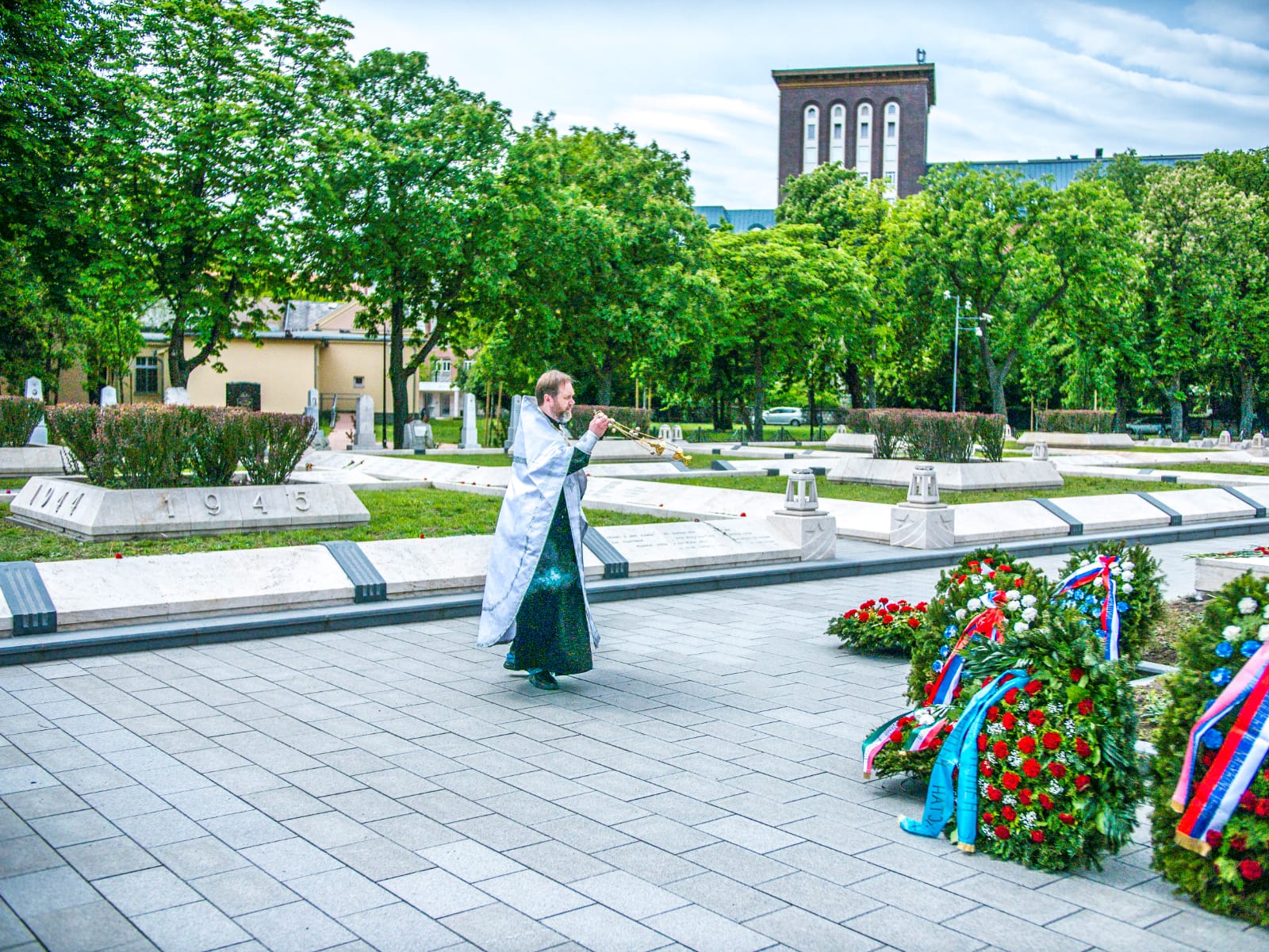 Возложение венков на могилы советских воинов на будапештском кладбище Керепеши
