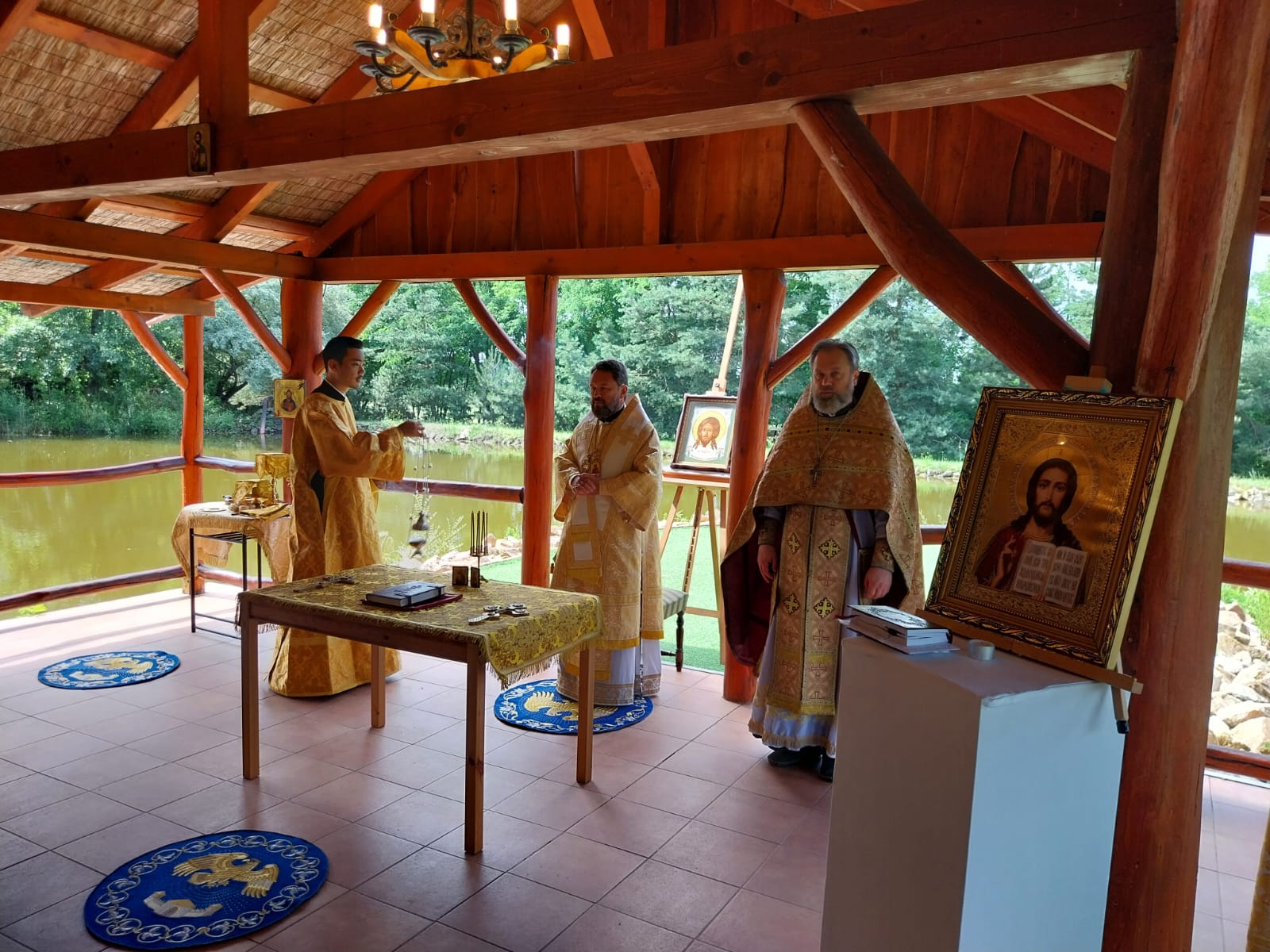 Архиерейская Божественная литургия в детском православном лагере прихода во имя Святой Троицы г. Будапешта.