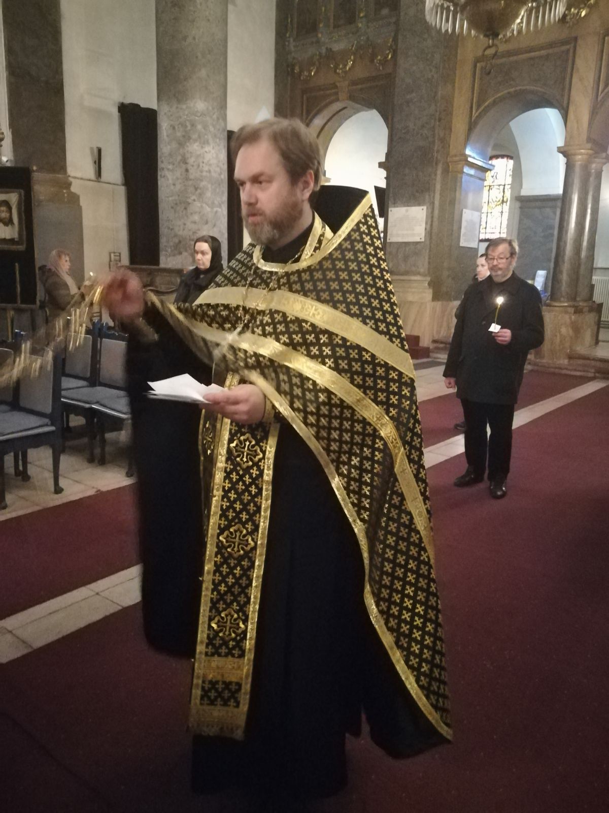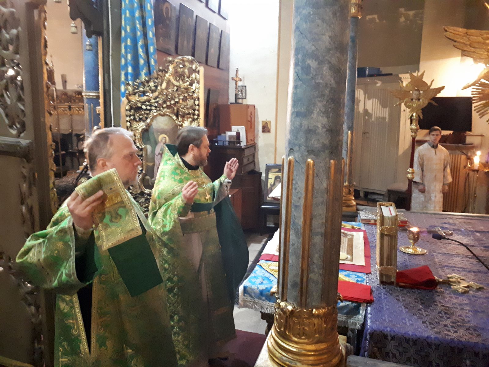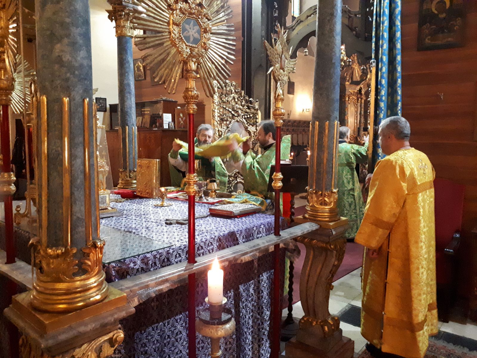 В Великую Субботу, когда Церковь празднует так же Благовещение Пресвятой Богородицы в Успенском кафедральном соборе настоятель прихода во имя Святой Троицы иерей Димитрий Корнилов совершил раннюю Божественную литургию Василия Великого. Ему сослужили священник прихода Святослав Булах. Хор пел под управлением Евы Гволик.