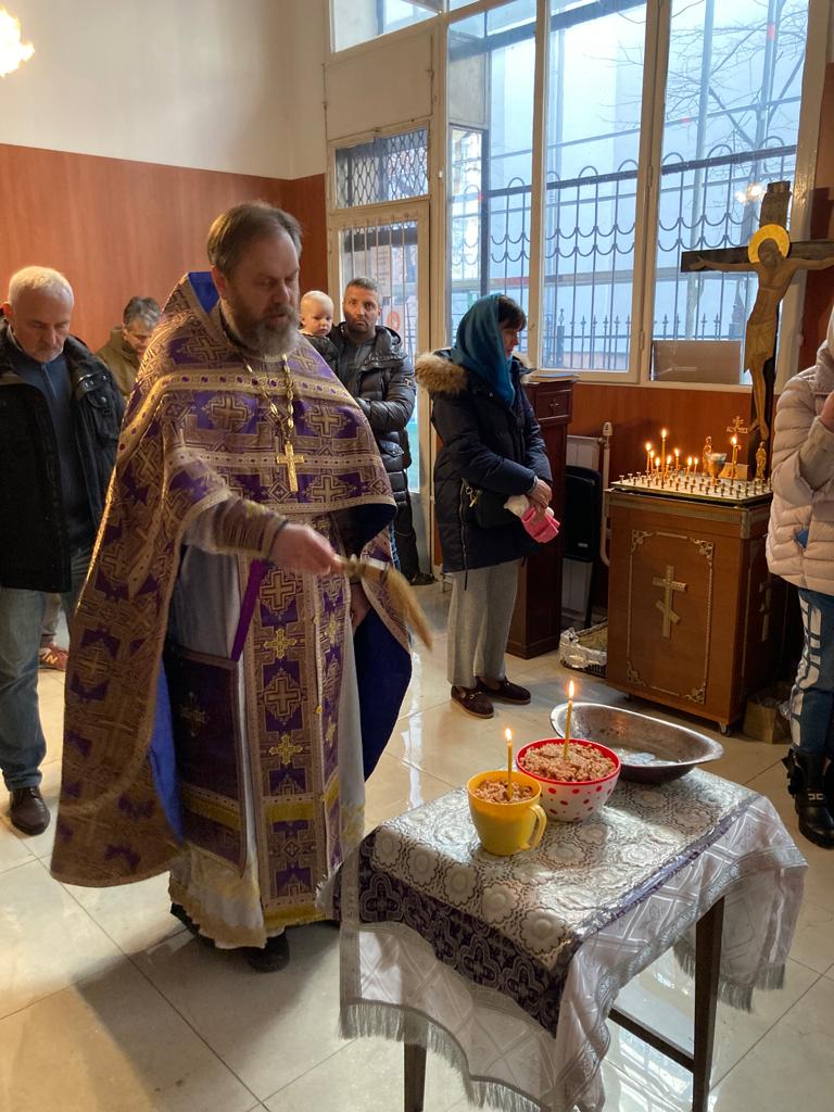 В первую субботу Великого поста Церковь совершает память великомученика Феодора Тирона. В день памяти святого, 12 марта 2022 года, настоятель Свято-Троицкого прихода г. Будапешта иерей Димитрий Корнилов совершил Божественную литургию. По уставу, в субботние и воскресные дни Великого поста не совершаются постные богослужения. По традиции цвет священнических облачений меняется с черного на фиолетовый. По отпусте отец Димитрий обратился к молящимся со словом поучения, освятил коливо, которое в этот день принесли многочисленные прихожане, поздравил причастников с принятием Святых Христовых Таин и преподал всем пастырское благословение.