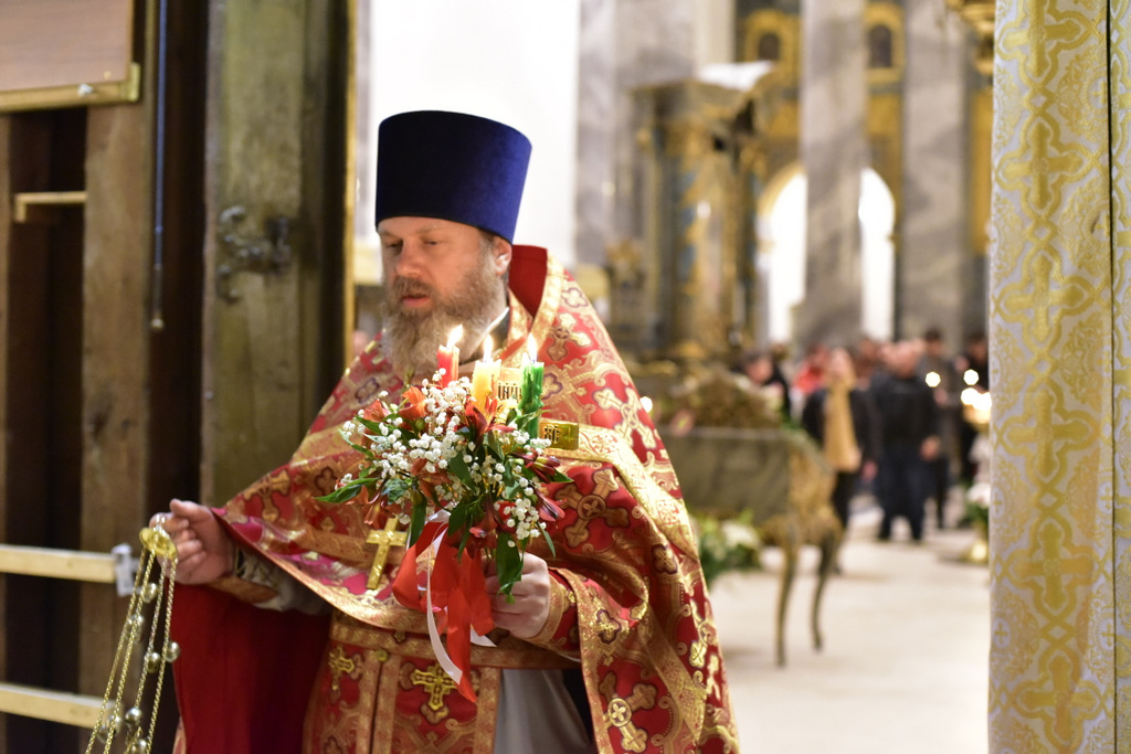 Понедельник Светлой седмицы. Великая вечерня. Вечером 25 апреля 2022г. в Успенском кафедральном соборе состоялась служба пасхальной великой вечерни, возглавил которую настоятель Свято-Троицкого прихода иерей Димитрий Корнилов. Пасха Христова является для всех христиан самым светлым, всеобщим и продолжительнейшим торжеством: все церковные службы последующей за ней седмицы бывают такими же праздничными и величественными, как и в первый ее день. Все содержание вечернего пасхального богослужения было наполнено радостнейшими песнопениями, прославляющими Воскресшего Господа. В завершение богослужения, после пения стихир Пасхи, отец Димитрий обратился к прихожанам со словами Пасхального приветствия. В них он поделился радостью…