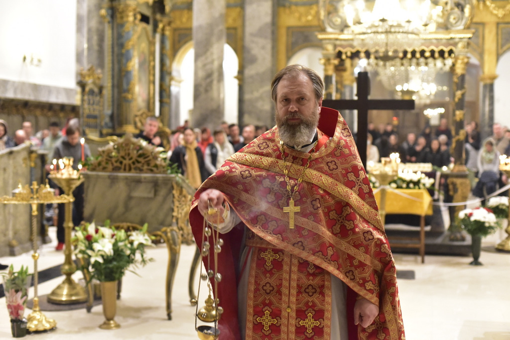 Дорогие братья и сестры, наши прихожане! Приглашаю вас на Пасхальные богослужения, которые пройдут в восстановленном Успенском соборе ( 5 район, Petőfi ter. 2). Учитывая ваши пожелания и большое число новых прихожан будут совершены две Божественные литургии на церковно-славянском языке: 24 апреля, в воскресение ночью около 2-00 (сразу после пасхальной заутрени) и утром в 7-45. Начало Пасхальных богослужений в соборе (Полунощница, Пасхальная заутреня на трех языках) 23 апреля, в субботу 23-30. Освящение пасхальных куличей начнется в субботу с 14-00 до 23-00 и после Пасхальной Божественной литургии. Освящение производят священники нашего…