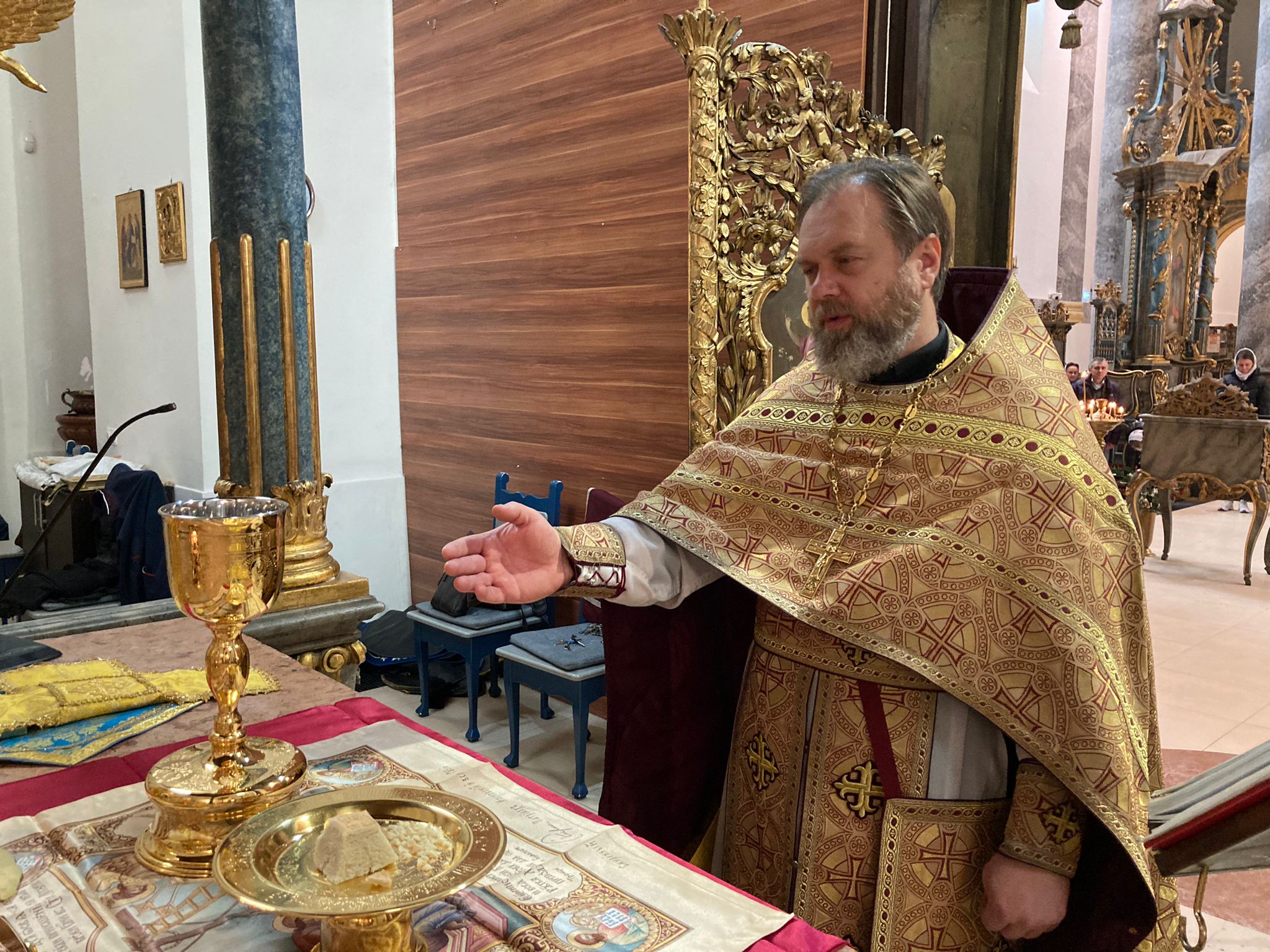 Божественная литургия в субботу Седмица 22-я по Пятидесятнице в Свято-Троицком приходе г. Будапешта. Апп. от 70-ти Тертия, Марка, Иуста и Артемы.