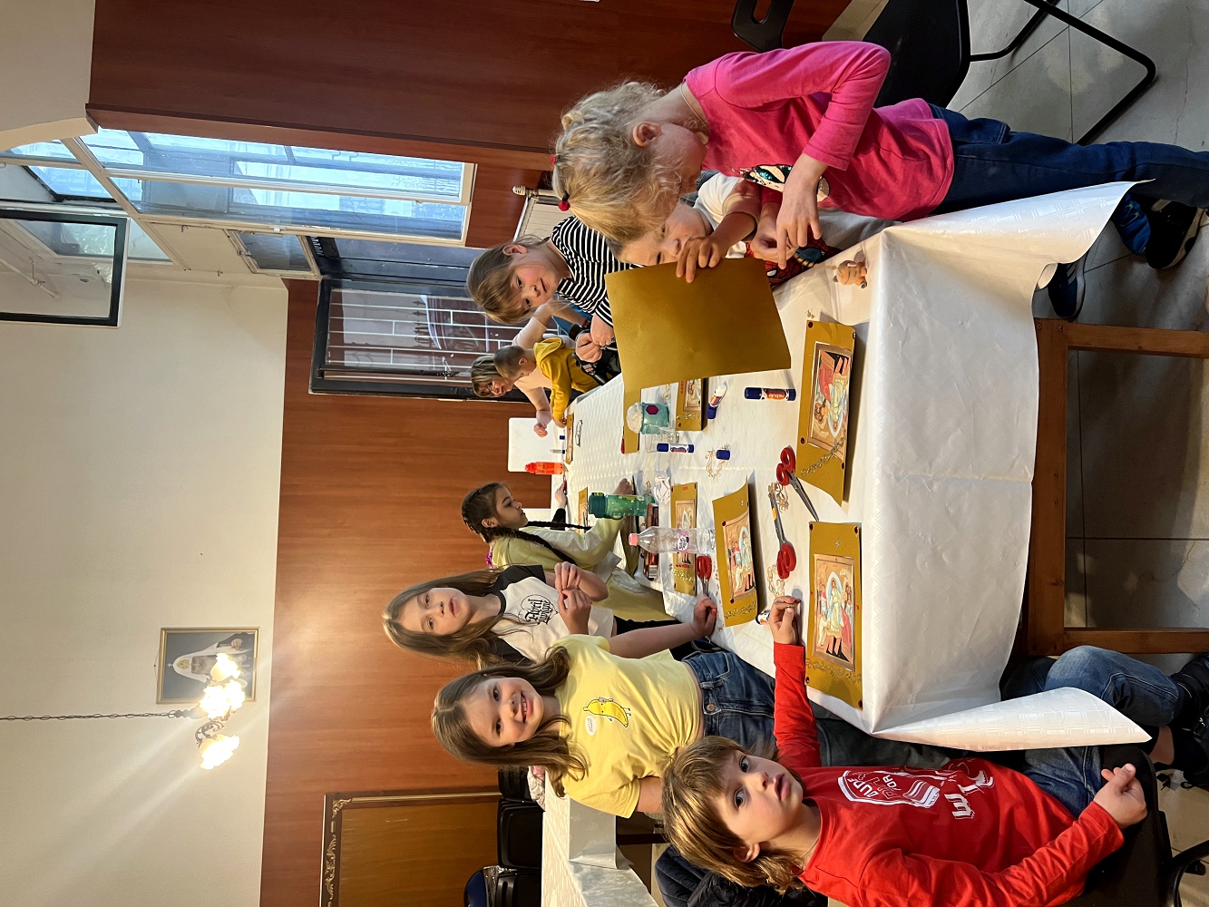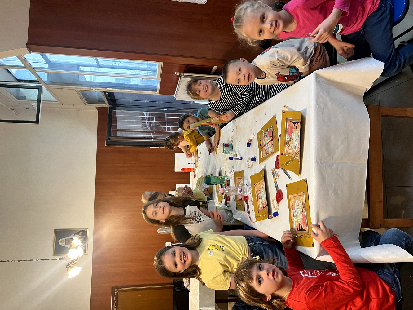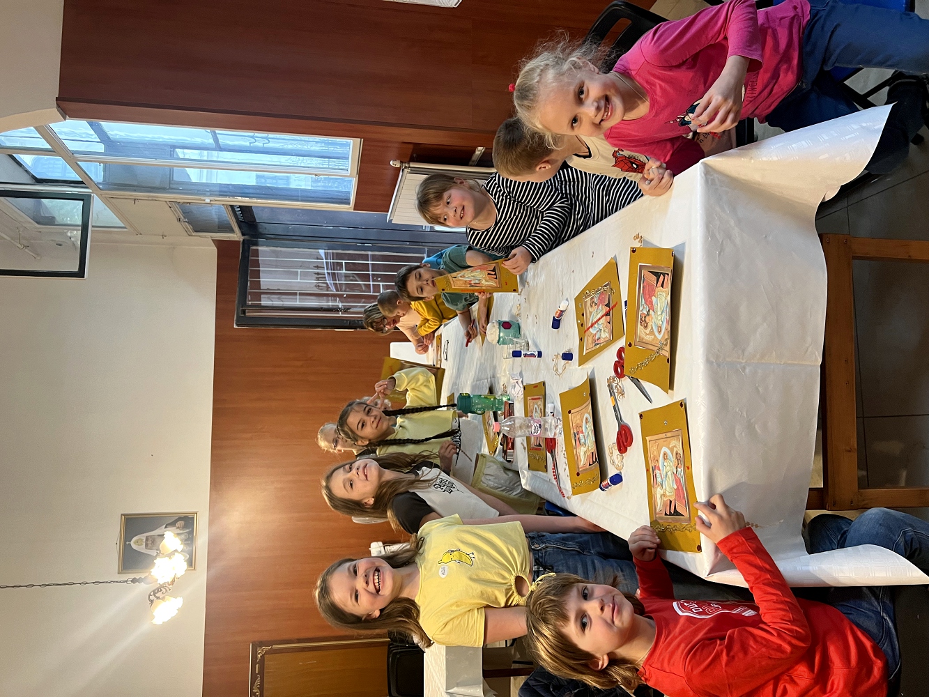 Христос воскресе!Пасха вроде уже давно прошла — и тем не менее мы всё еще приветствуем друг друга радостными словами: «Христос воскресе!» И поем пасхальный тропарь вместо привычных молитв…Почему это так? Кто такие жены-мироносицы? А вдруг ТАМ все же ничего нет? Куда, в какие глубины, уходит наша традиция красить пасхальные яйца? Почему на иконе Воскресения Христа — не торжествующий сияющий Бог, а открытые гробы ада? Обо всем этом мы говорили на занятии с младшей группой 29 мая, в субботу. Потом — создание своей домашней иконы Воскресения, чаепитие, общение и традиционные мультики. Ну, а…
