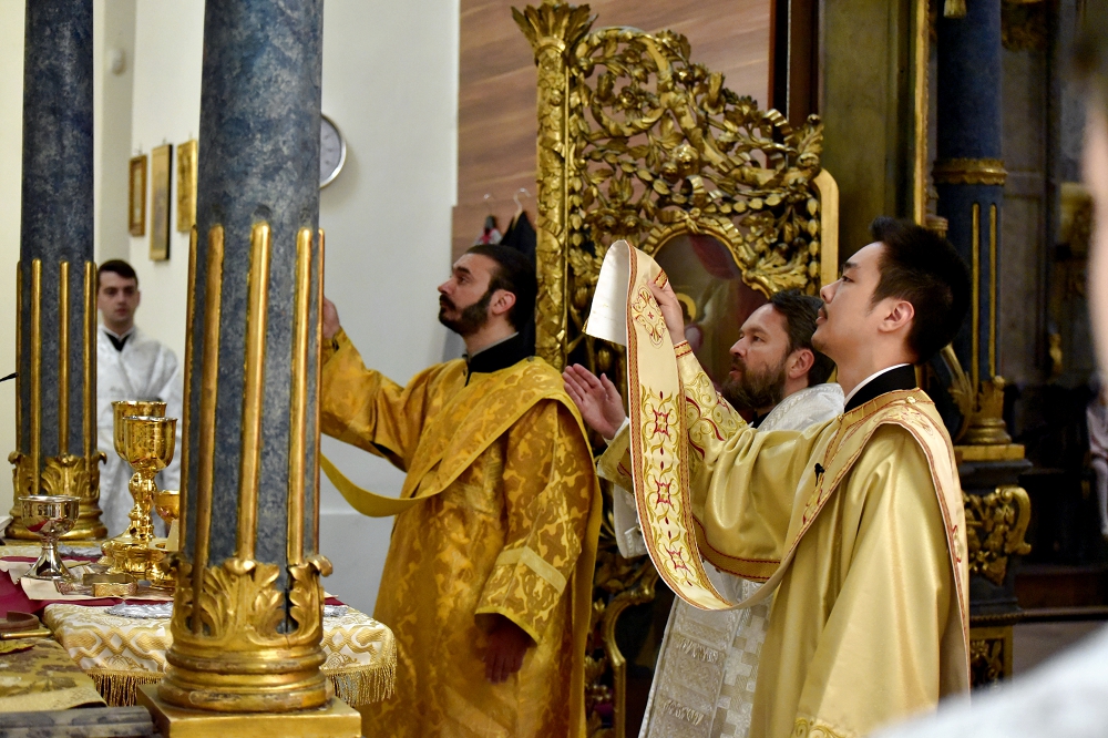 Божественная литургия в субботу седмицы 6-ой по Пасхе в Свято-Троицком приходе г. Будапешта.