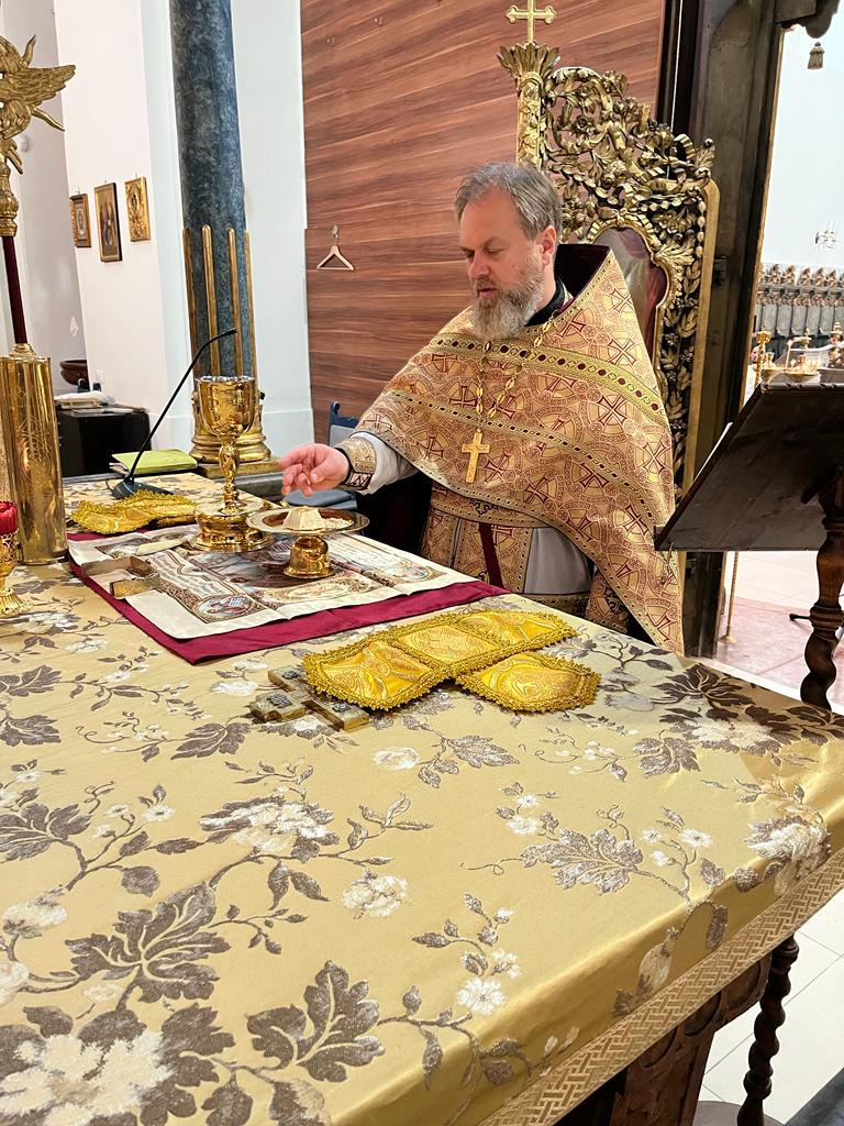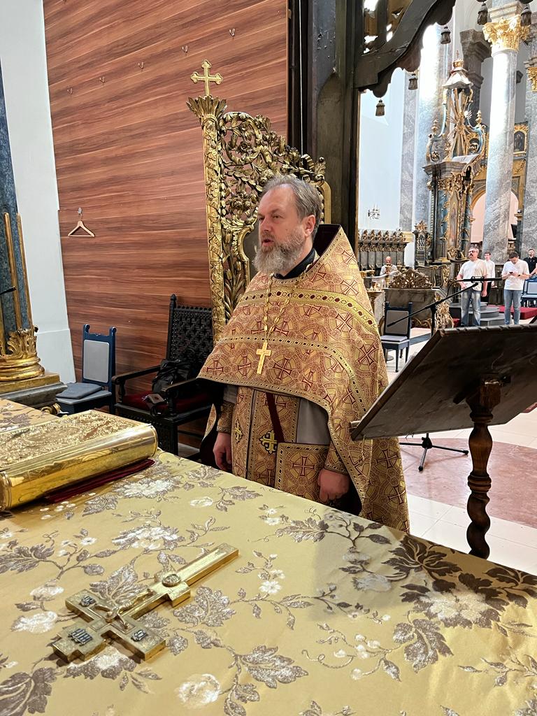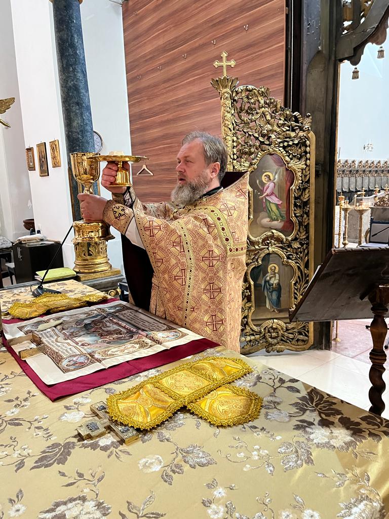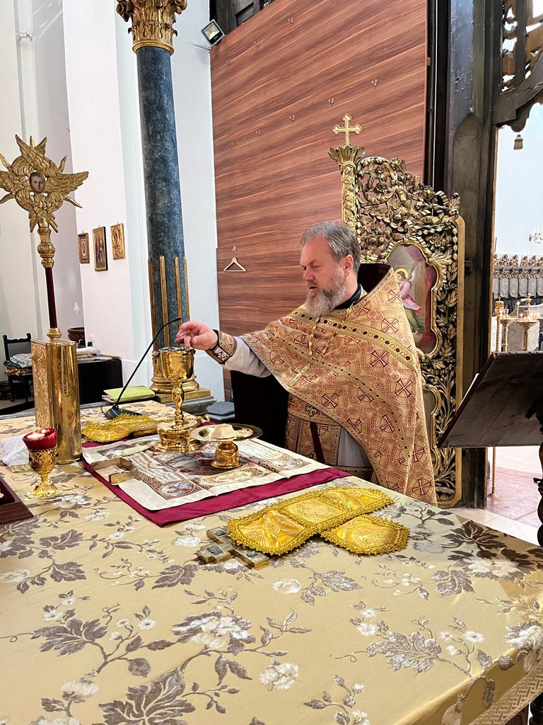 9 сентября 2023 года, в субботу Недели 14-ой по Пятидесятнице, прп. Моисея Мурина, прп. Саввы Псковского, в Свято-Троицком приходе Успенского собора г. Будапешта настоятель прихода иерей Димитрий Корнилов совершил Божественную литургию. Молитвенные песнопения богослужения исполнили певчие приходского хора под управлением Евы Гволик. Перед выносом Святых Даров иерей Димитрий произнес проповедь, а по заамвонной молитве поблагодарил собравшихся за общую молитву, поздравил причастников со Святыми Тайнами, именинников с днем Ангела и преподал всем свое благословение.