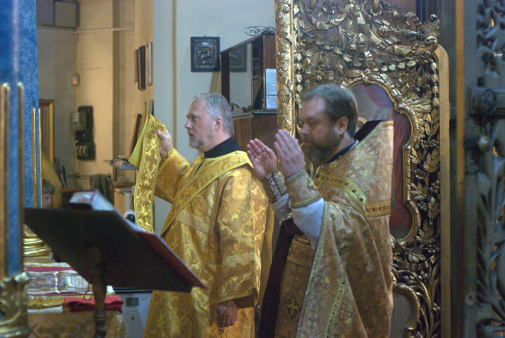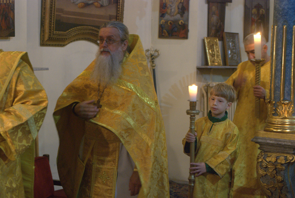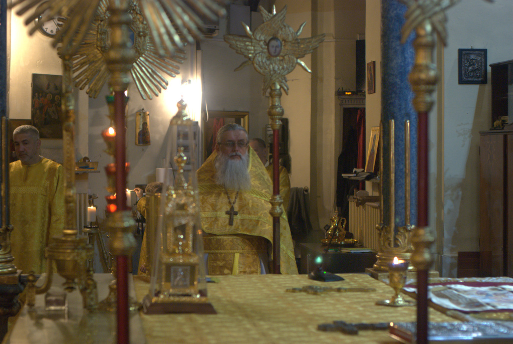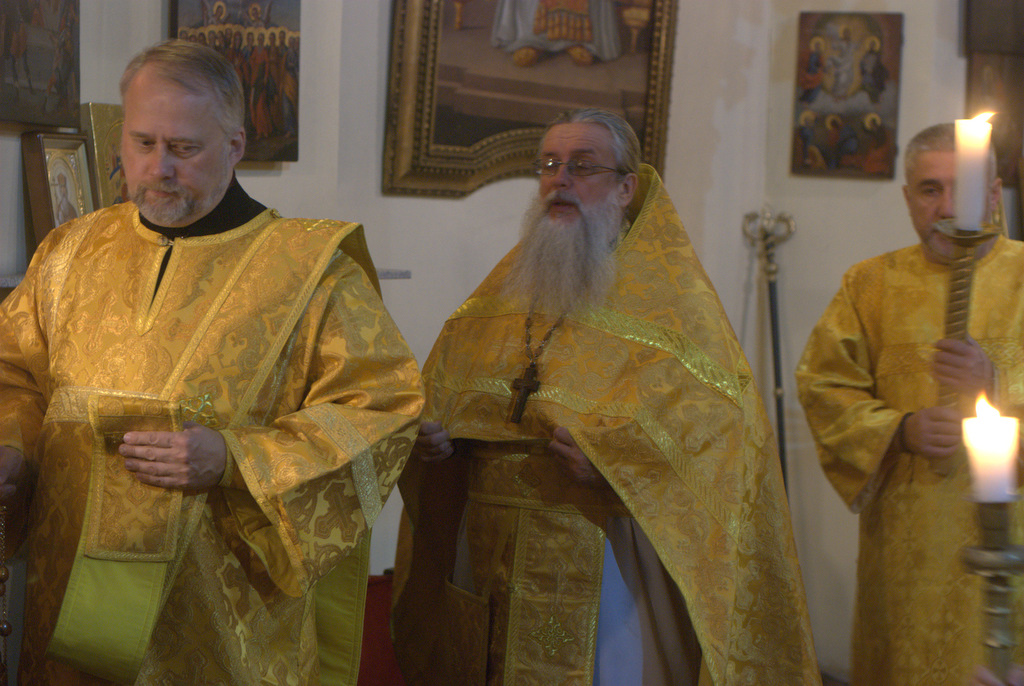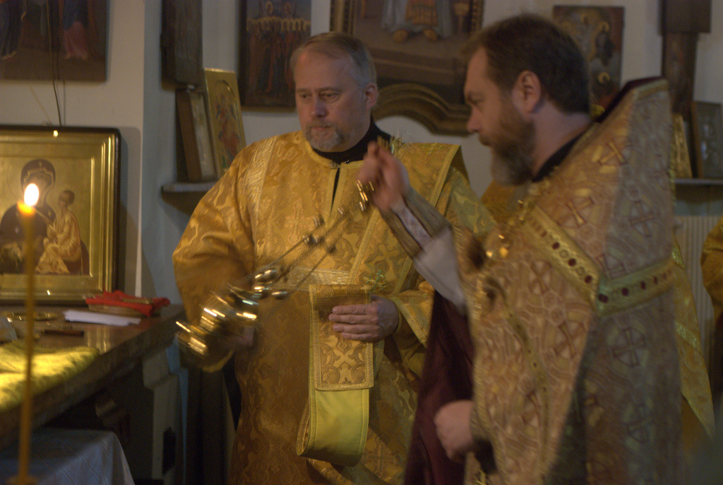 15 октября 2017 года в Неделю 19-ю по Пятидесятнице, в день памяти Сщмч. Киприана и мц. Иустины, Блж. Андрея, Христа ради юродивого, Прав. воина Феодора Ушакова, настоятель прихода во имя Святой Троицы иерей Димитрий Корнилов возглавил служение ранней Божественной литургии в Успенском соборе г. Будапешта. Ему сослужил протоиерей Александр Смирнов из Переславской епархии и диакон Владимир Чепыжов. Хор пел под управлением регента Евы Гволик.