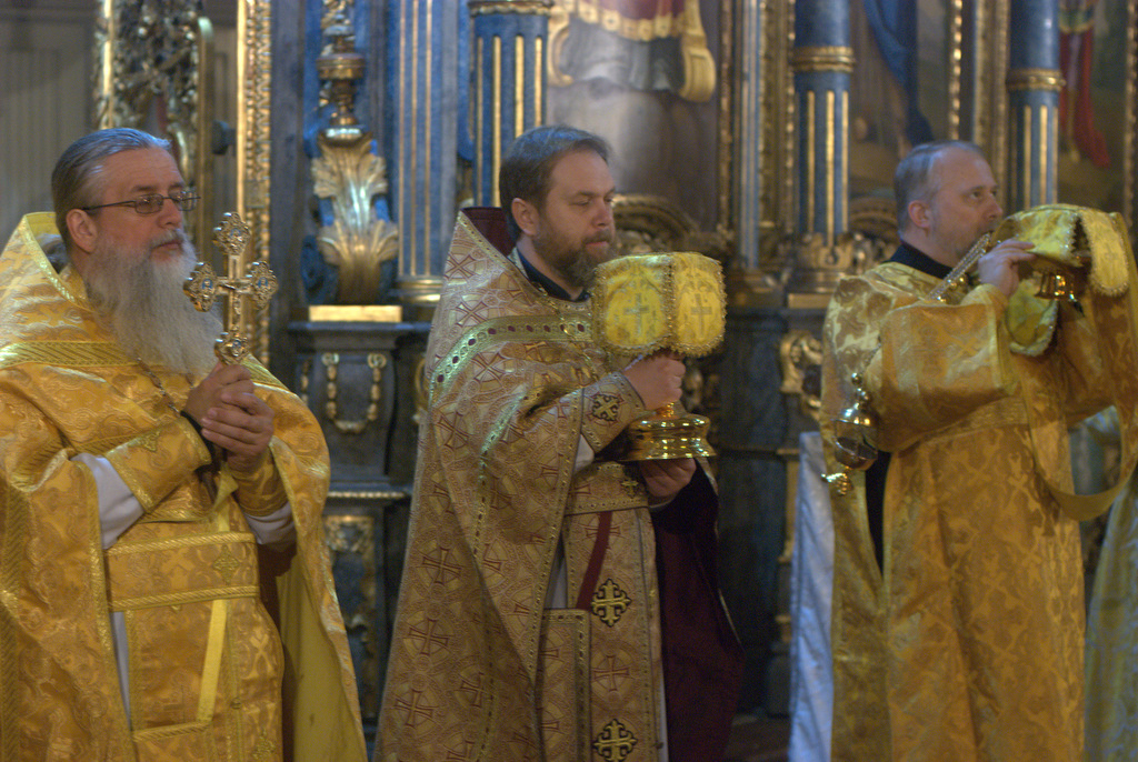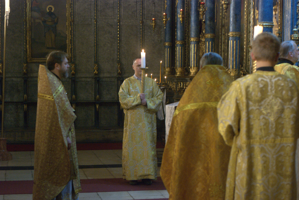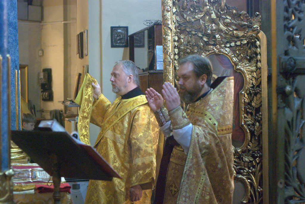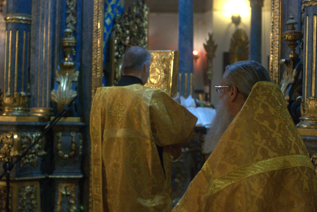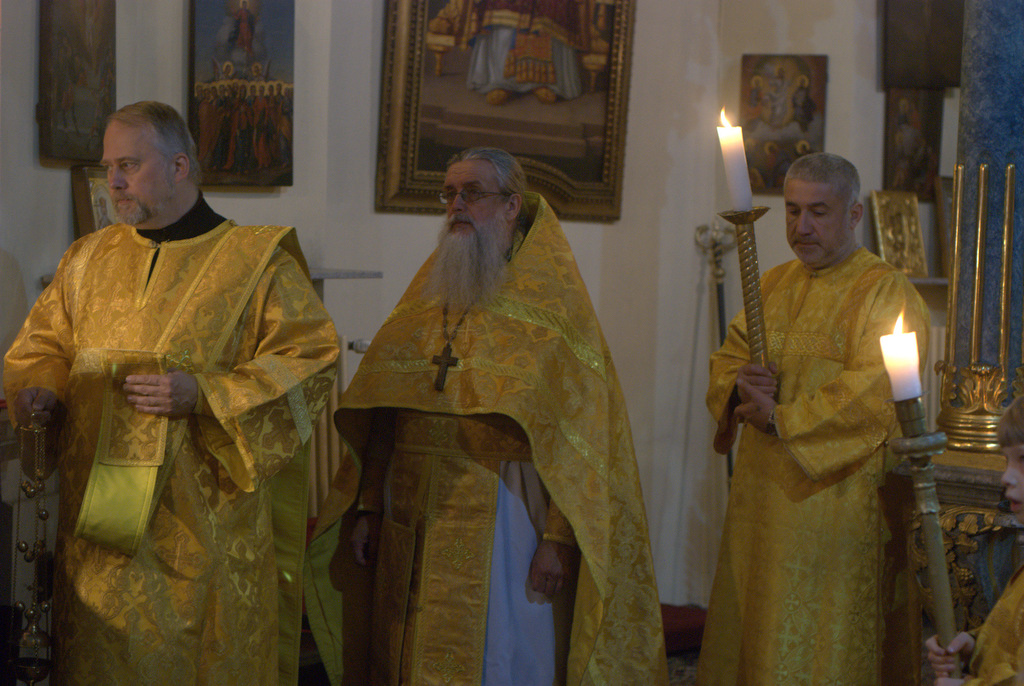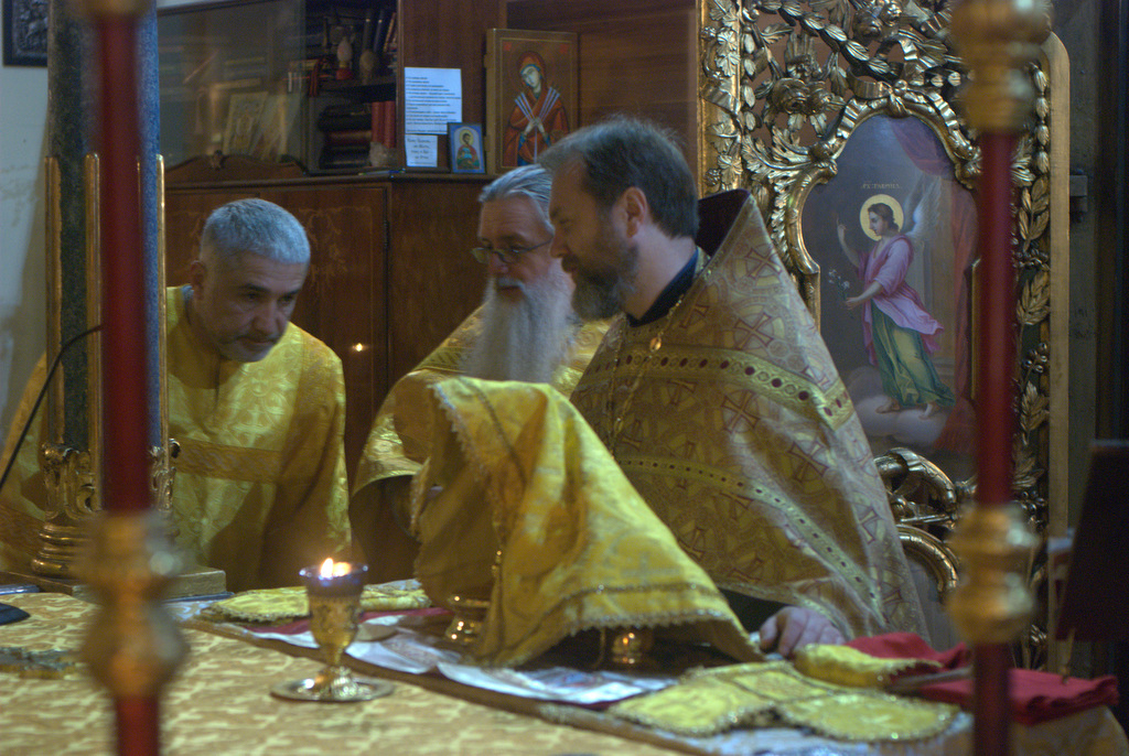 15 октября 2017 года в Неделю 19-ю по Пятидесятнице, в день памяти Сщмч. Киприана и мц. Иустины, Блж. Андрея, Христа ради юродивого, Прав. воина Феодора Ушакова, настоятель прихода во имя Святой Троицы иерей Димитрий Корнилов возглавил служение ранней Божественной литургии в Успенском соборе г. Будапешта. Ему сослужил протоиерей Александр Смирнов из Переславской епархии и диакон Владимир Чепыжов. Хор пел под управлением регента Евы Гволик.