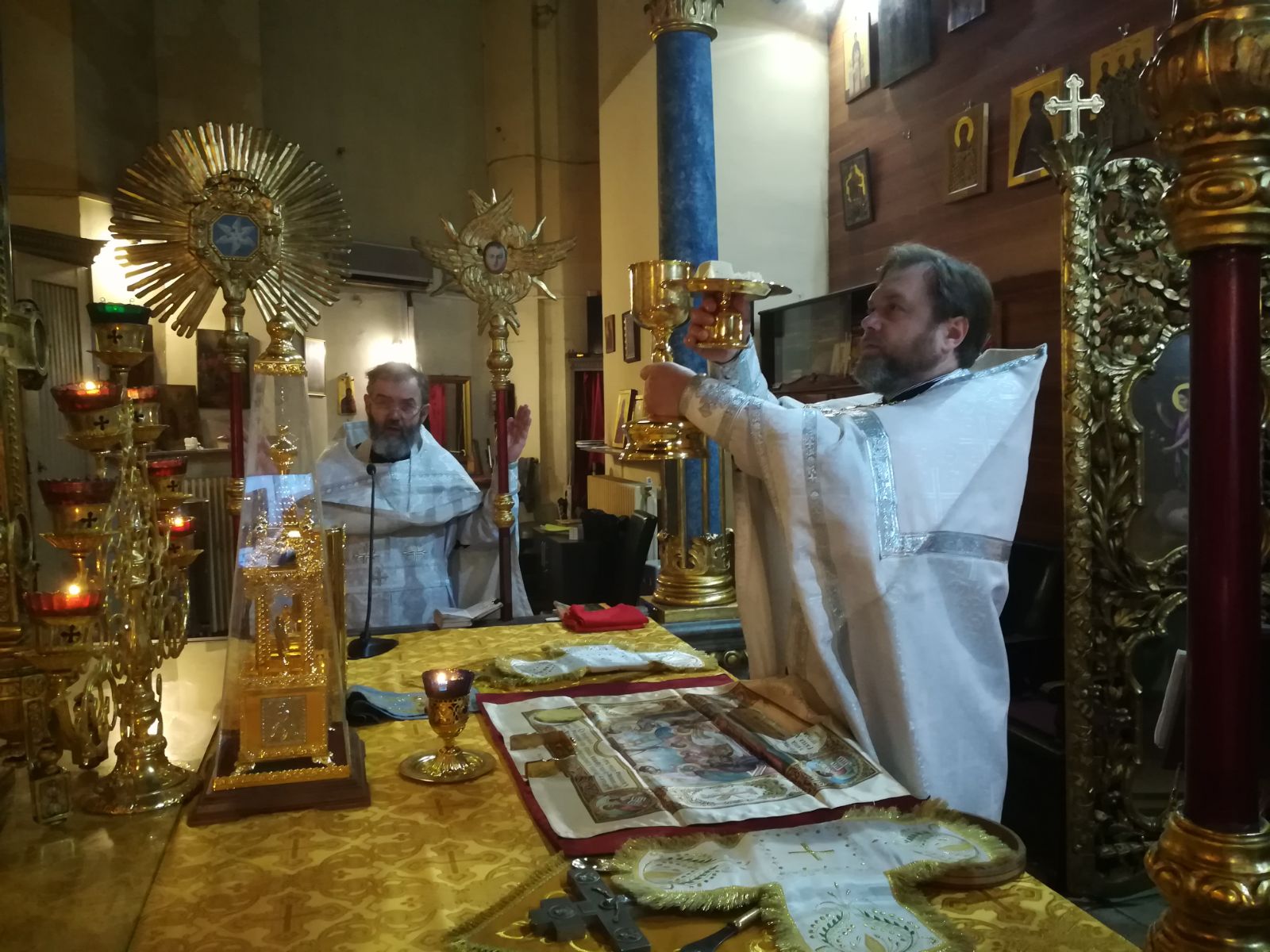 28 октября 2017 года, в Димитриевскую субботу, когда Русская Православная Церковь почитает память всех почивших христиан, настоятель Свято-Троицкого прихода иерей Димитрий Корнилов совершил Божественную литургию в Свято-Успенском кафедральном соборе г. Будапешта в сослужении клирика прихода иерея Святослава Булаха.