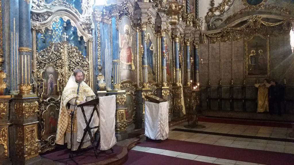 В конце службы отец Димитрий произнес проповедь на евангельское чтение в котором Церковь вспоминает притчу о богаче и нищем Лазаре.