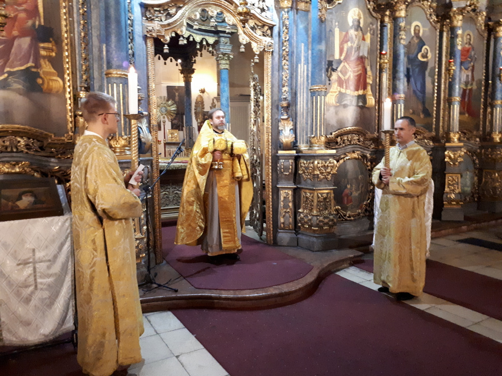 19 ноября в Неделю 24-ю по Пятидесятнице, когда Церковь празднует память Святителя Павла исповедника и патриарха Константинопольского (350), и Преподобного Варлаама Хутынского (1192), настоятель Свято-Троицкого прихода г. Будапешта иерей Димитрий Корнилов совершил раннюю Божественную литургию. В это воскресенье, Святая Церковь учит нас через Евангельское повествование об исцелении кровоточивой женщины и воскрешения дочери Иара — начальника синагоги .