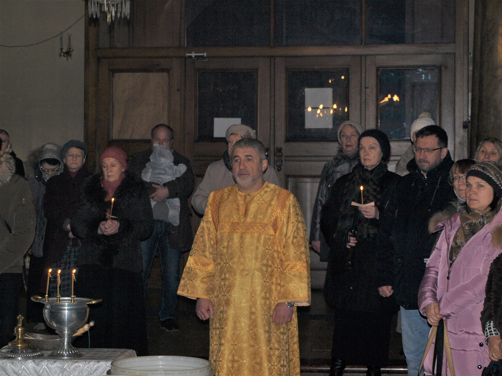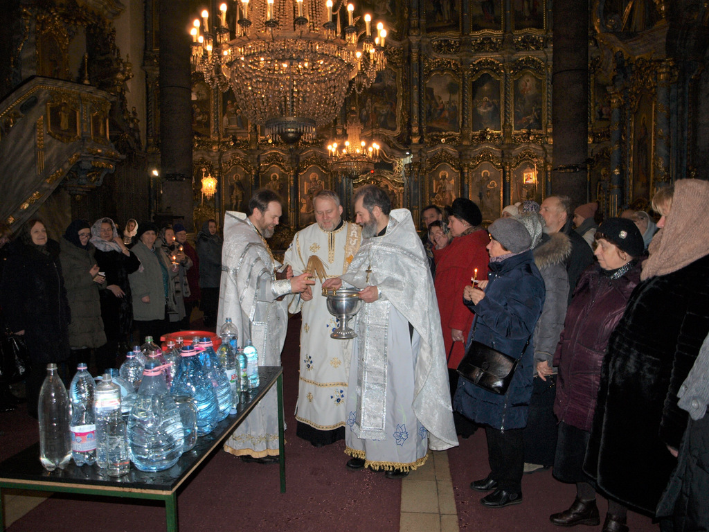 По заамвонной молитве при пении тропарей «Глас Господень на водах» священнослужители вышли в центр храма, где было совершен чин Великого освящения воды, а затем, взойдя на амвон, отец Димитрий обратился к прихожанам с проповедью. Он отметил, что Крещение Господне, совершенное Пророком и Крестителем Иоанном в водах реки Иордан, явило миру величайшее чудо откровения Святой Троицы, впервые раскрывшее людям тайну Триипостасного Бога, тайну Божественного желания спасти человека от греха и смерти.