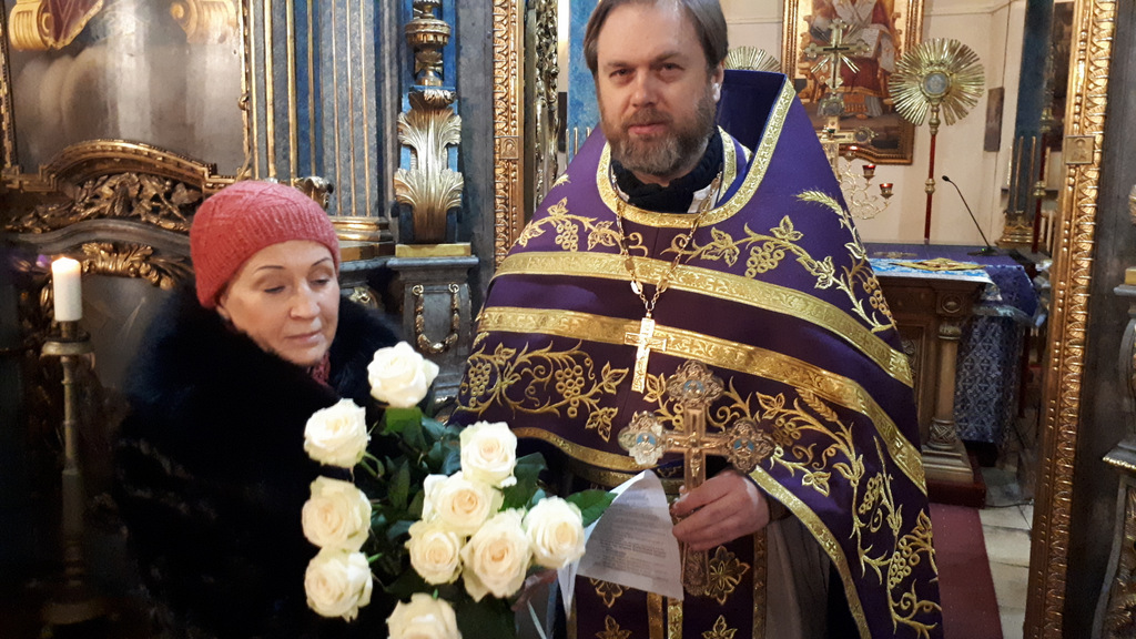 В конце службы староста прихода Татьяна Каса от лица всего прихода вручила отцу Димитрию букет роз и поздравила с днём Ангела!
