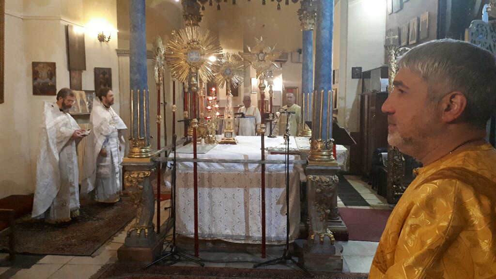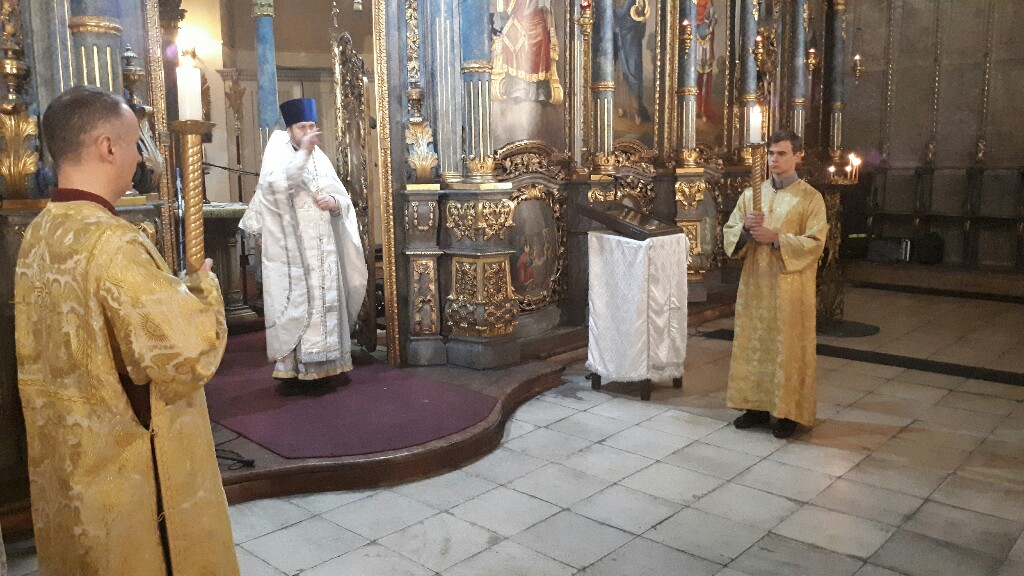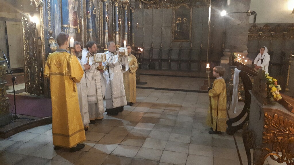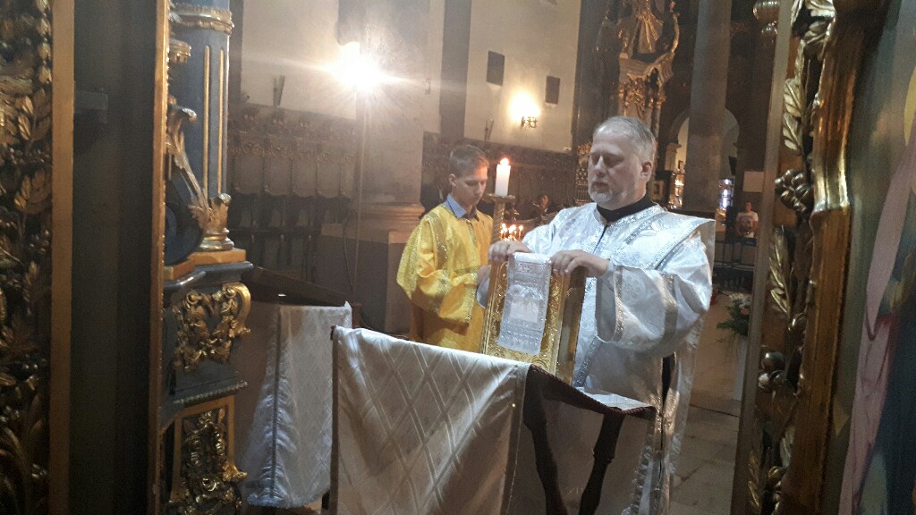В Неделю 7-ю по Пасхе, когда Церковь празднует память отцев первого Вселенского собора, в Успенском кафедральном соборе настоятель прихода во имя Святой Троицы иерей Димитрий Корнилов совершил раннюю Божественную литургию . Ему сослужили священник прихода Святослав Булах и диакон Владимир Чепыжов. Хор пел под управлением Евы Гволик.