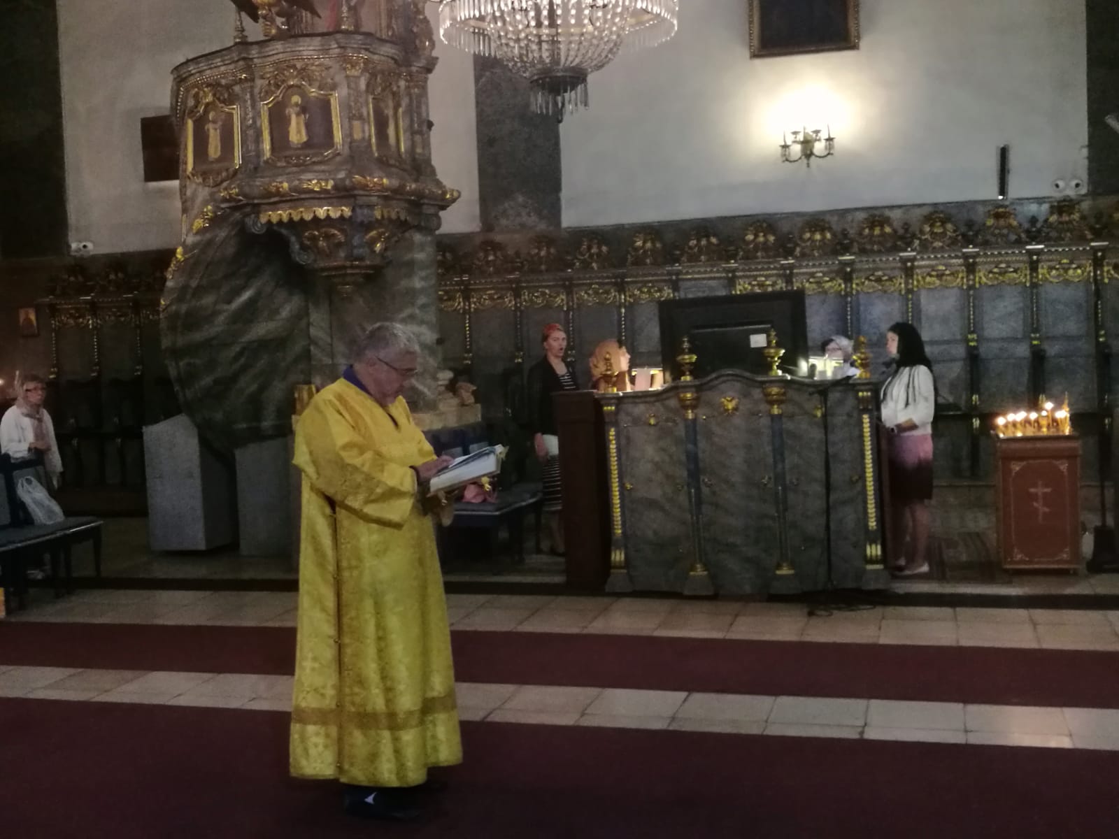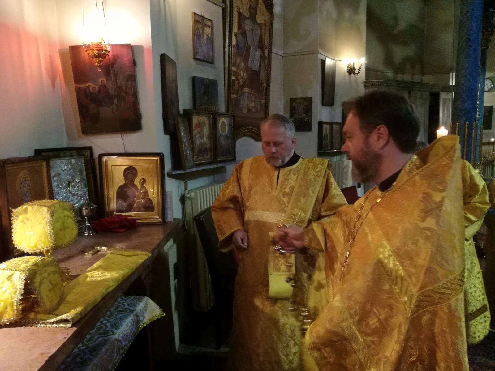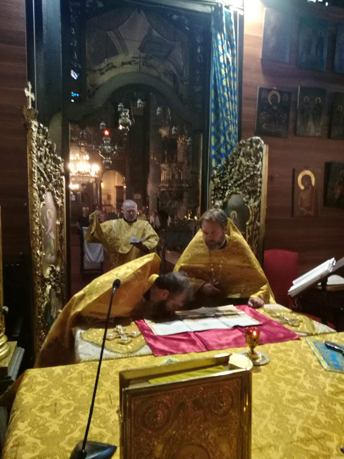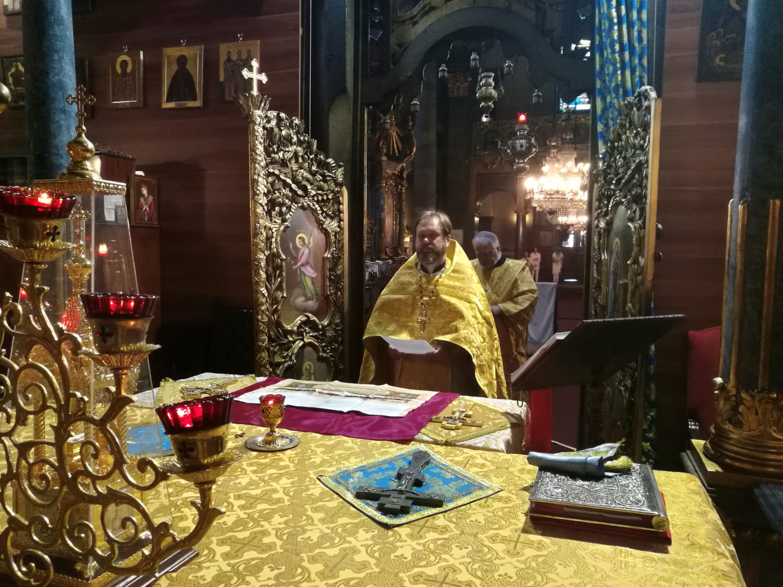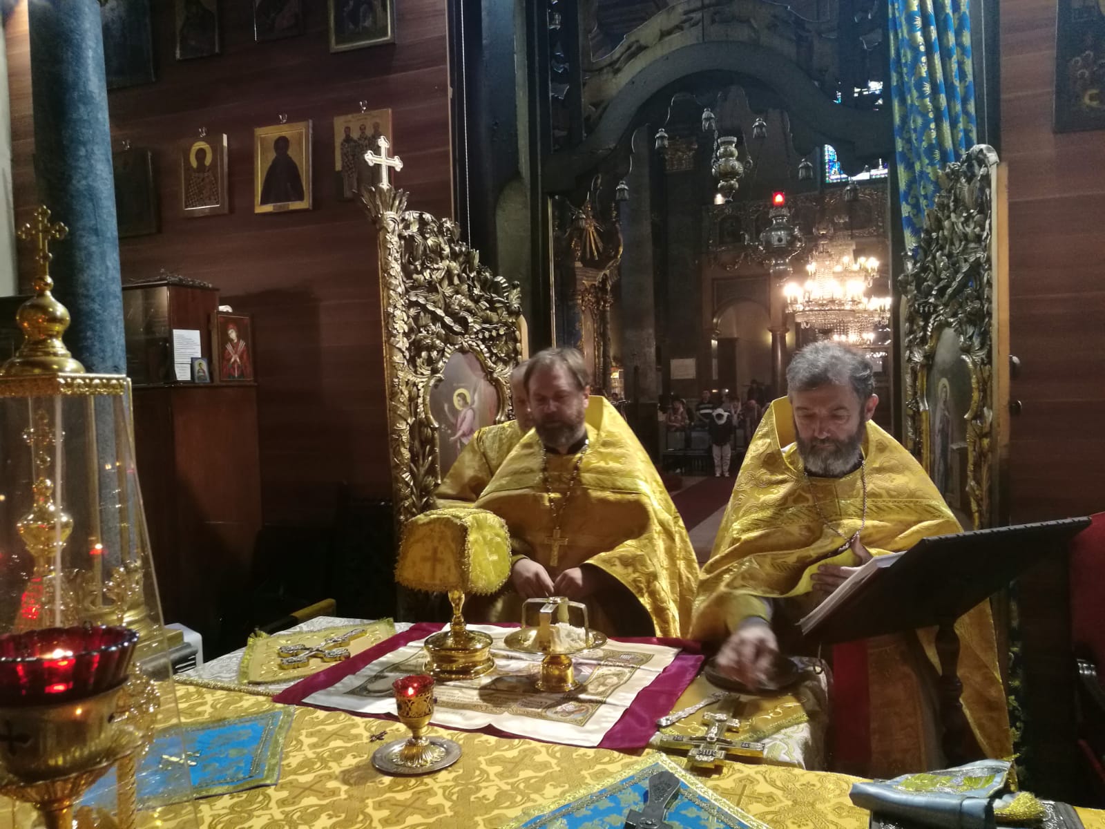 В конце службы отец Димитрий произнес проповедь на евангельское чтение.9 сентября, в Неделю 15-ю по Пятидесятнице, в Успенском соборе г. Будапешта состоялась Божественная литургия. Богослужение возглавил настоятель Свято-Троицкого прихода иерей Димитрий Корнилов. Ему сослужили священник прихода иерей Святослав Булах и дьякон Владимир Чепыжов За Литургией пел хор под управлением Евы Гволик. По прочтении Евангелия проповедь с толкованием воскресного зачала произнес настоятель прихода отец Димитрий. Во время Литургии на проекционном экране выводилось последование богослужения в переводе на современный русский язык. Накануне вечером было совершено всенощное бдение.