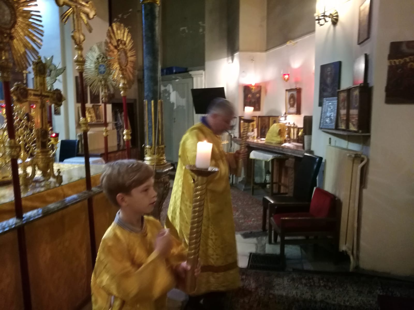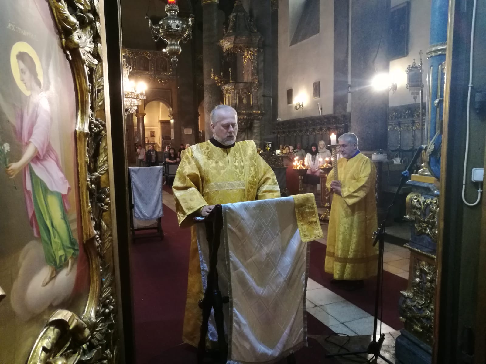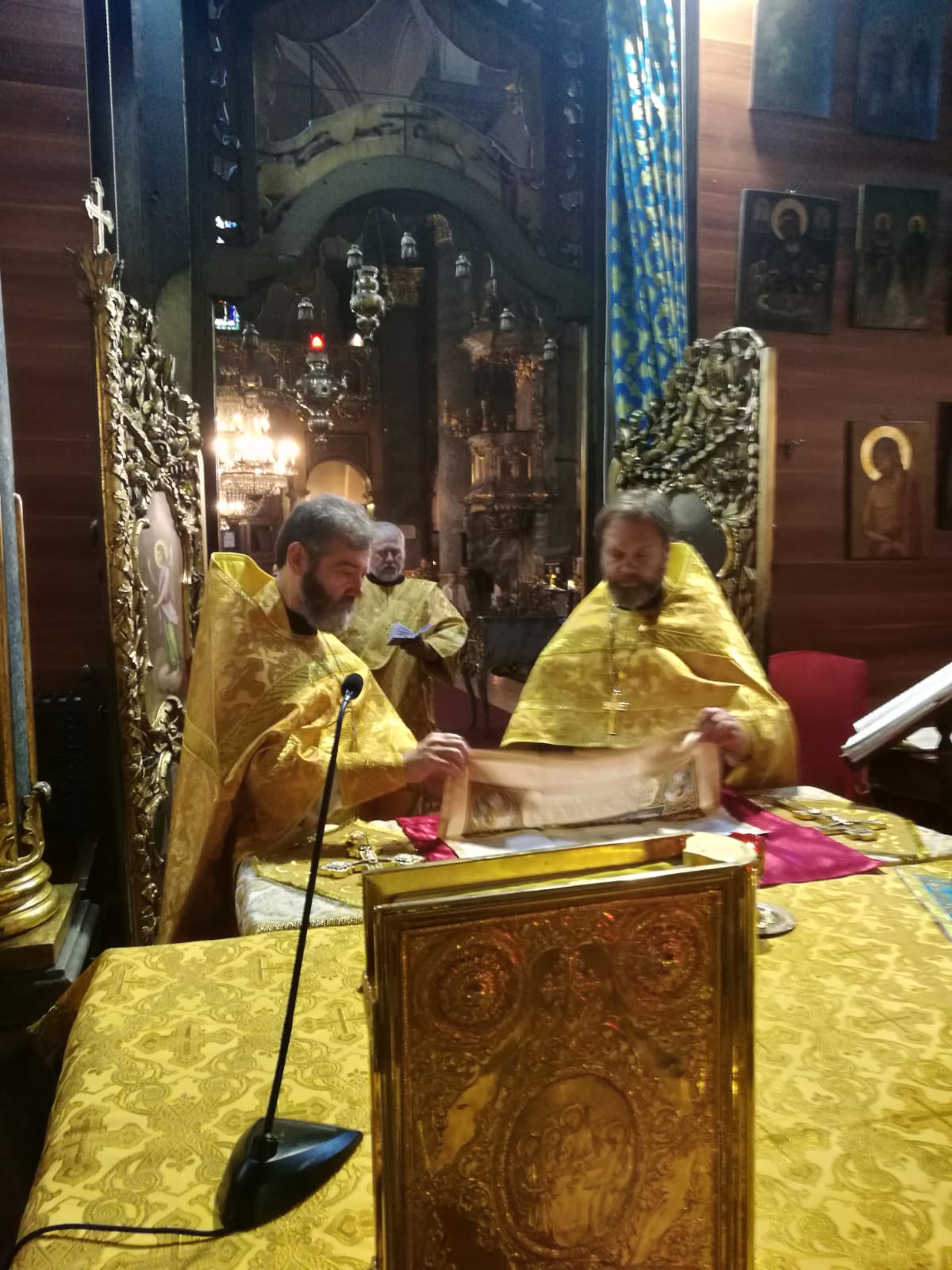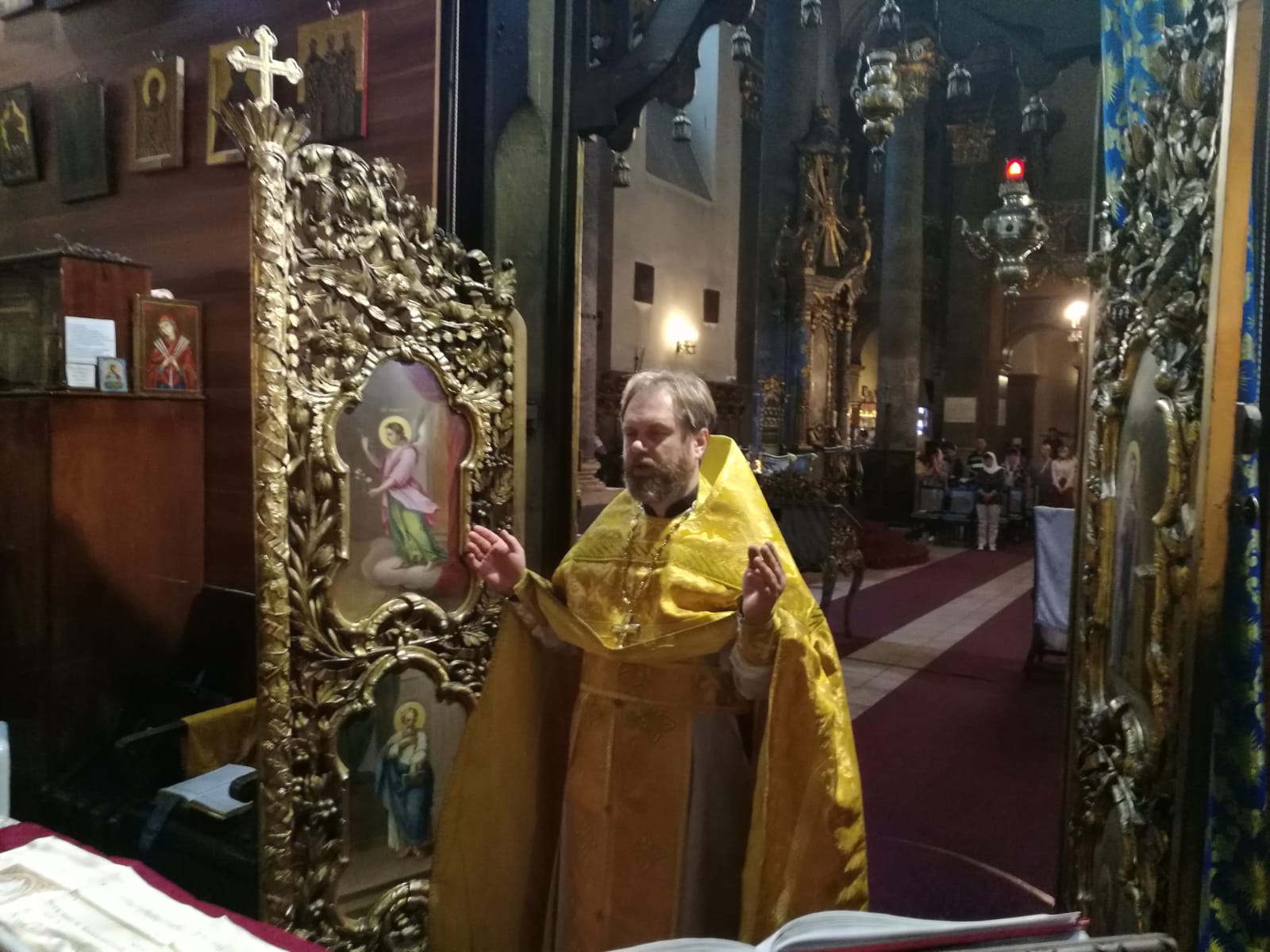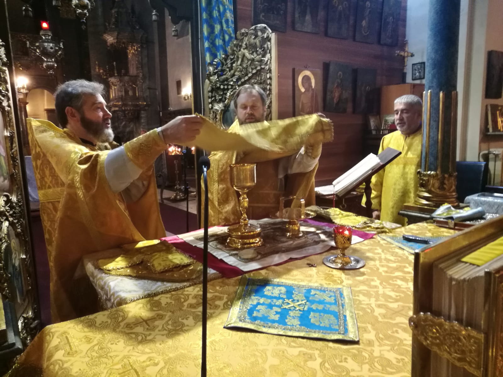 В конце службы отец Димитрий произнес проповедь на евангельское чтение.9 сентября, в Неделю 15-ю по Пятидесятнице, в Успенском соборе г. Будапешта состоялась Божественная литургия. Богослужение возглавил настоятель Свято-Троицкого прихода иерей Димитрий Корнилов. Ему сослужили священник прихода иерей Святослав Булах и дьякон Владимир Чепыжов За Литургией пел хор под управлением Евы Гволик. По прочтении Евангелия проповедь с толкованием воскресного зачала произнес настоятель прихода отец Димитрий. Во время Литургии на проекционном экране выводилось последование богослужения в переводе на современный русский язык. Накануне вечером было совершено всенощное бдение.