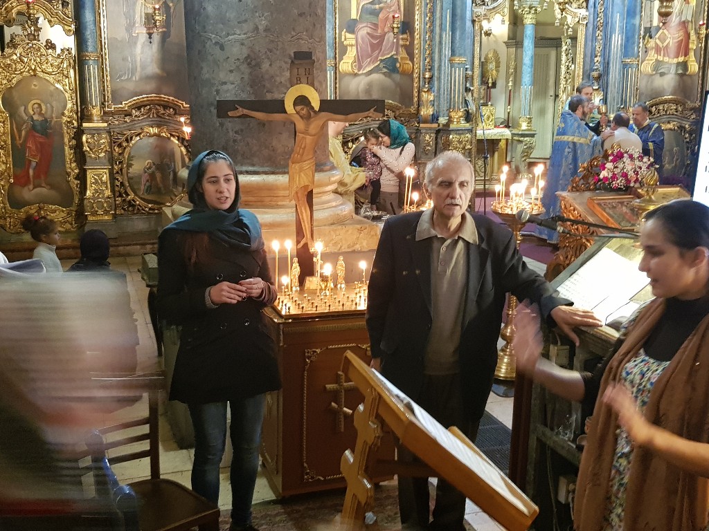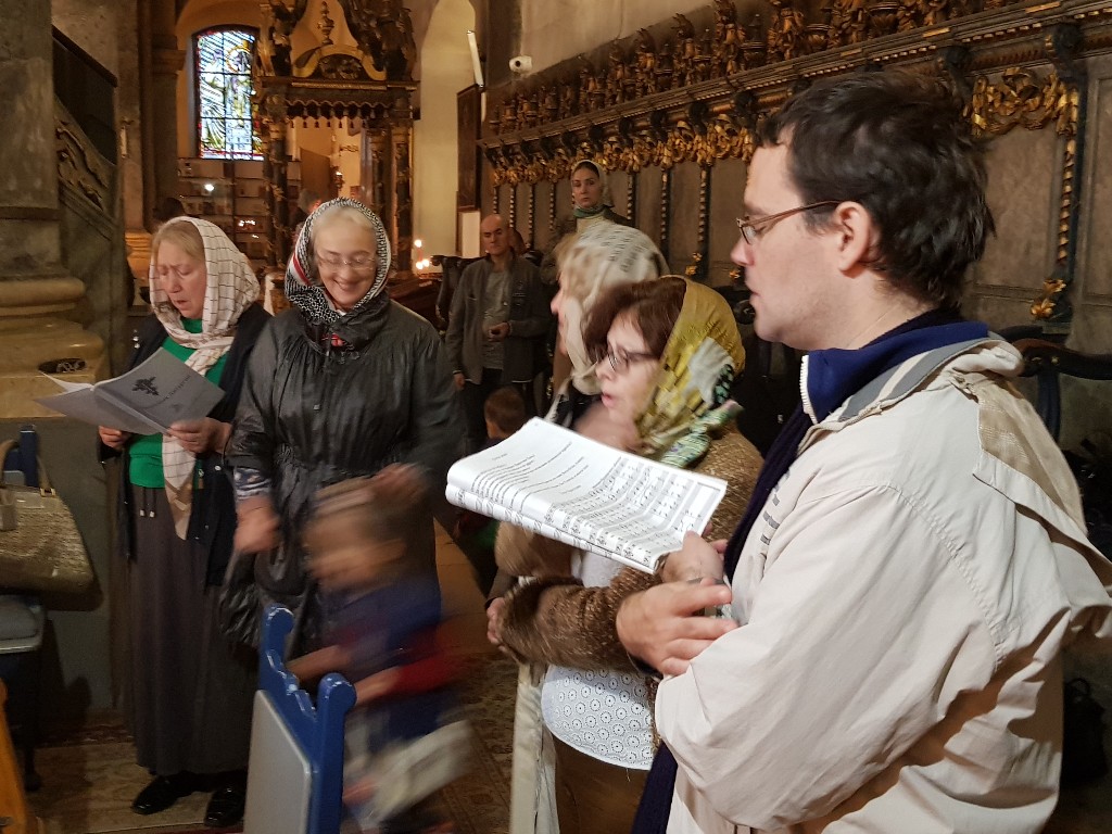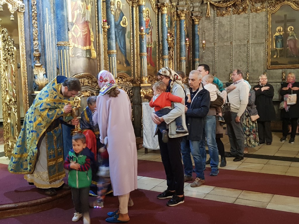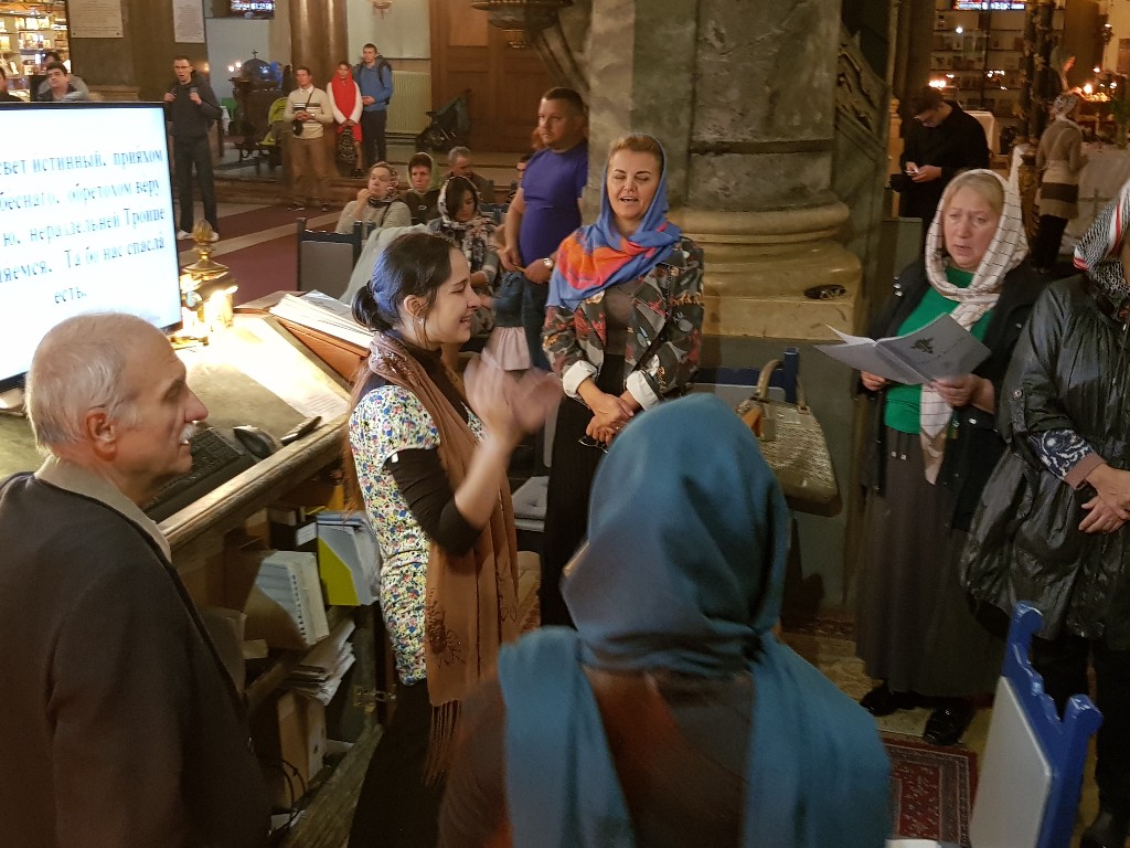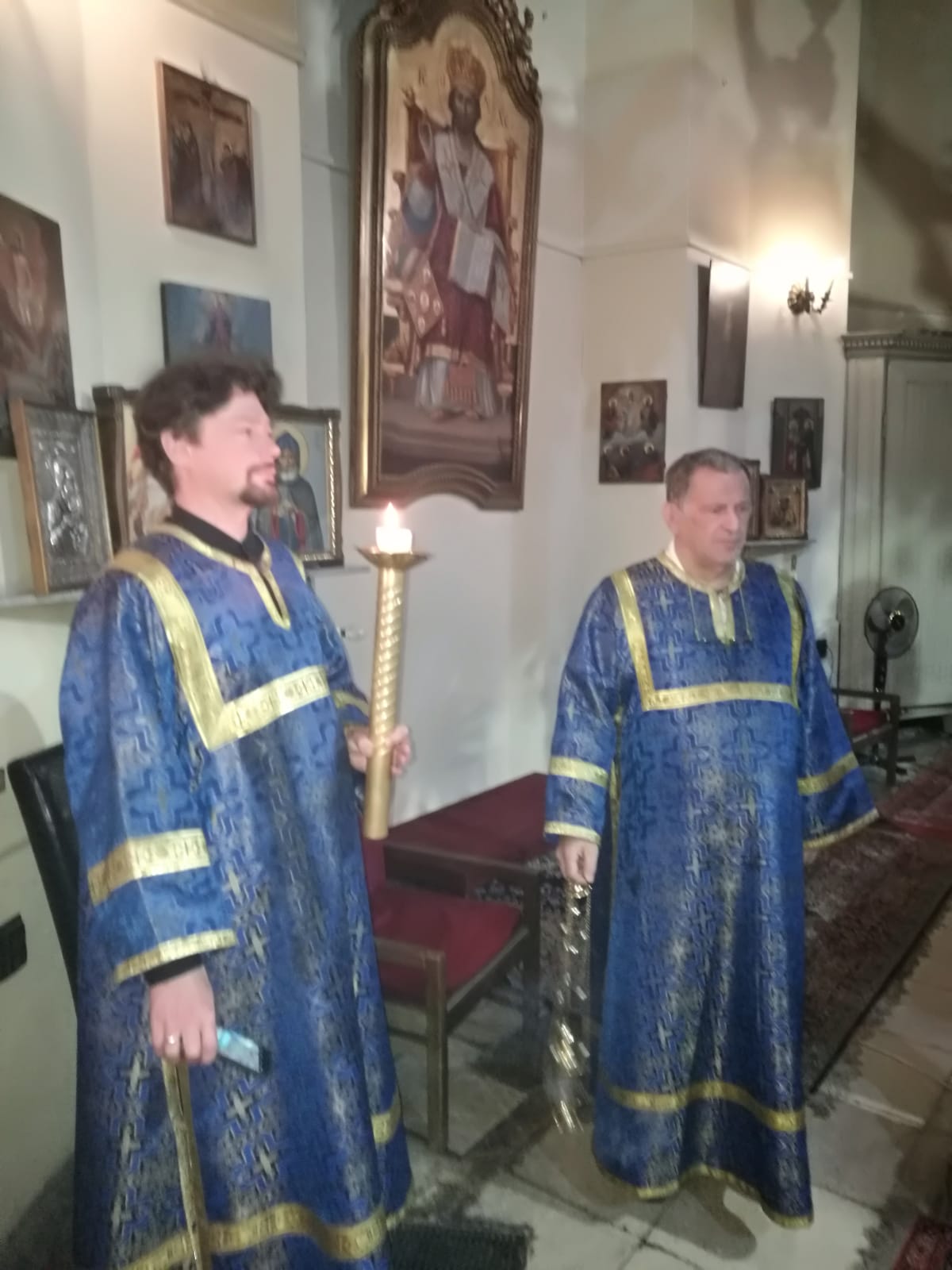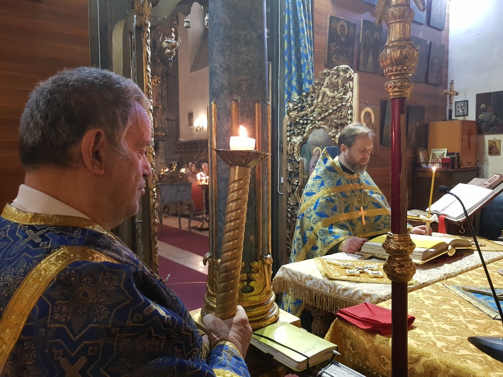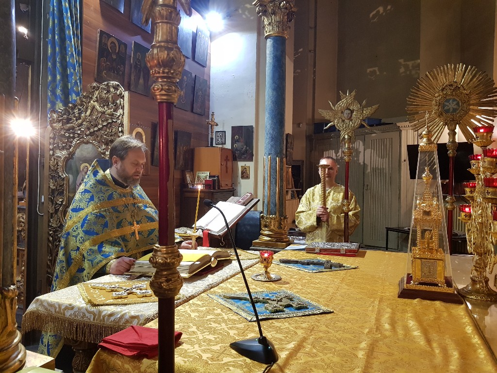 Ему сослужил помощник правящего архиерея иерей Святослав Булах. В конце службы отец Димитрий обратился с проповедью на евангельское чтение и рассказал о празднике Покрова Богородицы.