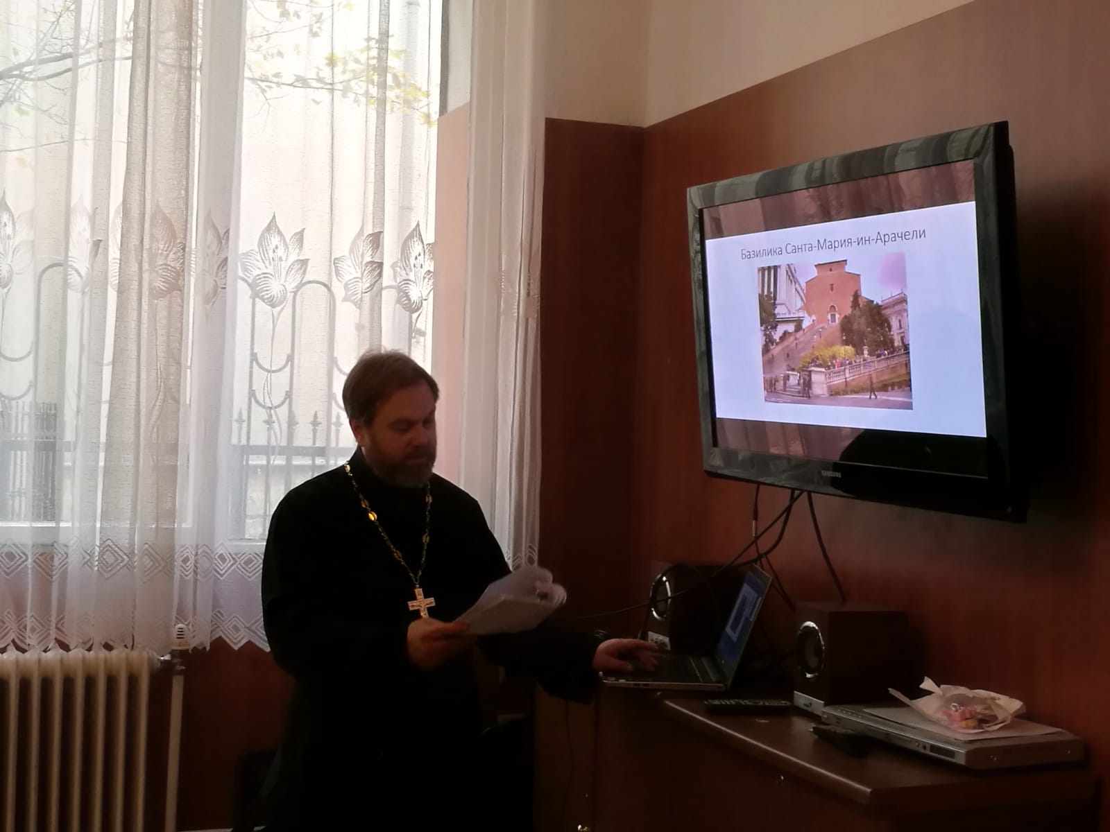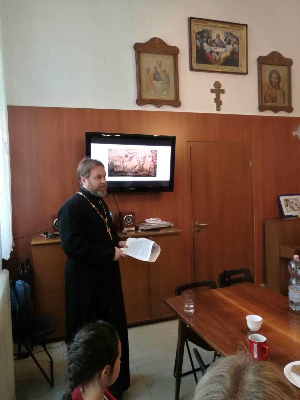 После службы отец Димитрий с многочисленными верующими провел в трапезной беседу, в ходе которой рассказал о прошедшей паломнической поездки к древне-христианским святыням г. Рима, которая состоялась 29 октября.