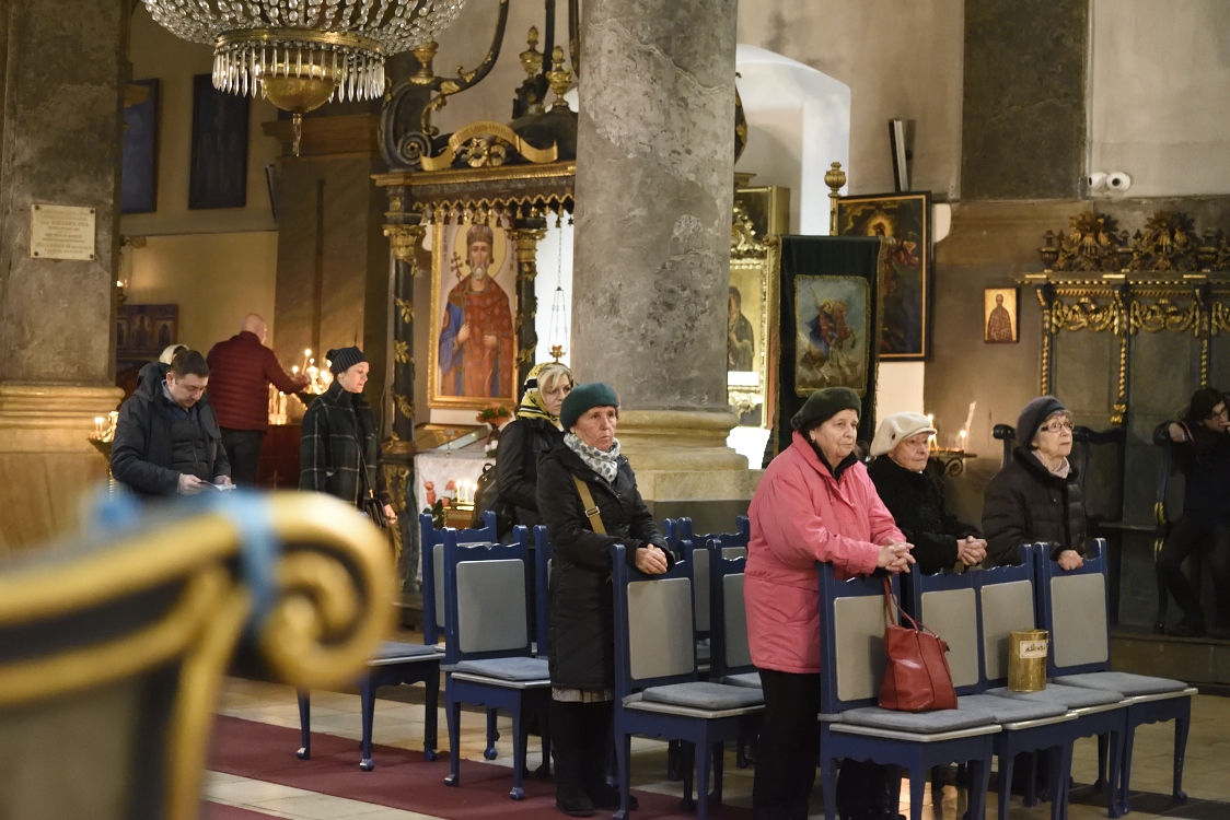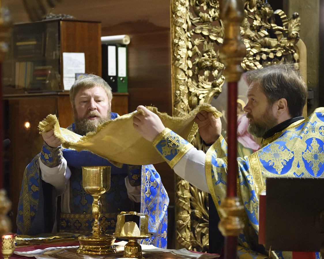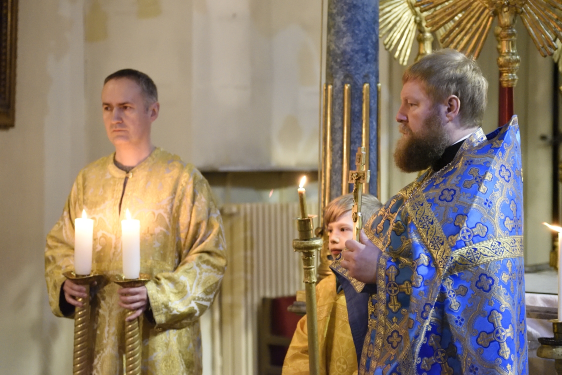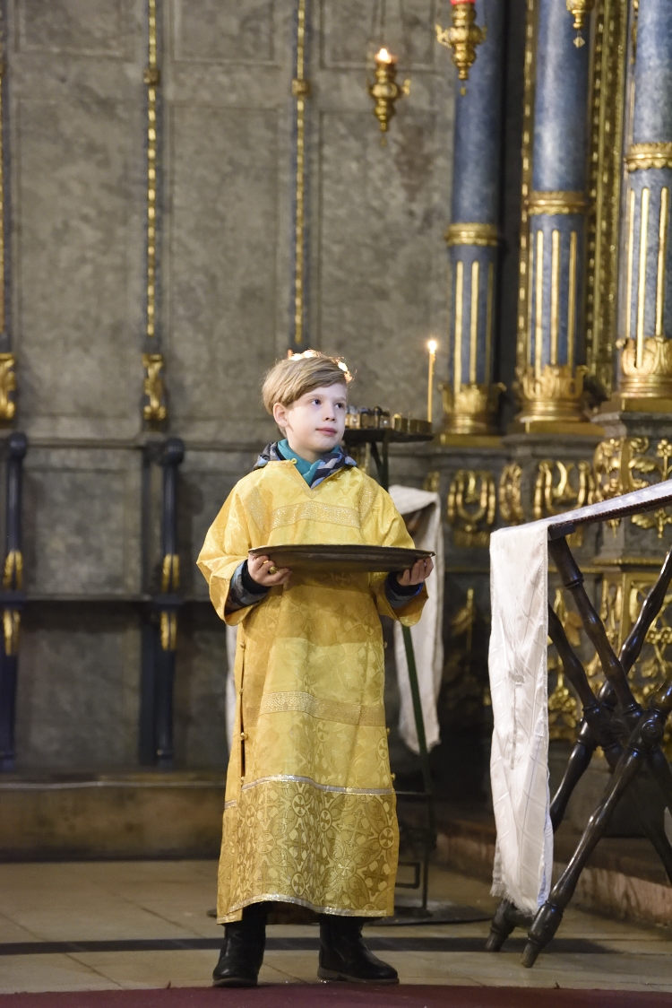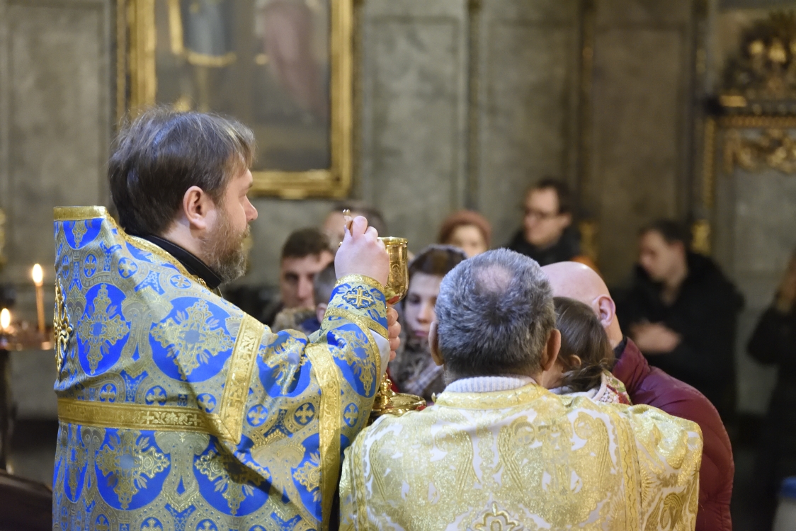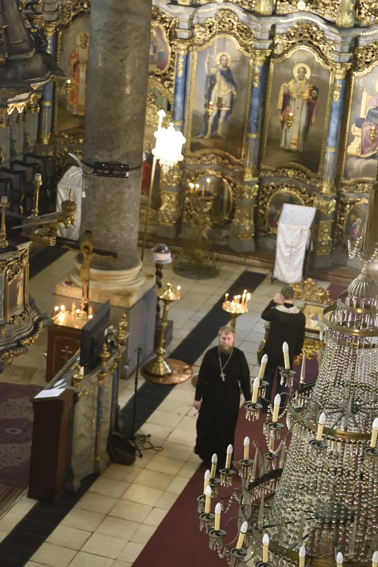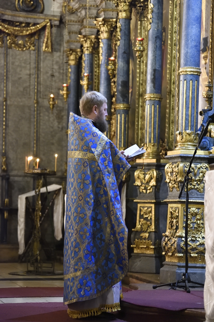 В Неделю о мытаре и фарисее в Успенском кафедральном соборе раннюю Божественную литургию возглавил настоятель прихода во имя Святой Троицы иерей Димитрий Корнилов, ему сослужил иерей Алексий Воронцов — священник храма Рождества Иоанна Предтечи на Пресне в Москве. Хором управляла регент Ева Гволик.