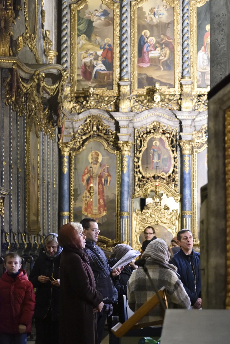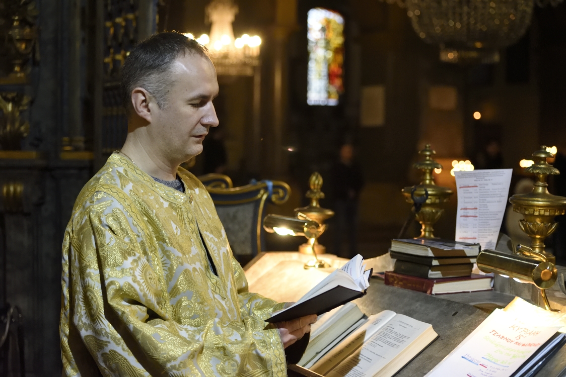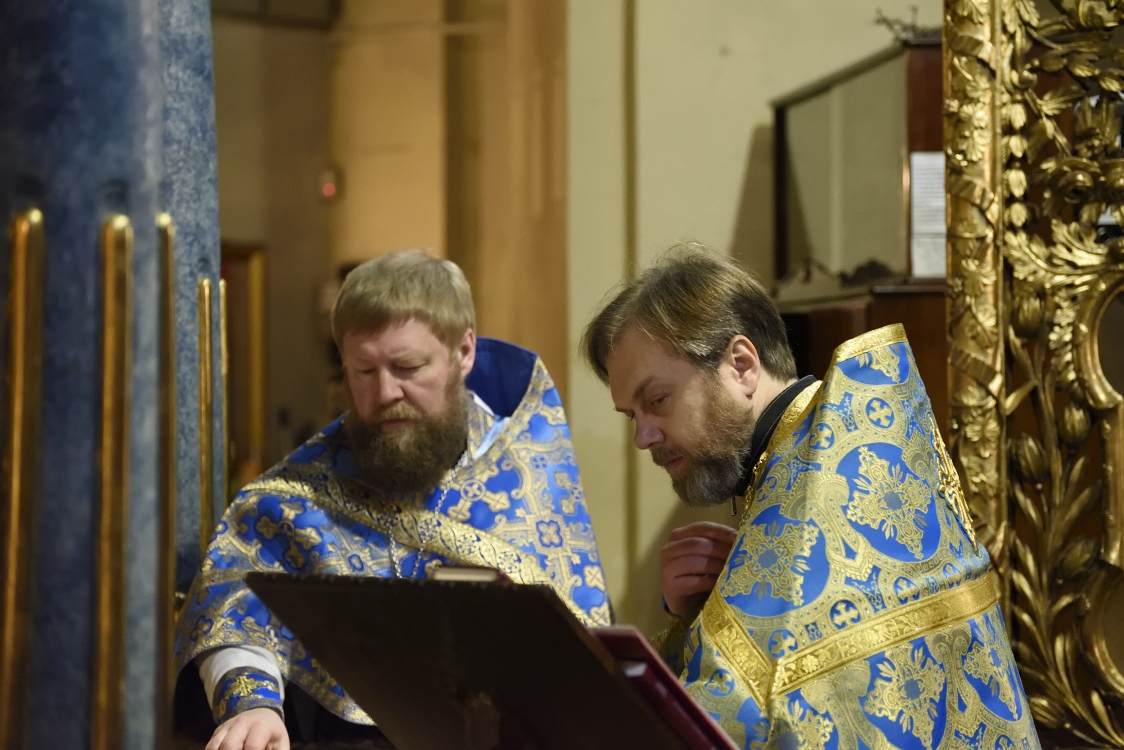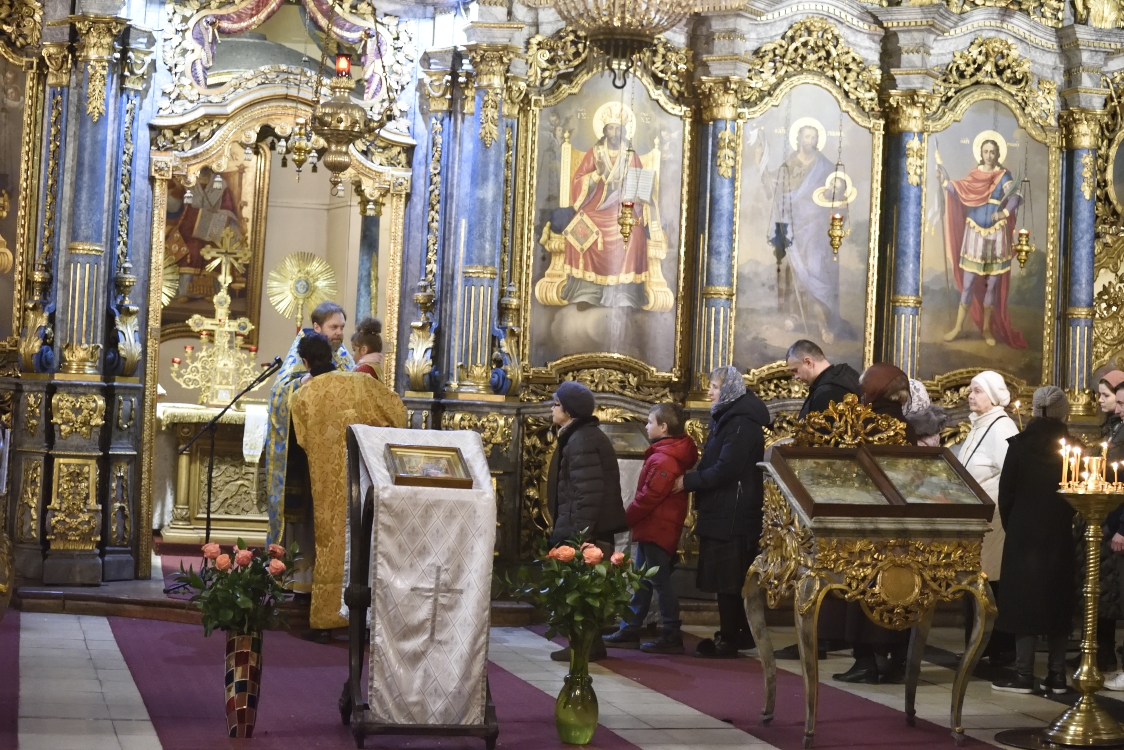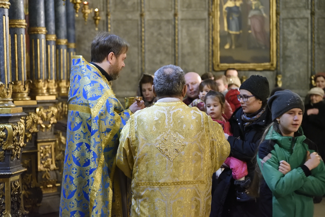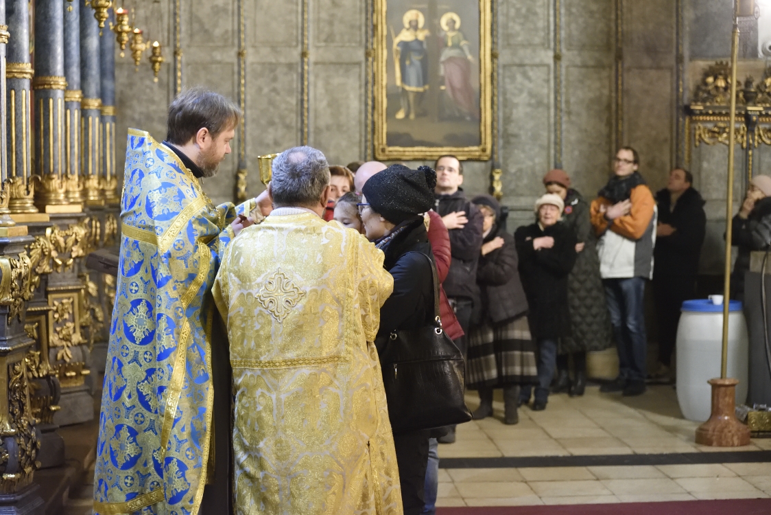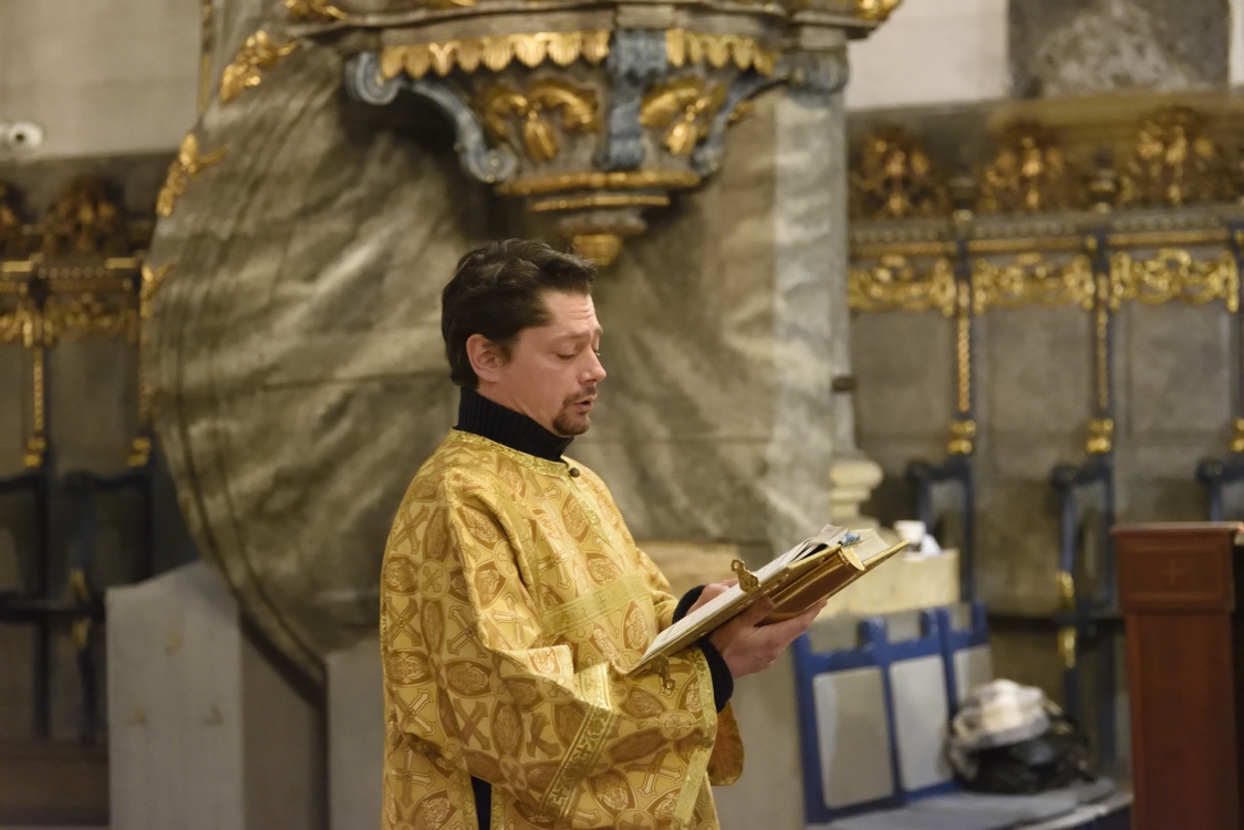 В Неделю о мытаре и фарисее в Успенском кафедральном соборе раннюю Божественную литургию возглавил настоятель прихода во имя Святой Троицы иерей Димитрий Корнилов, ему сослужил иерей Алексий Воронцов — священник храма Рождества Иоанна Предтечи на Пресне в Москве. Хором управляла регент Ева Гволик.