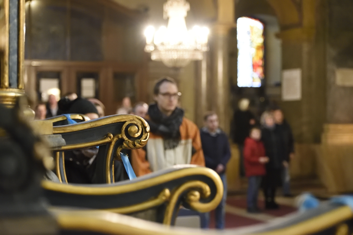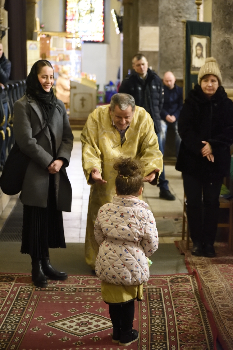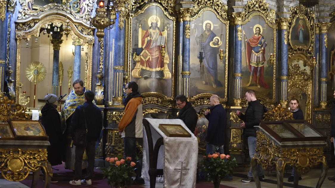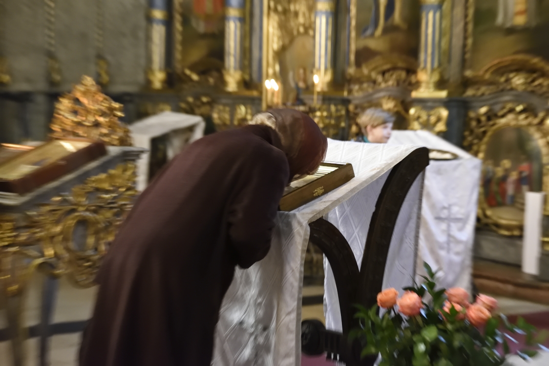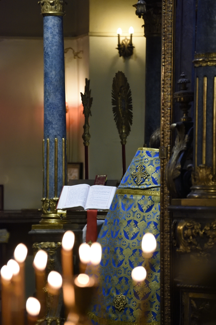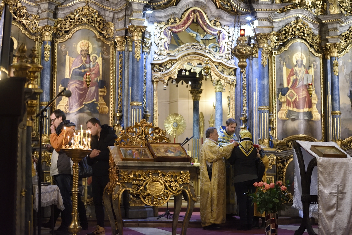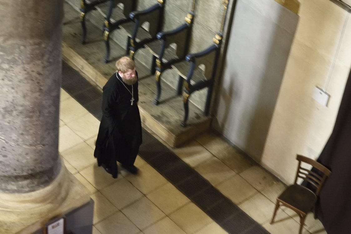 В Неделю о мытаре и фарисее в Успенском кафедральном соборе раннюю Божественную литургию возглавил настоятель прихода во имя Святой Троицы иерей Димитрий Корнилов, ему сослужил иерей Алексий Воронцов — священник храма Рождества Иоанна Предтечи на Пресне в Москве. Хором управляла регент Ева Гволик.