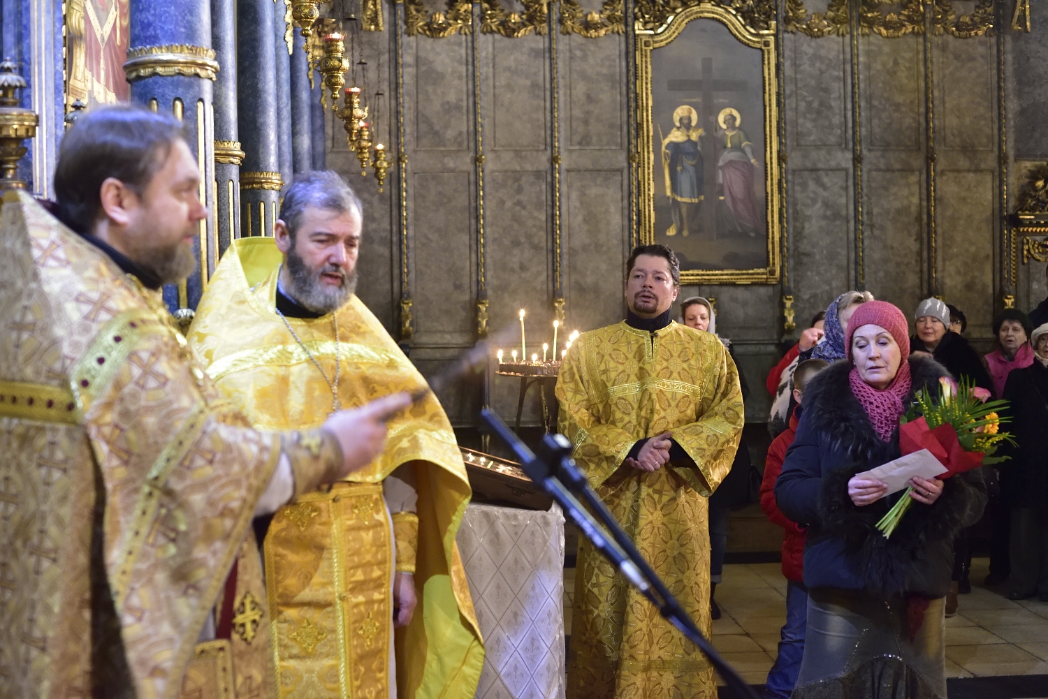 В конце староста прихода Татьяна Каса преподнесла батюшке букет цветов.
