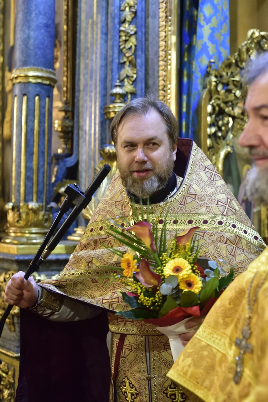Так же в этот праздничный день отец Димитрий празднует свои именины. Прихожане поздравили своего настоятеля и пожелали ему крепкого здравия телесного, долголетия, помощи Господней в несении пастырского служения, оставаться таким же добрым и отзывчивым человеком и ревнивым служителем Церкви! И чтобы Покров Богородицы всегда осенял семью батюшки, и весь Свято-Троицкий приход под его настоятельством. От клира с поздравительным словом к отцу Димитрию обратился иерей Святослав.