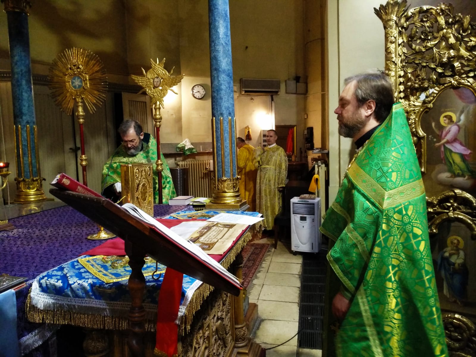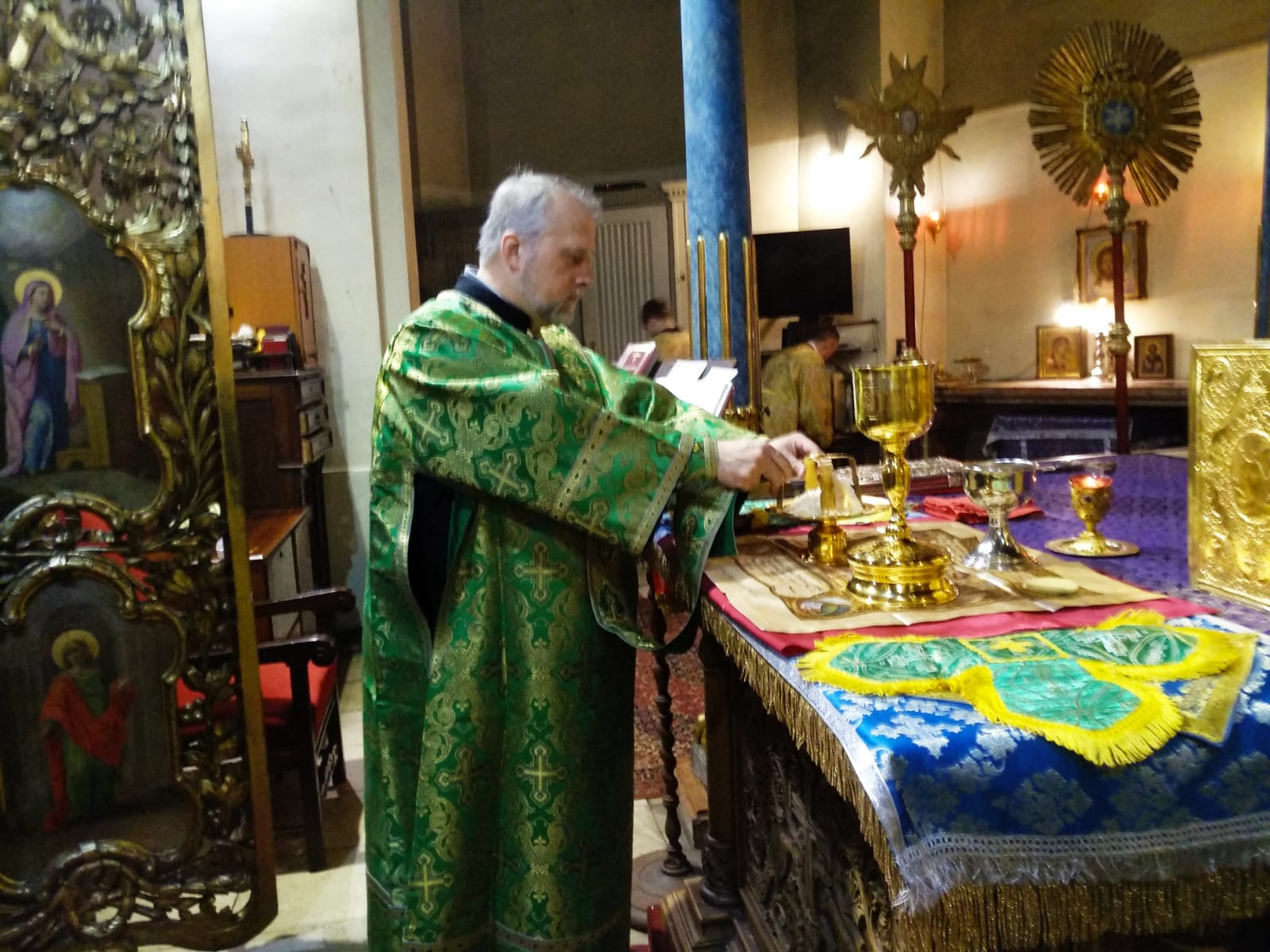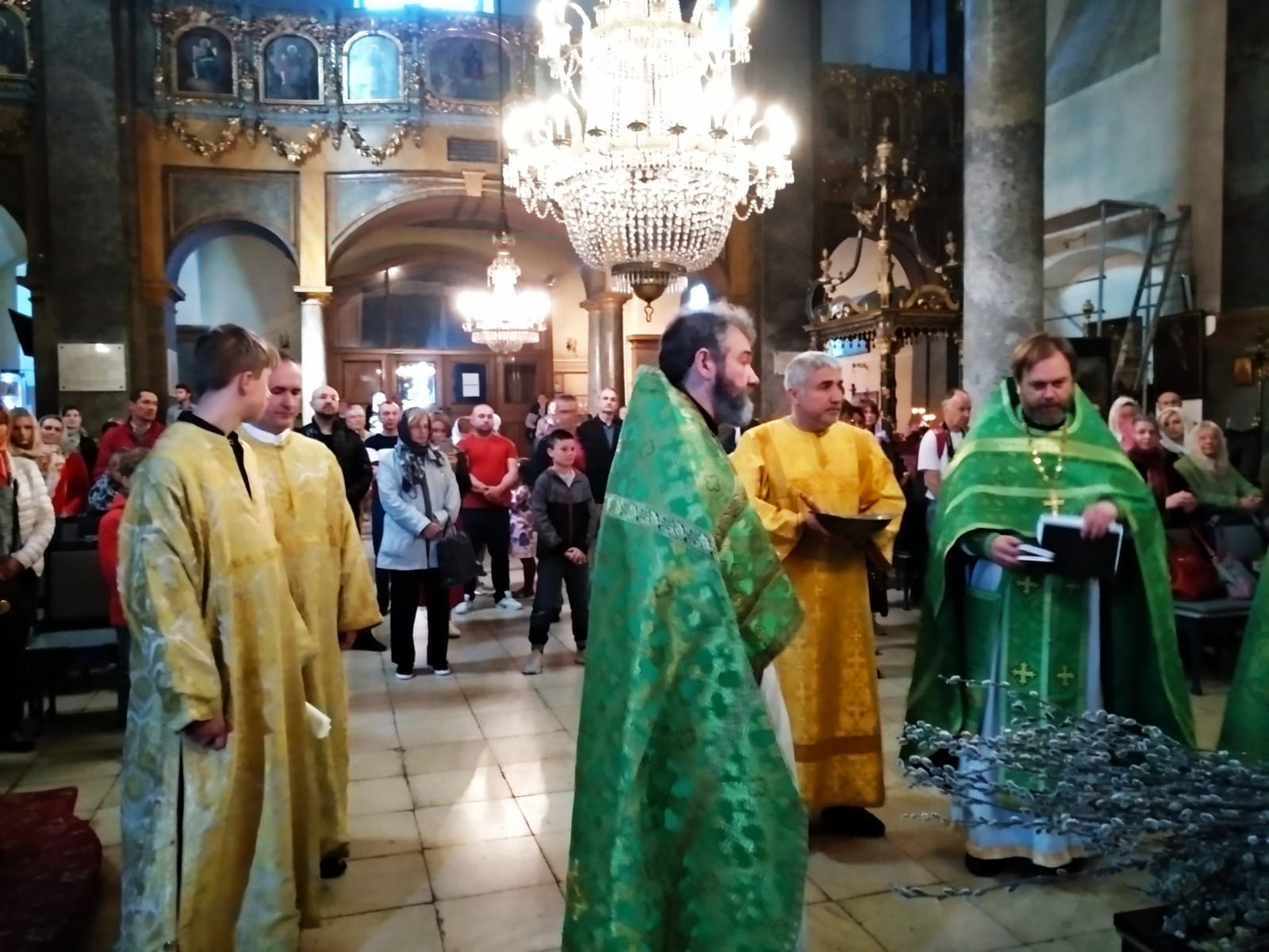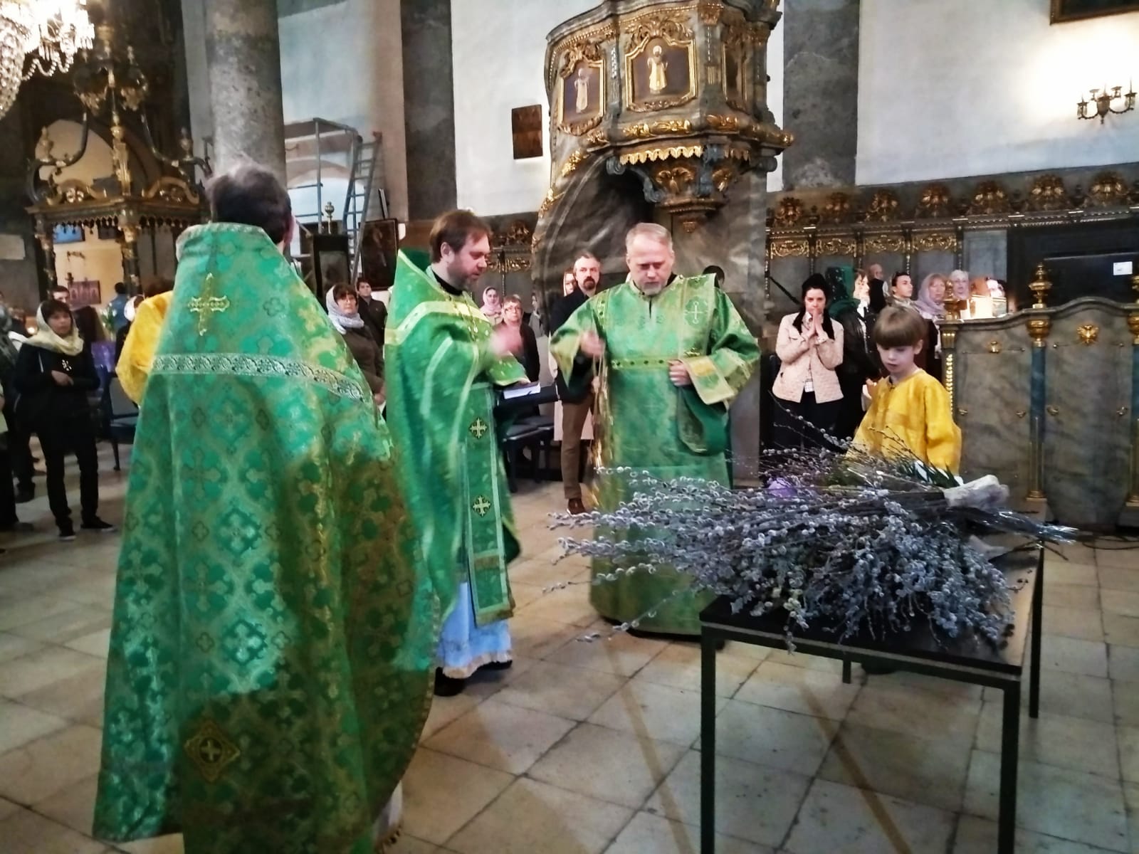 21 апреля, в Неделю 6-ю Великого поста, Вербное воскресенье, в праздник Входа Господня в Иерусалим, настоятель прихода во имя Святой Троицы г. Будапешта возглавил Божественную литургию святителя Иоанна Златоуста в Успенском кафедральном соборе города Будапешта. Ему сослужили священник прихода Святослав Булах и диакон Владимир Чепыжов. За литургией молитвенно пел хор под управлением Евы Гволик.