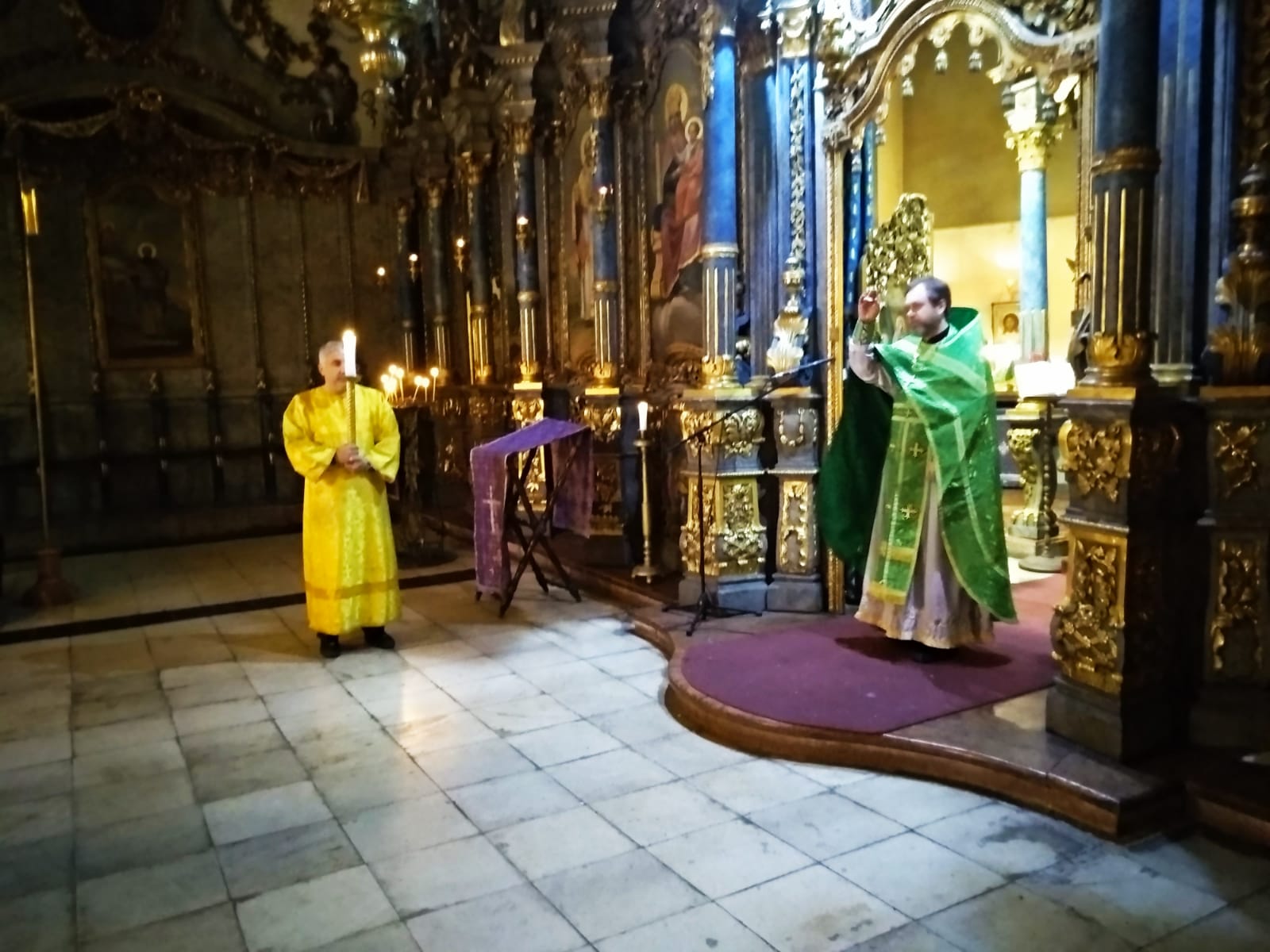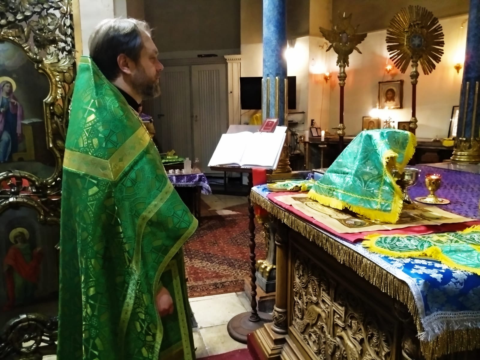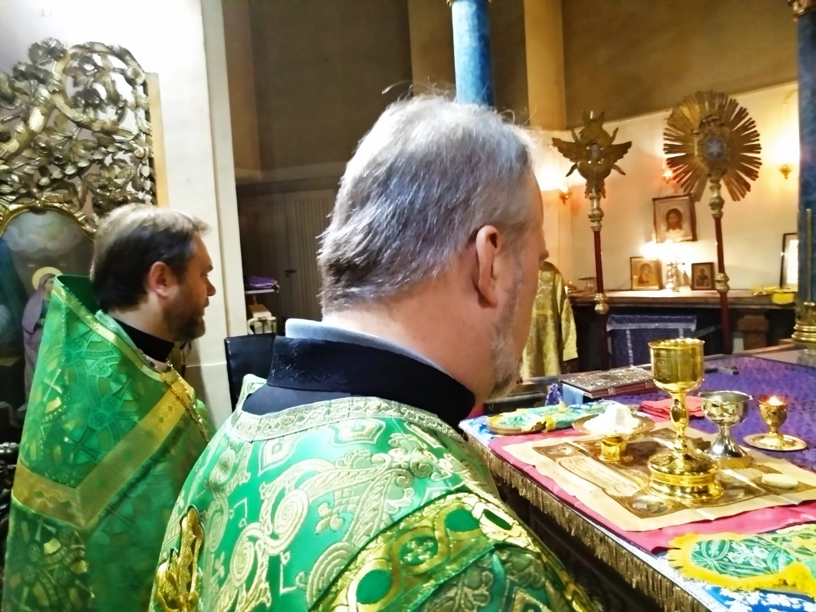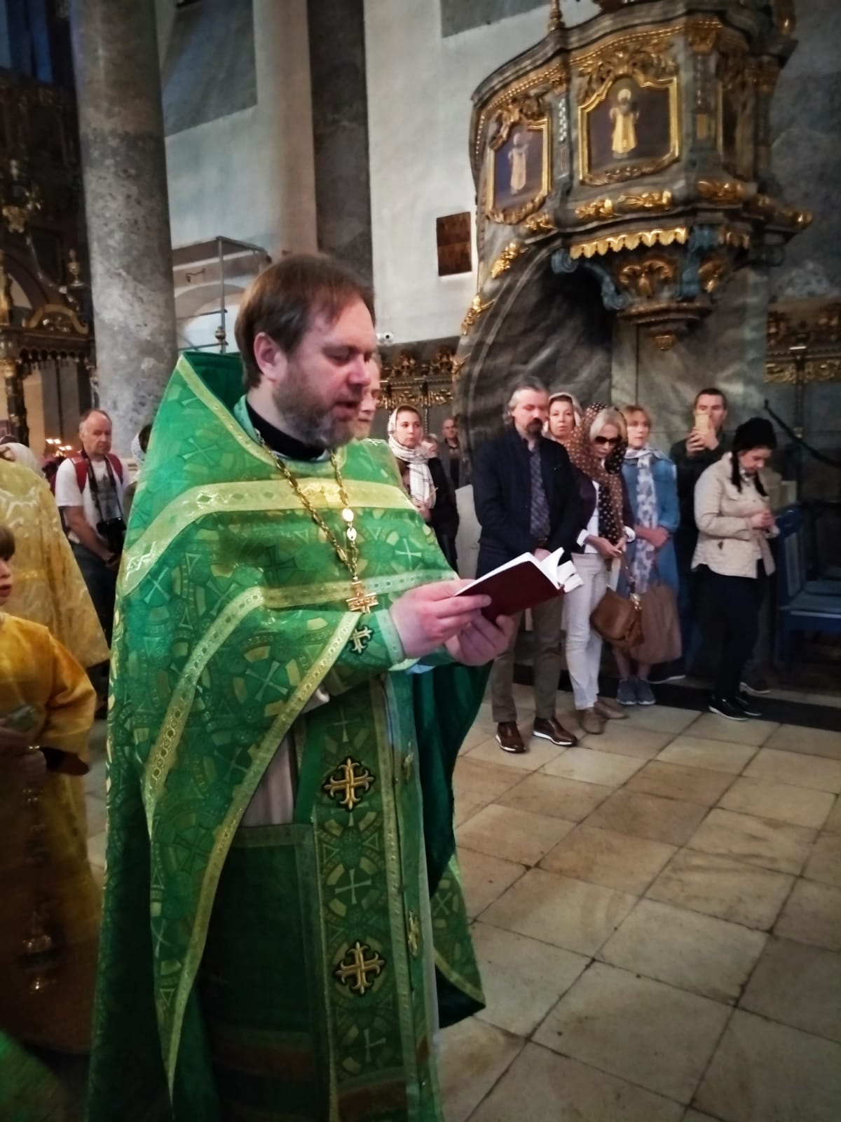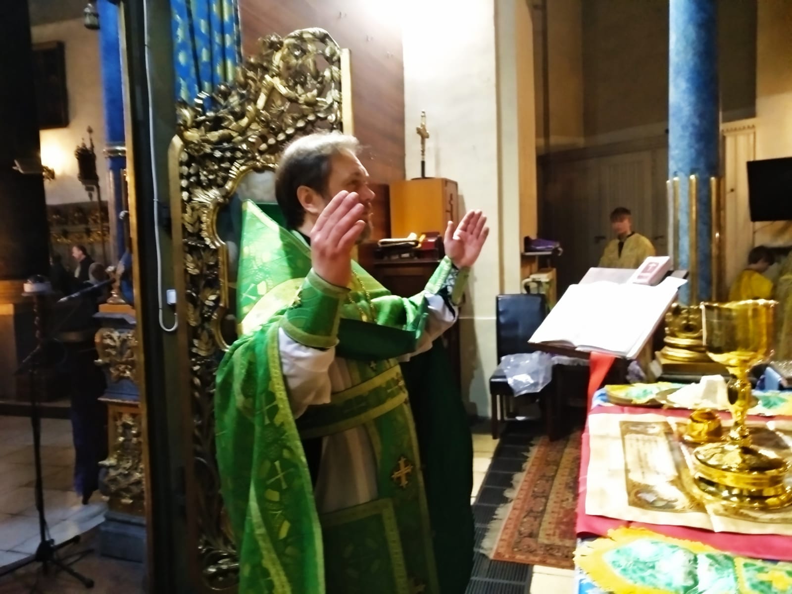21 апреля, в Неделю 6-ю Великого поста, Вербное воскресенье, в праздник Входа Господня в Иерусалим, настоятель прихода во имя Святой Троицы г. Будапешта возглавил Божественную литургию святителя Иоанна Златоуста в Успенском кафедральном соборе города Будапешта. Ему сослужили священник прихода Святослав Булах и диакон Владимир Чепыжов. За литургией молитвенно пел хор под управлением Евы Гволик.