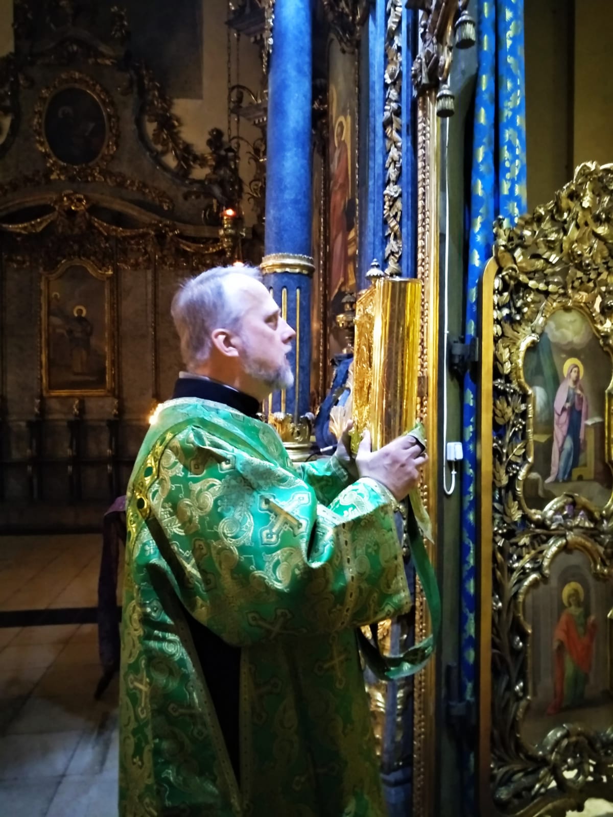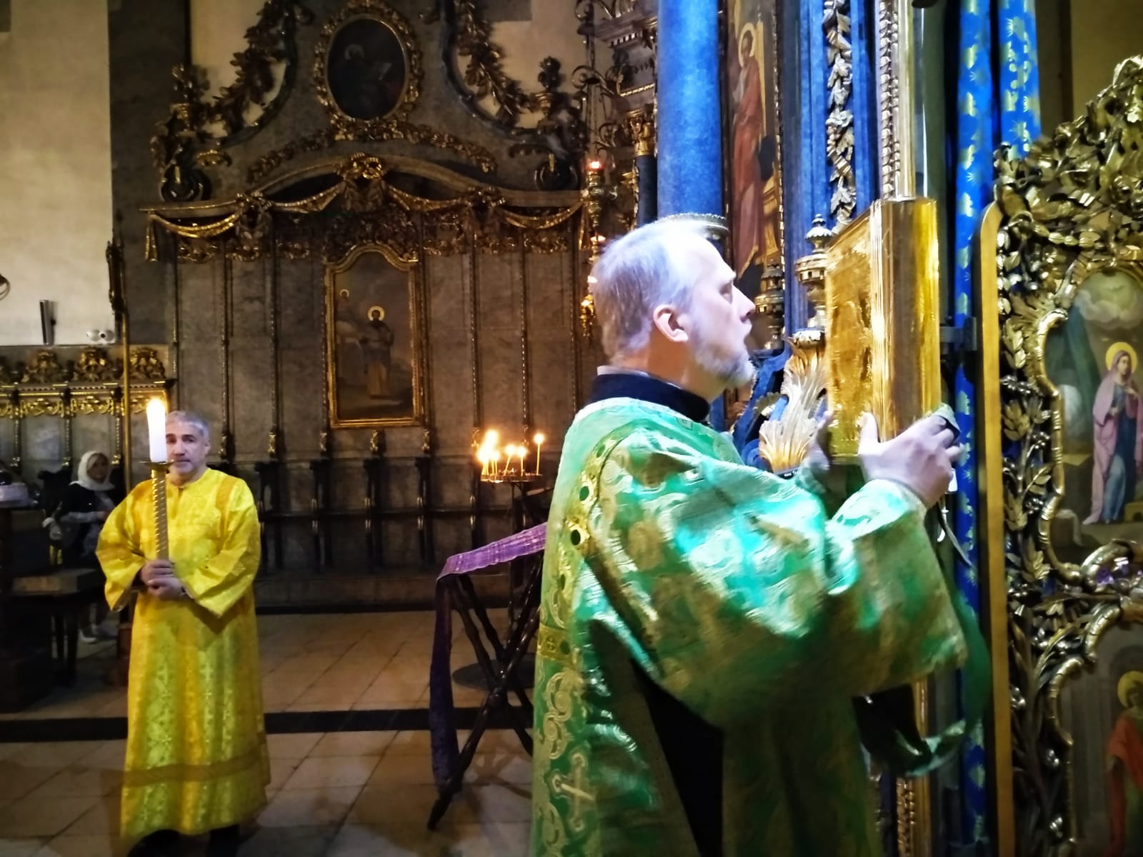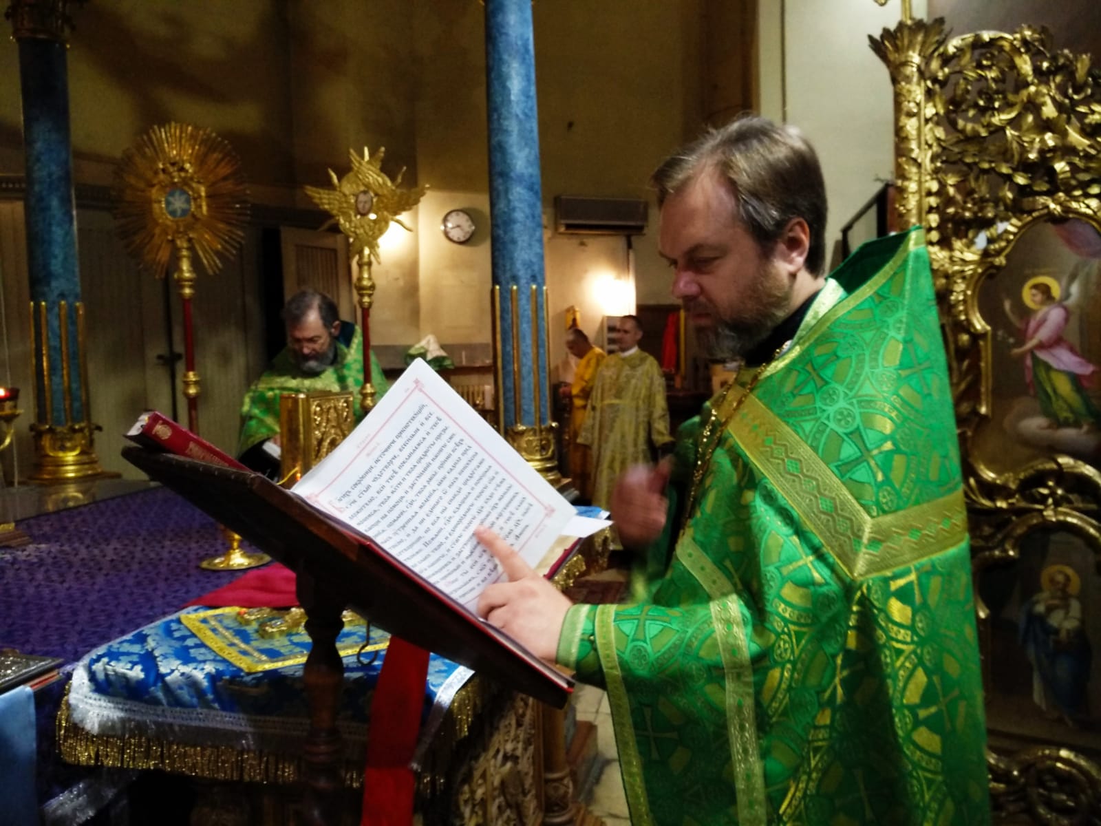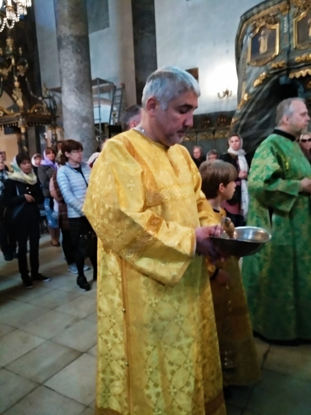 21 апреля, в Неделю 6-ю Великого поста, Вербное воскресенье, в праздник Входа Господня в Иерусалим, настоятель прихода во имя Святой Троицы г. Будапешта возглавил Божественную литургию святителя Иоанна Златоуста в Успенском кафедральном соборе города Будапешта. Ему сослужили священник прихода Святослав Булах и диакон Владимир Чепыжов. За литургией молитвенно пел хор под управлением Евы Гволик.