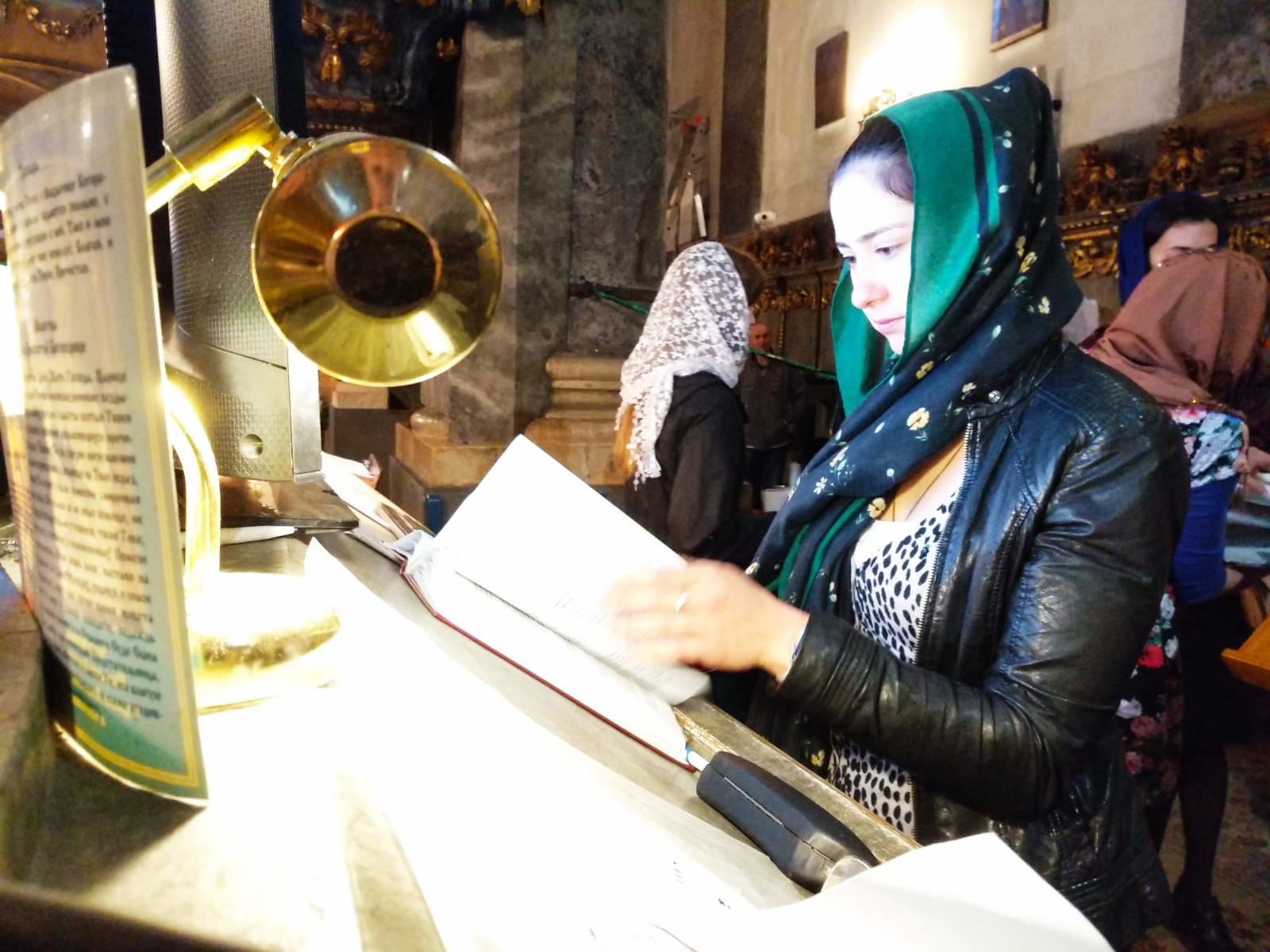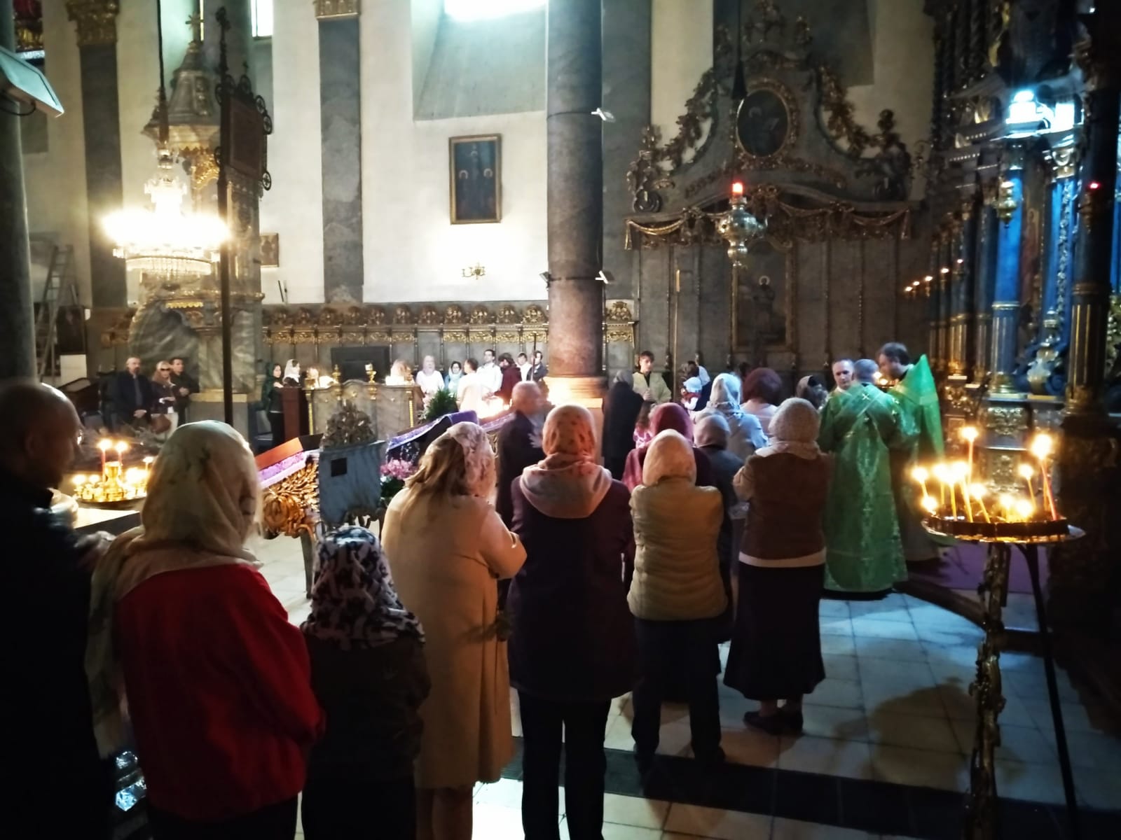На праздничное богослужение многие верующие по традиции пришли с ветвями вербы. По окончании Божественной литургии иерей Димитрий произнес проповедь о сути праздника, поздравил молящихся, а также было совершено освящение ветвей в храме. Накануне, 20 апреля, отец Димитрий совершил в Успенском кафедральном соборе Всенощное бдение.