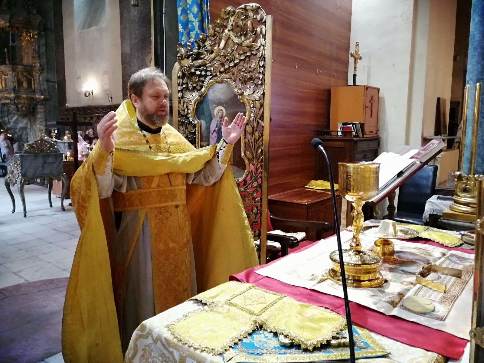14 июля 2019 года, в Неделю 4-ю по Пятидесятнице, настоятель Свято-Троицкого прихода иерей Димитрий Корнилов совершил Божественную Литургию в Успенском кафедральном соборе г. Будапешта. За Литургией молитвенно пел хор под управлением Евы Гволик. По ее окончании отец Димитрий обратился к пастве с проповедью на евангельское чтение о сотнике и его болящем слуге. (Мф. 8, 5-13.)