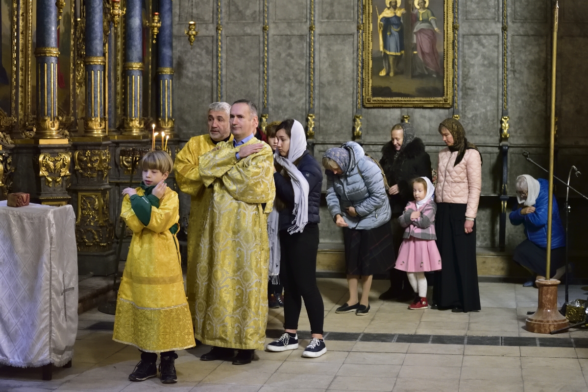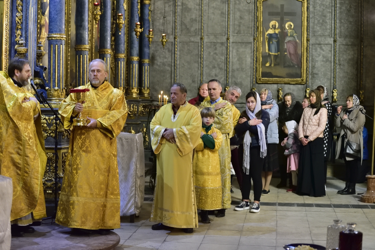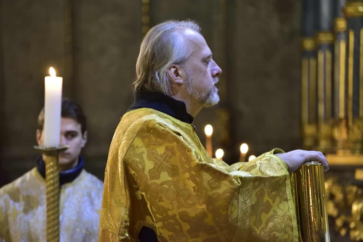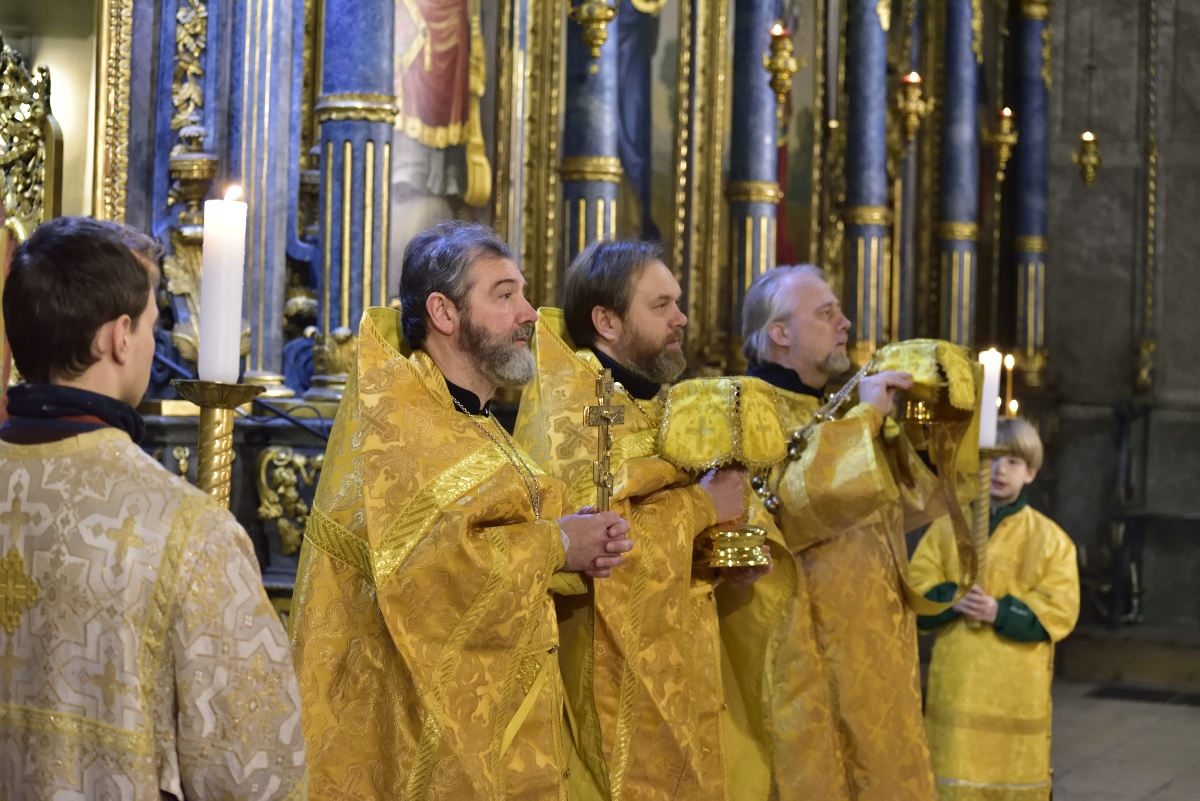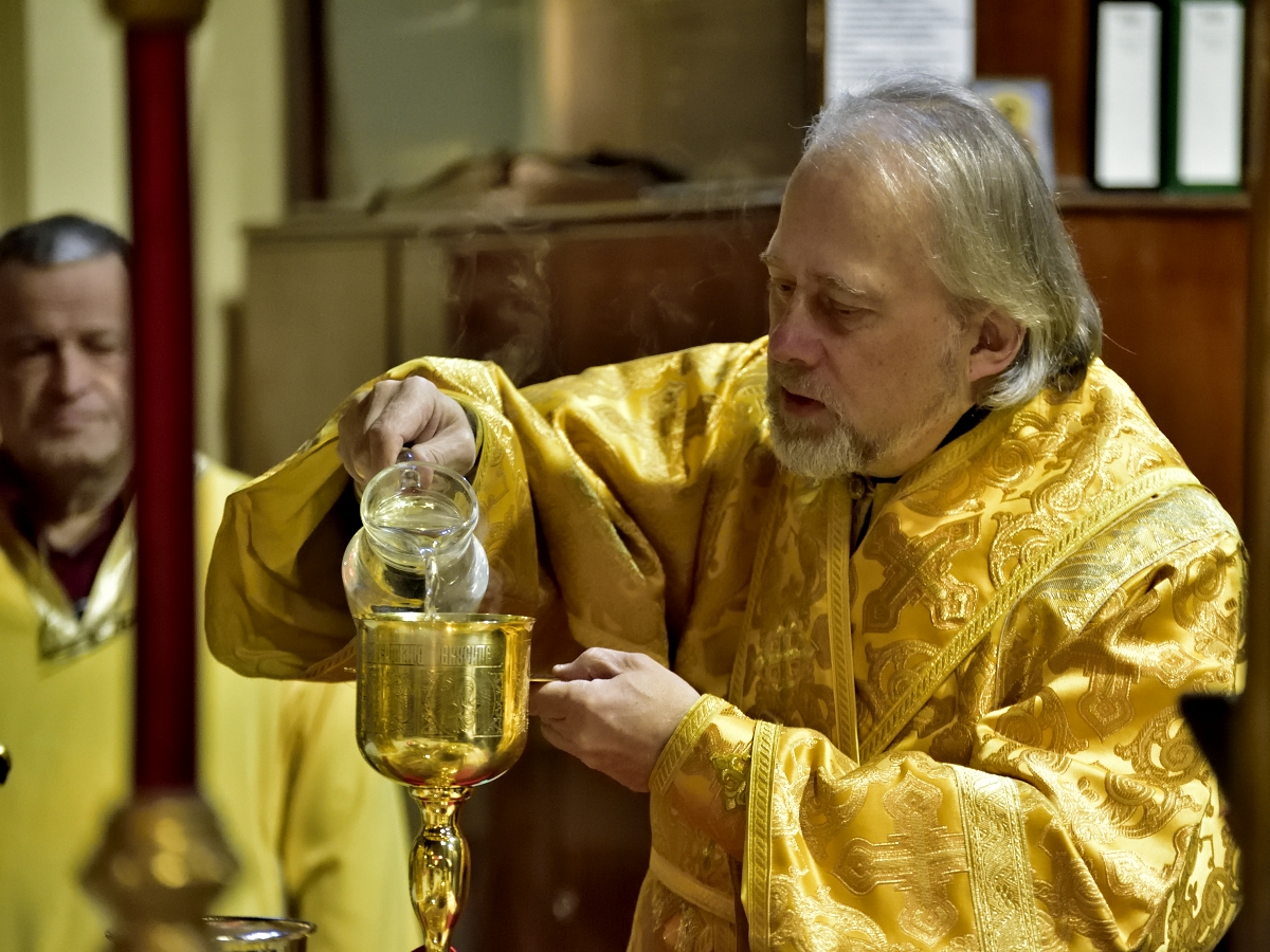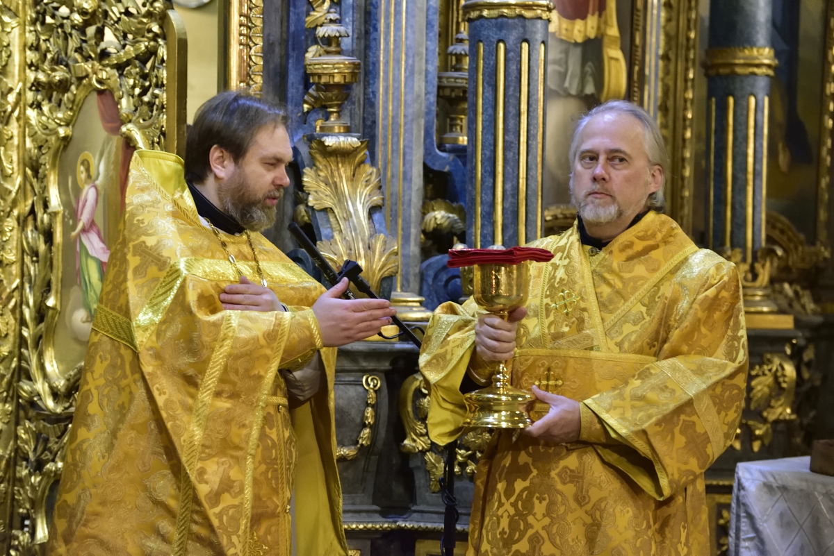 24 ноября 2019 года в Неделю 23-ю по Пятидесятнице, в день памяти Вмч. Мины, Мч. Виктора и мц. Стефаниды, Прп. Феодора Студита, Блж. Максима, Христа ради юродивого, Московского чудотворца, настоятель прихода во имя Святой Троицы иерей Димитрий Корнилов возглавил служение ранней Божественной литургии в Успенском соборе г. Будапешта. Ему сослужили помощник правящего архиерея иерей Святослав Булах и диакон Владимир Чепыжов. Хор пел под управлением регента Евы Гволик.
