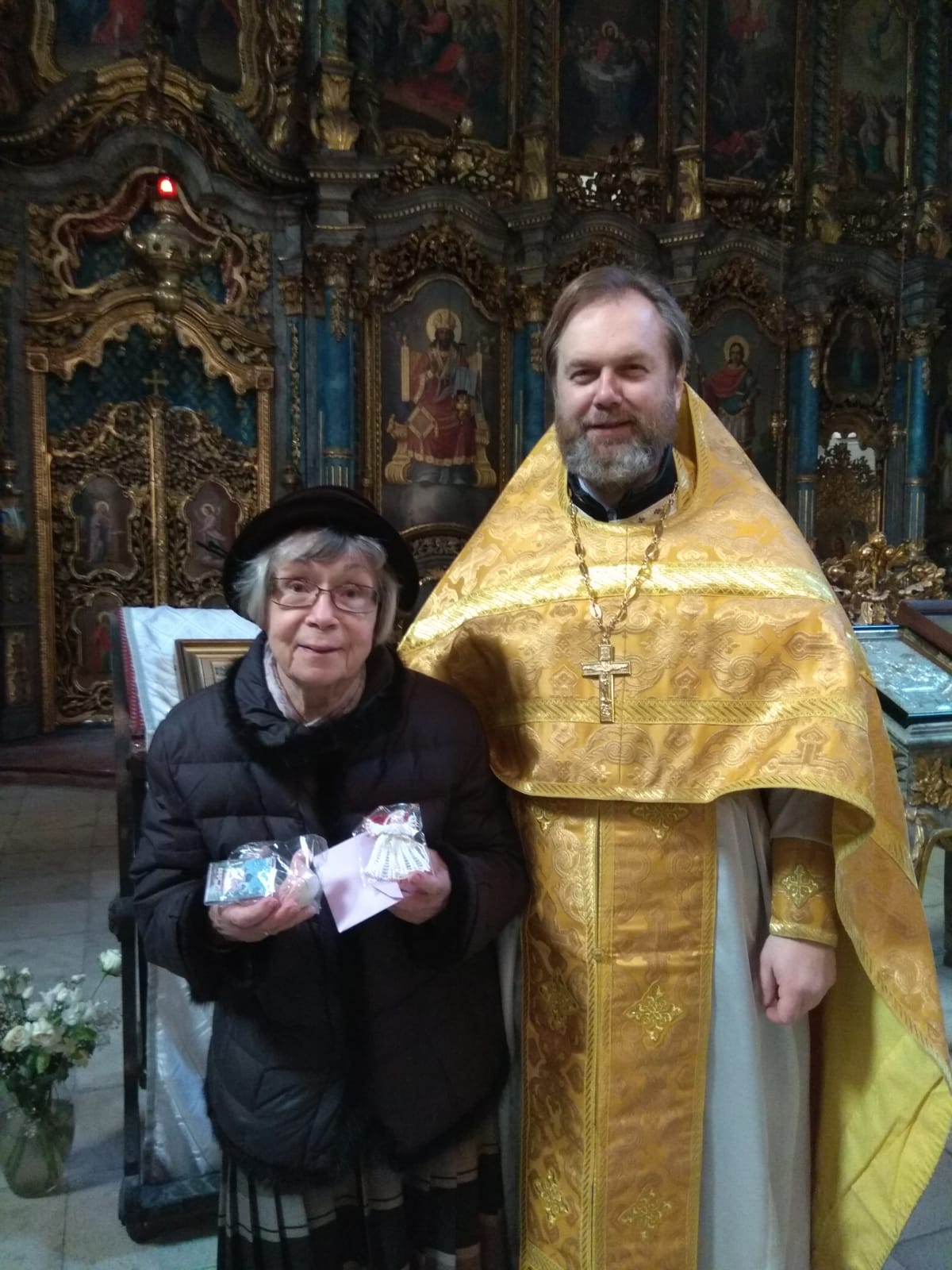 После Божественной Литургии настоятель прихода иерей Димитрий Корнилов поздравил Валерию и вручил подарок.