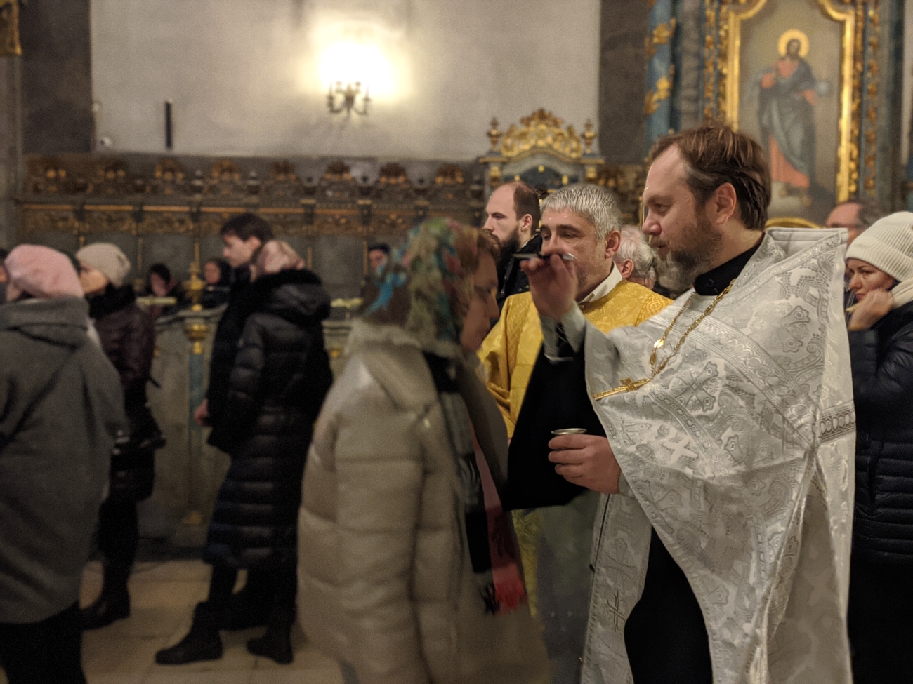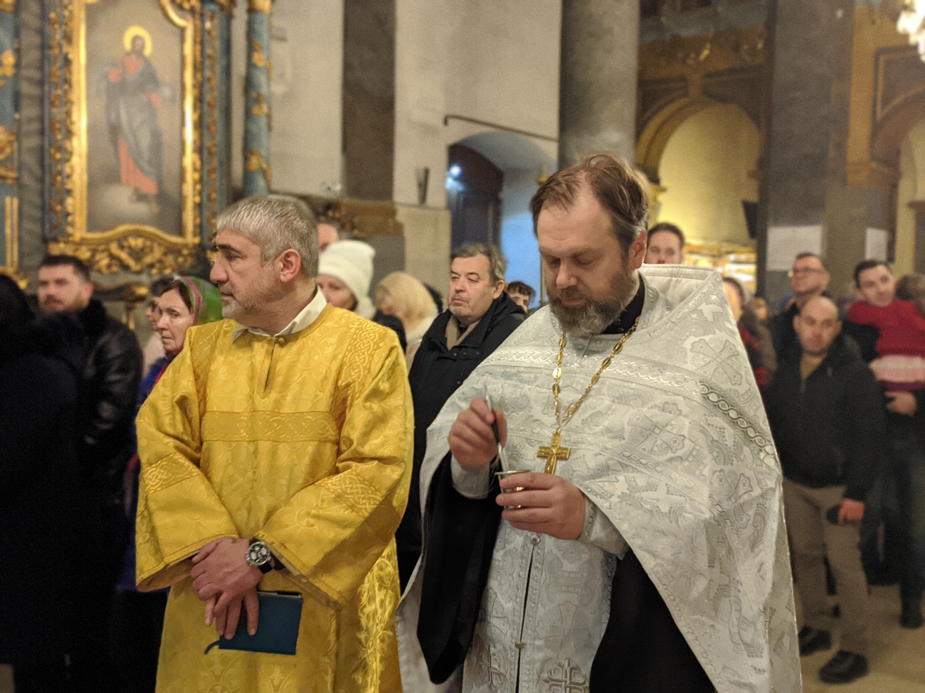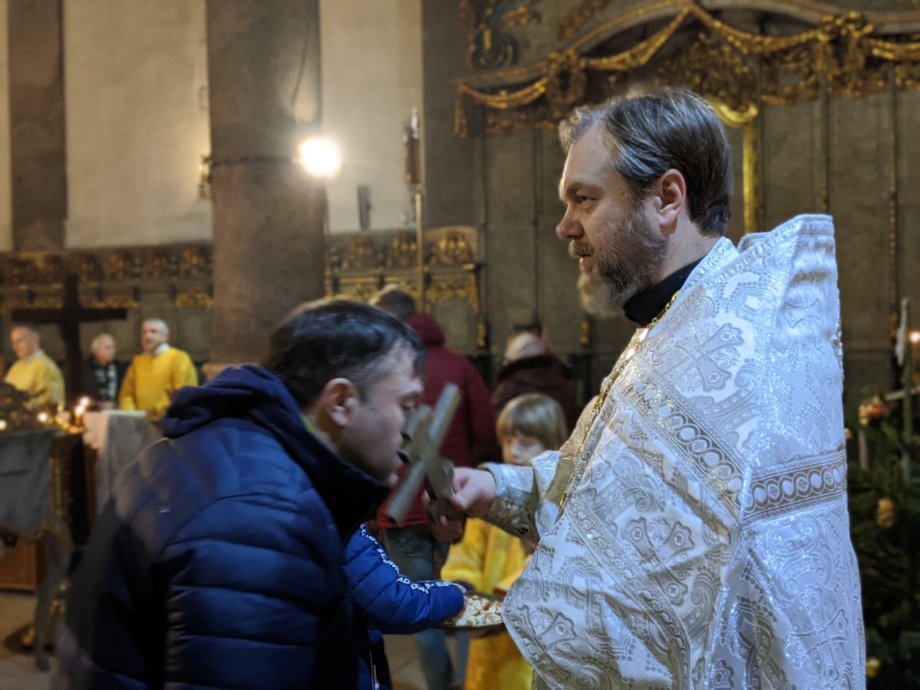 Утром 7 января, в 10-00 была совершена еще одна праздничная Божественная Литургия. Ее возглавил советник-помощник правящего архиерея иерей Святослав Булах. Хором также руководила Елена Гволик. Было очень радостно, что утром только причастников было чуть меньше 50 человек – для русского храма в Венгрии это очень большое число. Всего около 90 человек молилось на утренней Божественной литургии в Кафедральном соборе г. Будапешта.