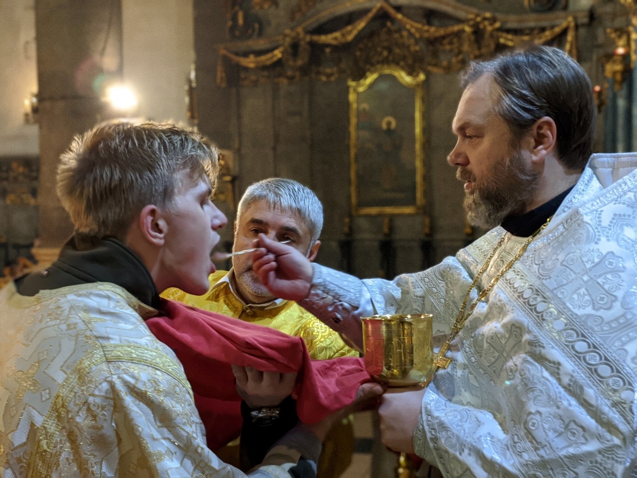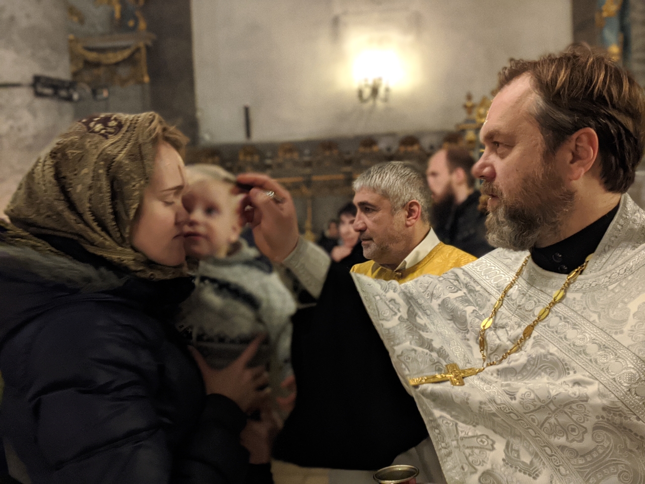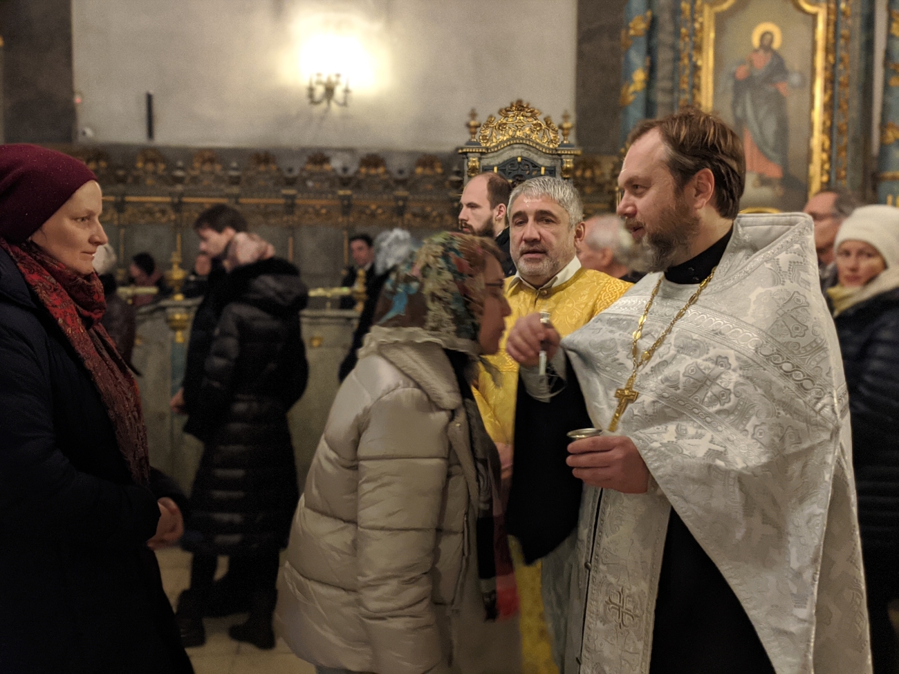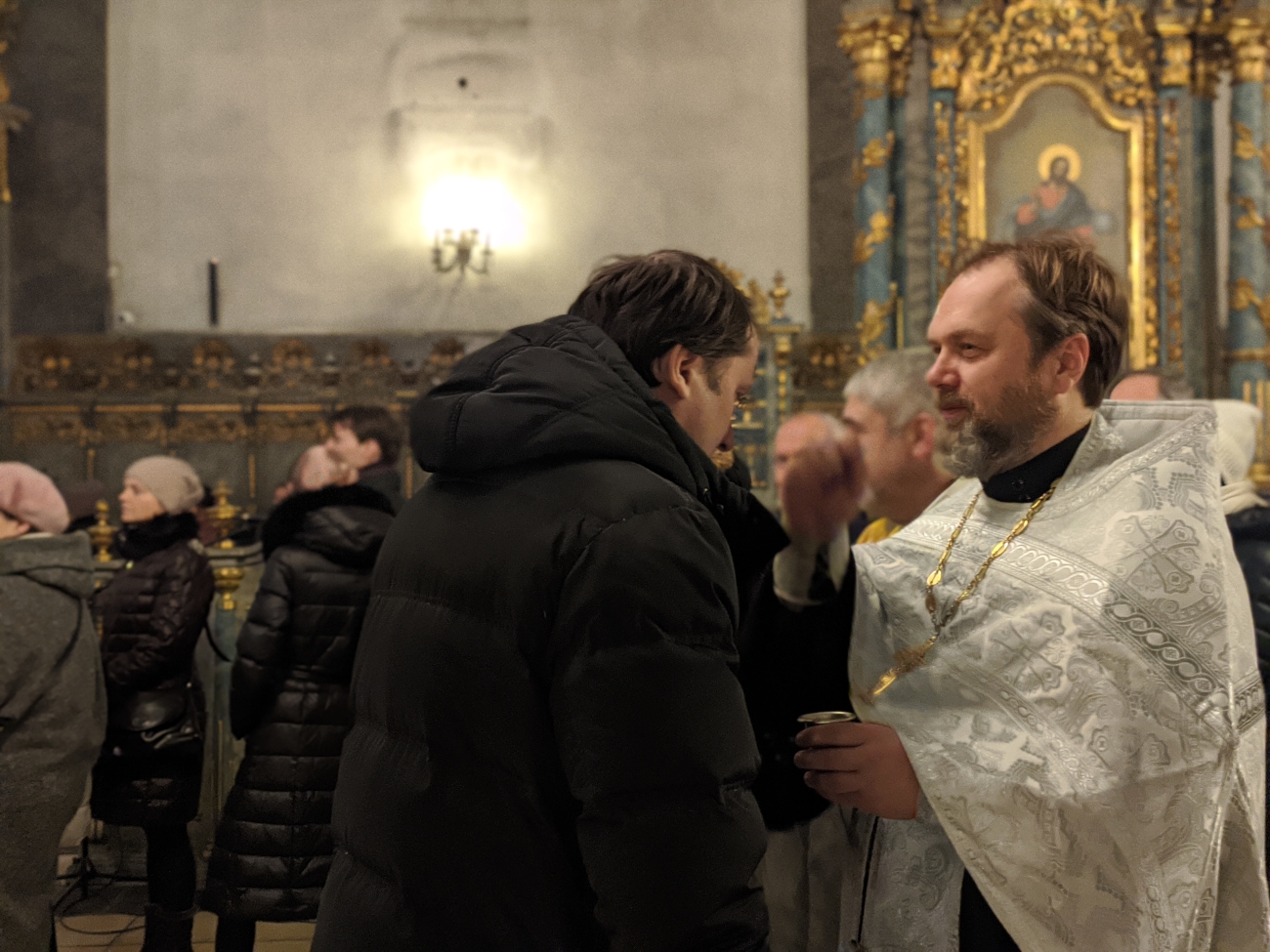 Утром 7 января, в 10-00 была совершена еще одна праздничная Божественная Литургия. Ее возглавил советник-помощник правящего архиерея иерей Святослав Булах. Хором также руководила Елена Гволик. Было очень радостно, что утром только причастников было чуть меньше 50 человек – для русского храма в Венгрии это очень большое число. Всего около 90 человек молилось на утренней Божественной литургии в Кафедральном соборе г. Будапешта.