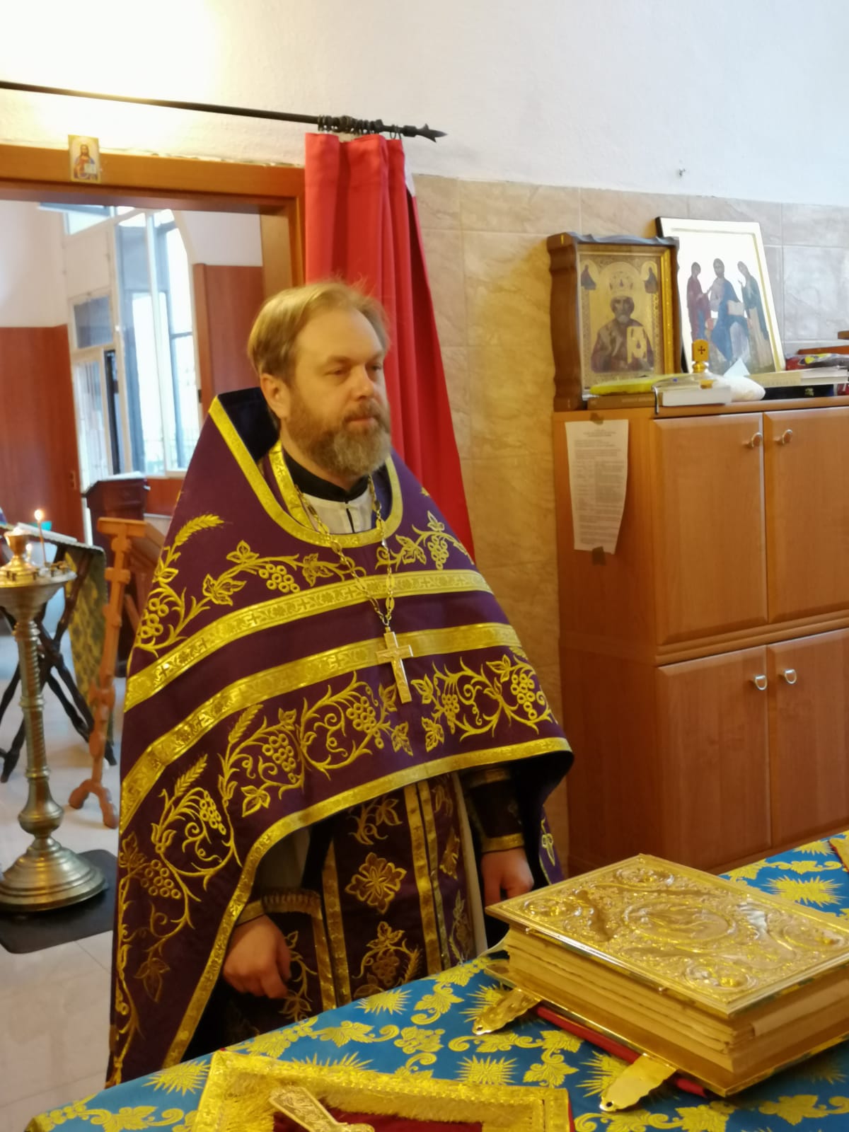 В воскресенье, 5 апреля 2020 года, в Неделя 5-ю Великого поста Прп. Марии Египетской, Божественную литургию возглавил настоятель Свято-Троицкого прихода иерей Димитрий Корнилов. За богослужением ему сослужили второй священник Свято-Троицкого прихода, советник-помощник правящего архиерея Венгерской епархии иерей Святослав Булах, хор прихода пел под управлением регента Елены Гволик.