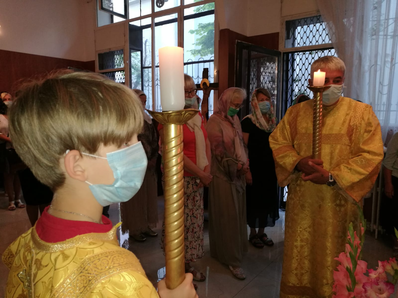 2 августа 2020 года в Неделя 8-я по Пятидесятнице. пророка Илии, в помещении оборудованном под храм, состоялась Божественная литургия.