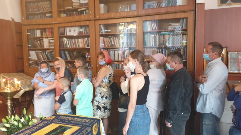Перед причастием отец Димитрий обратился к прихожанам с проповедью, в которой рассказал о земной жизни Пречистой Девы Марии, а также поведал подробности события блаженного Ее Успения.