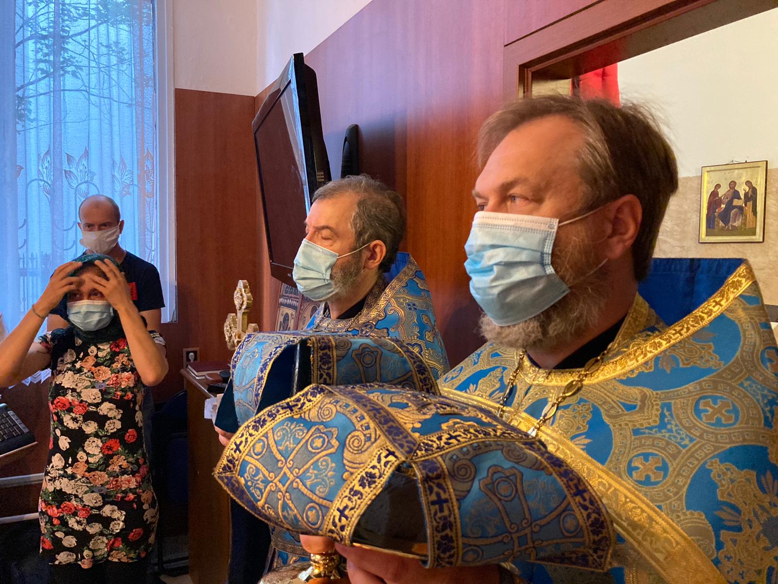 Евангельским зачалом, прочитанным иереем Димитрием, стало повествование апостола Матфея о богатом юноше, пришедшем к Спасителю с духовным вопросом, с вопросом о вечной жизни: «Что сделать мне доброго, чтобы иметь жизнь вечную?». Господь Иисус Христос указал вопрошавшему на препятствия, закрывающие ему путь к искомому, указал на те его сердечные привязанности, отказаться от которых молодому человеку не хватило решимости – юноша, искавший вечной жизни, отошел от подателя этой жизни в скорби и смущении. В продолжение богослужения, после сугубой ектеньи, произнесенной иереем Святославом, была вознесена молитва о прекращении распространения коронавирусной инфекции.