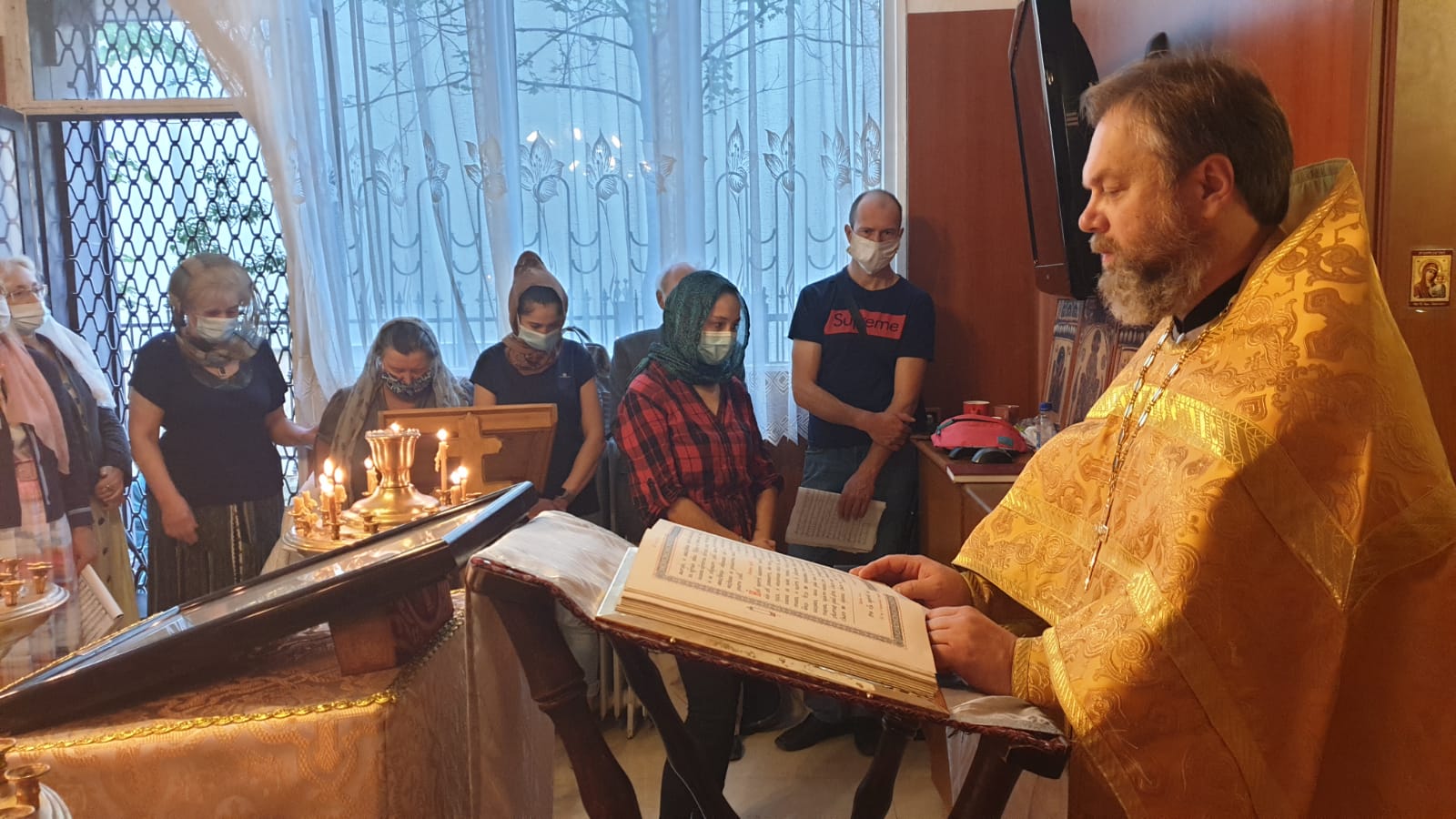 В продолжение богослужения, после сугубой ектеньи, иерей Святослав вознес молитву о прекращении распространения вредоносного и пагубного поветрия коронавирусной инфекции.