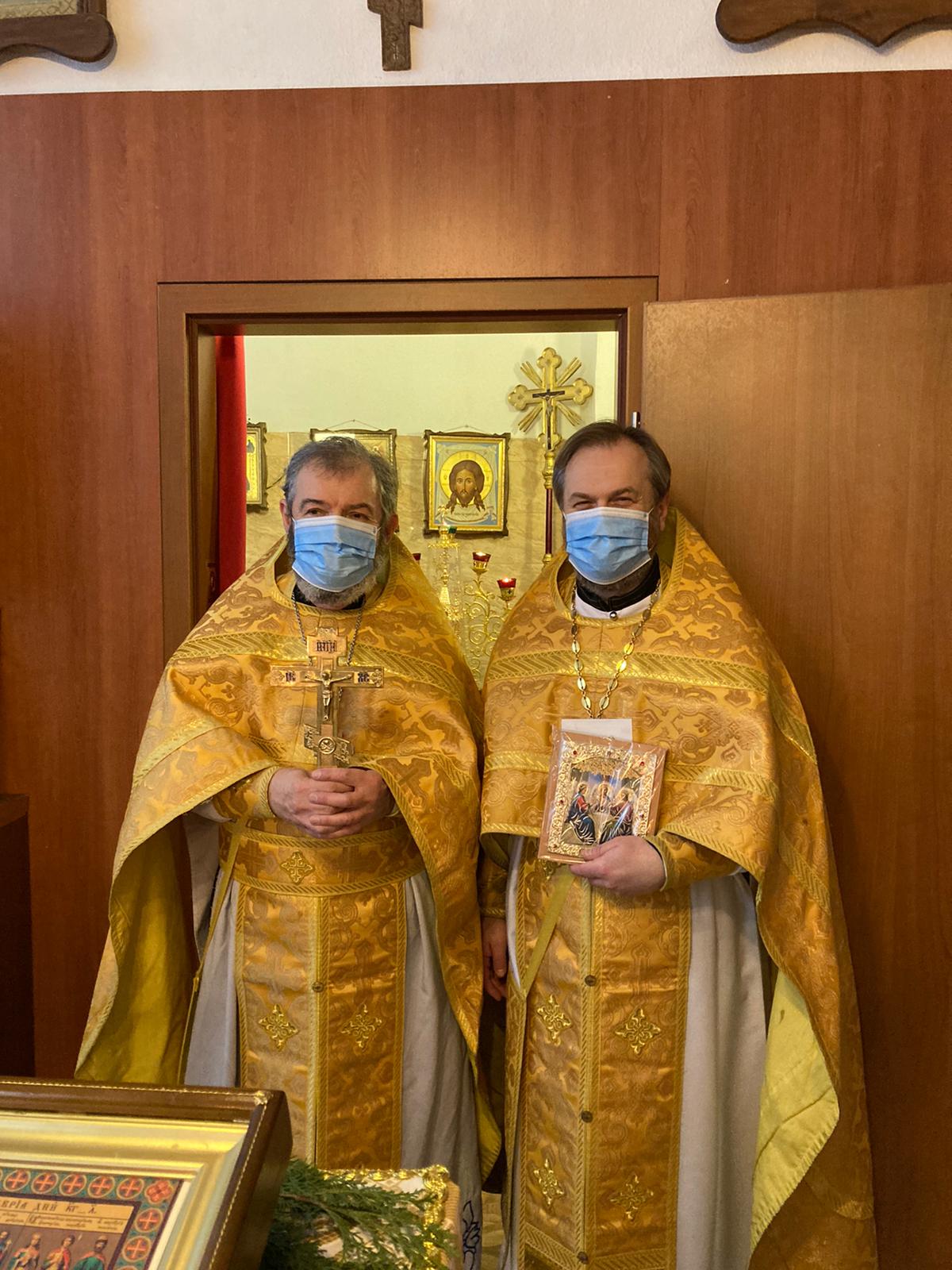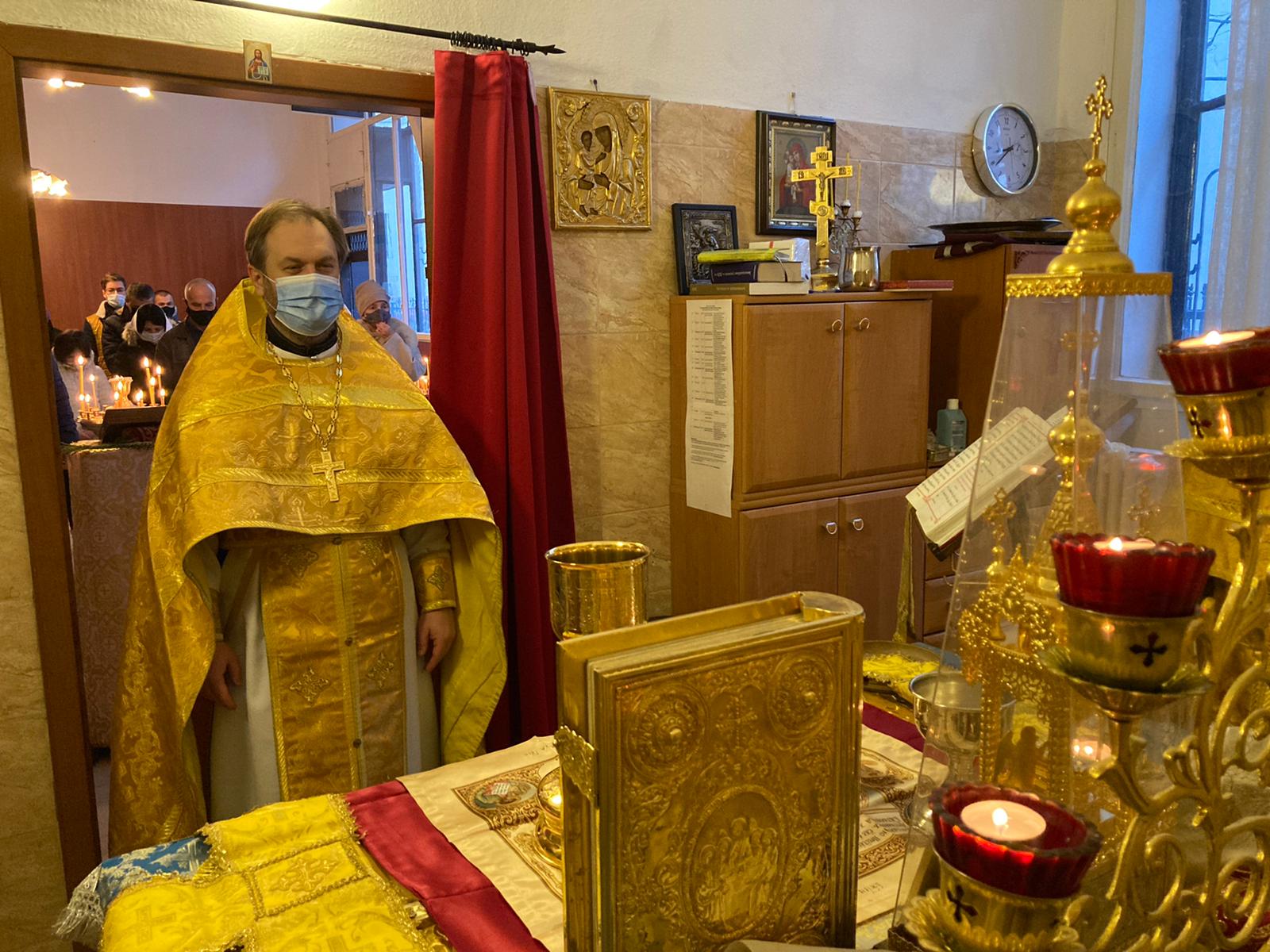 По окончании литургии отец Святослав и прихожане тепло поздравили настоятеля прихода отца Димитрия с прошедшим днем рождения. Затем все вместе пропели «многая лета» настоятелю.