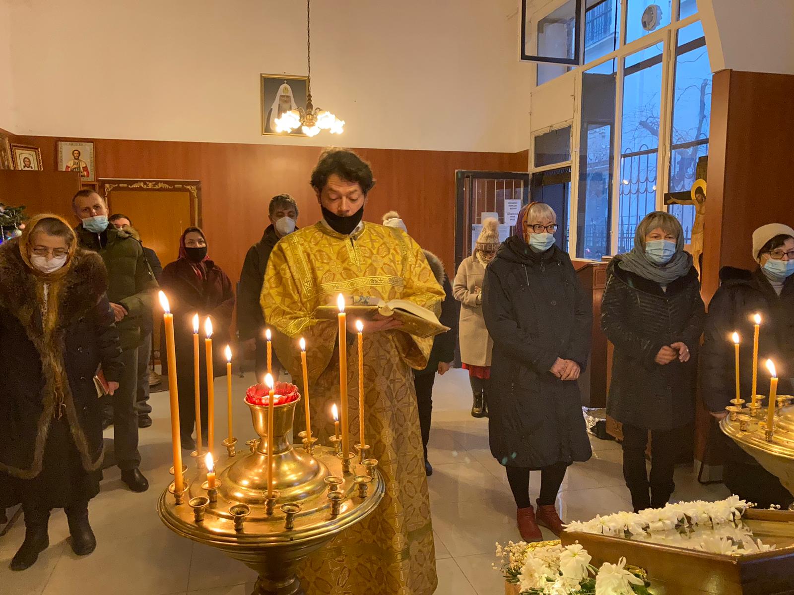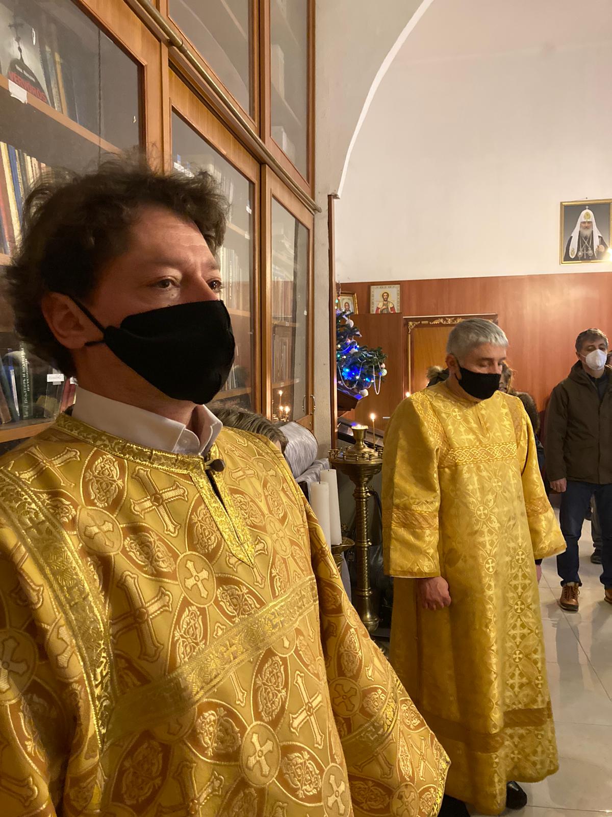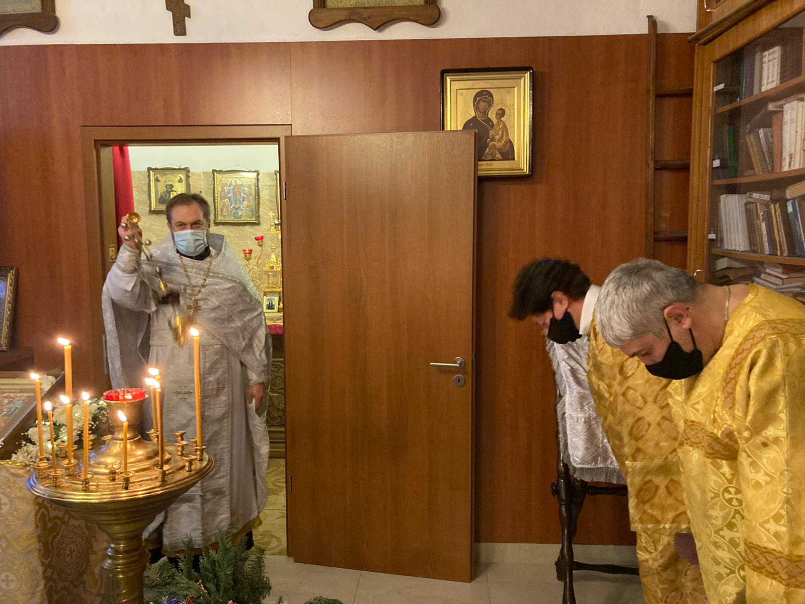 Молитвенные песнопения Рождественского попразднства, его торжественные стихиры, величественный тропарь исполнили певчие приходского хора под управлением Евы Гволик и Ольги Булгаковой. В апостольском послании к Галатам, прочитанном алтарником Владимиром Архангельским, молящимся был представлен рассказ святого Павла о его неумеренном, в прошлом, ревностном следовании отеческим преданиям.