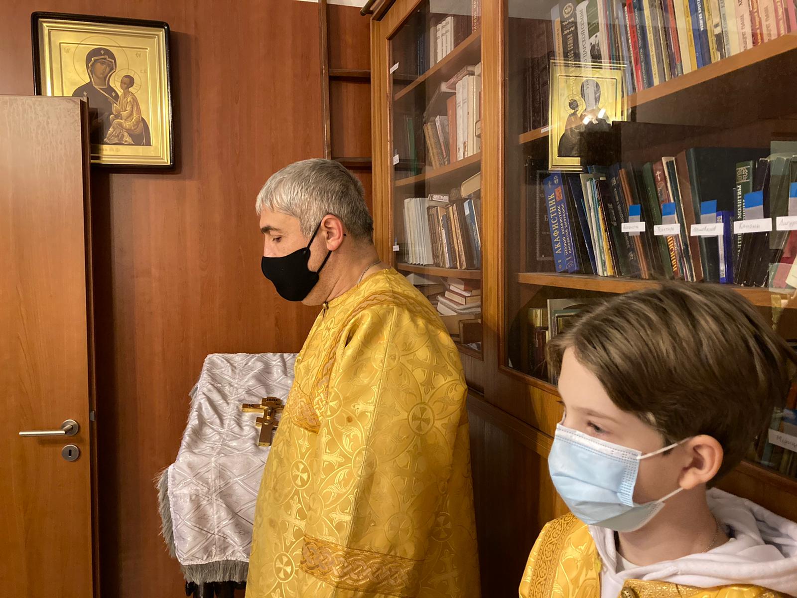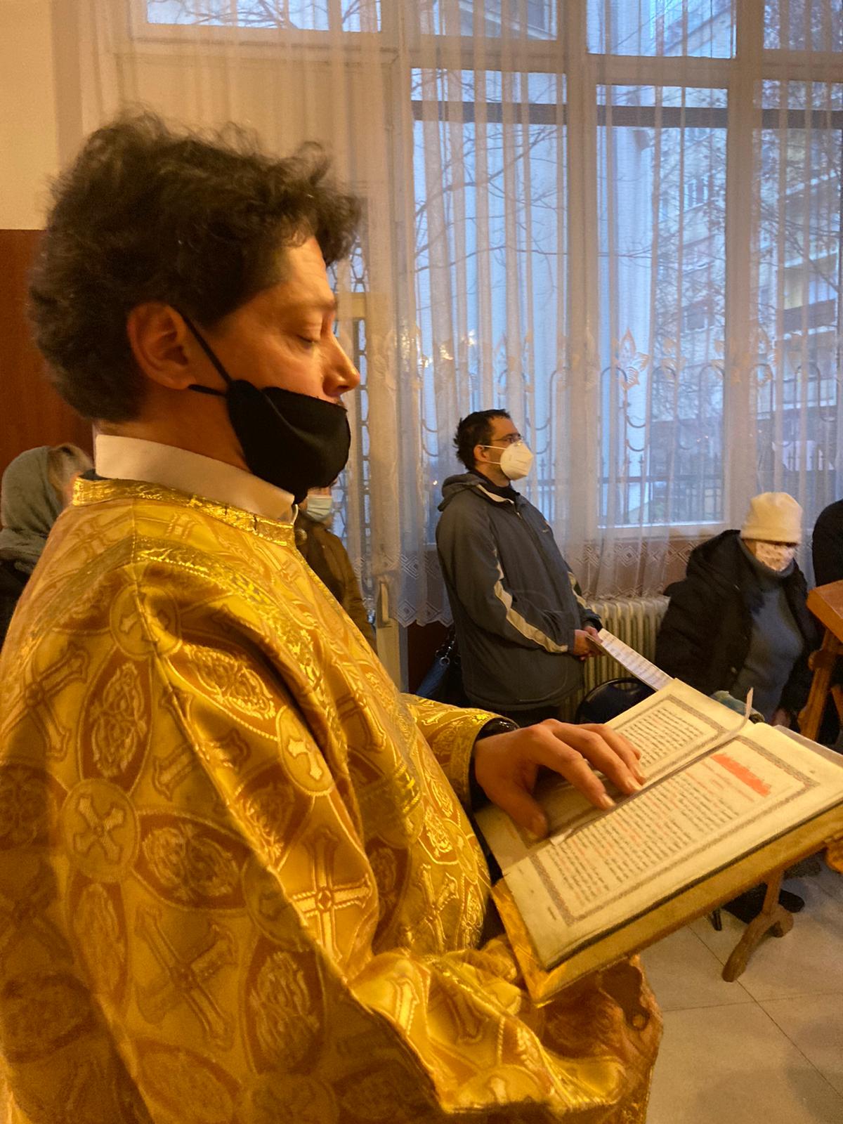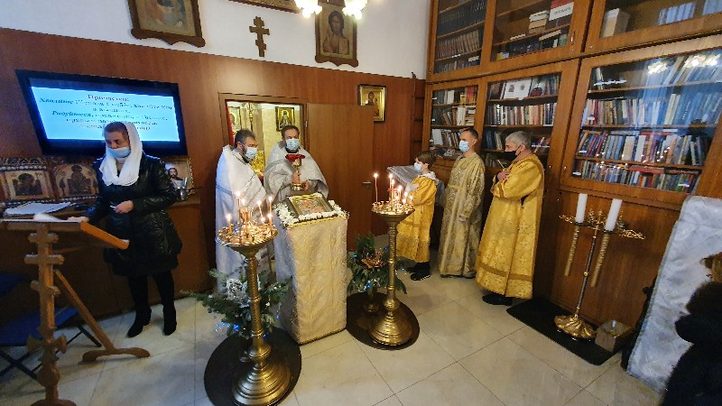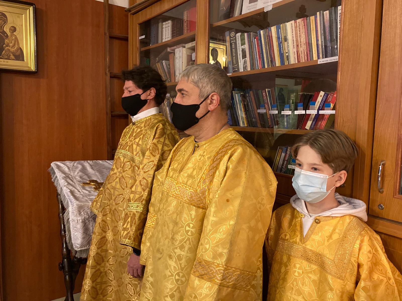 В евангельском отрывке, возвещенном иереем Димитрием, был приведен рассказ апостола Матфея об удалении Иосифа, по повелению Ангела, с Богомладенцем Иисусом Христом и Богоматерью в Египет, – от Ирода, искавшего погубить воплотившегося Сына Божия. Воскресная литургия продолжилась сугубой ектенией и молитвой иерея Святослава о прекращении распространения пагубного поветрия коронавирусной инфекции.