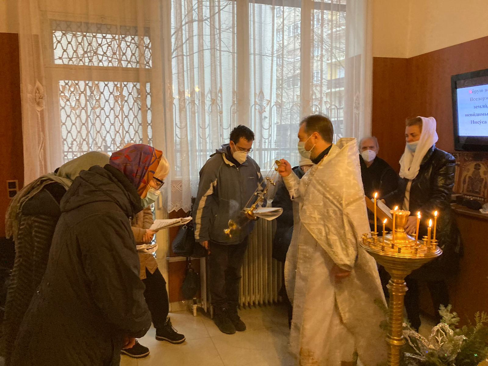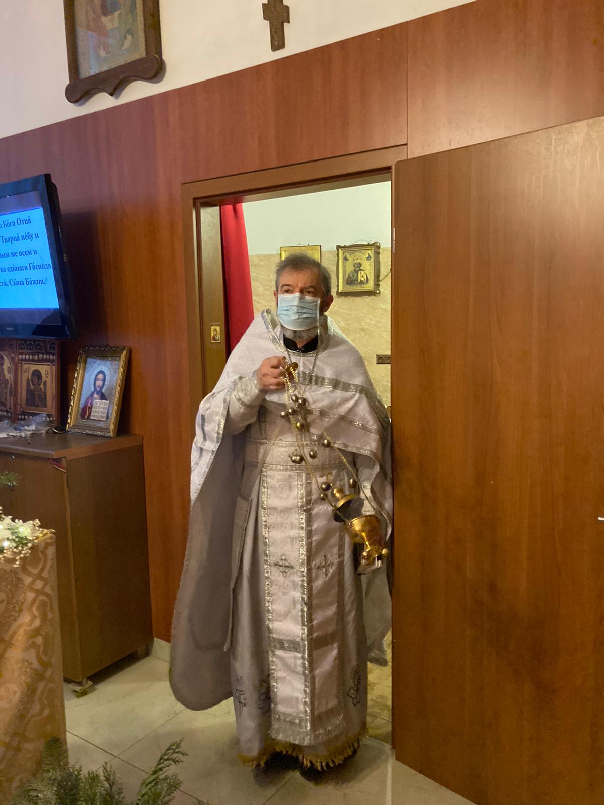 По окончании Божественной литургии, иерей Димитрий поздравил всех с праздником Рождества Христова и со светлым периодом святочных дней, поблагодарил собравшихся за общую молитву и преподал всем свое пастырское благословение.