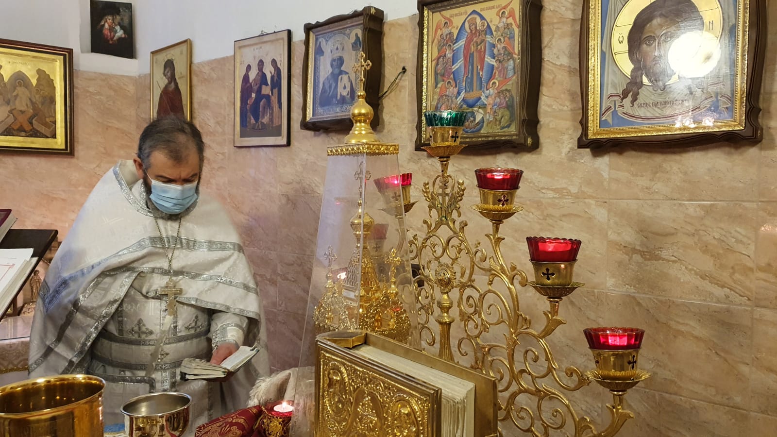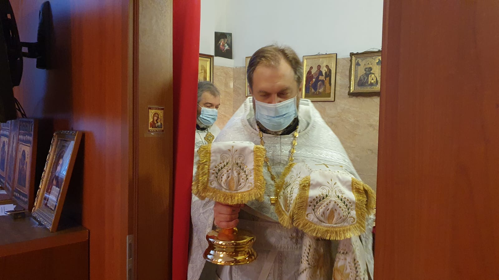 Божественная литургия продолжилась сугубой ектенией, после которой иерей Святослав вознес свою сугубую молитву о прекращении пагубного поветрия распространяющейся коронавирусной инфекции.