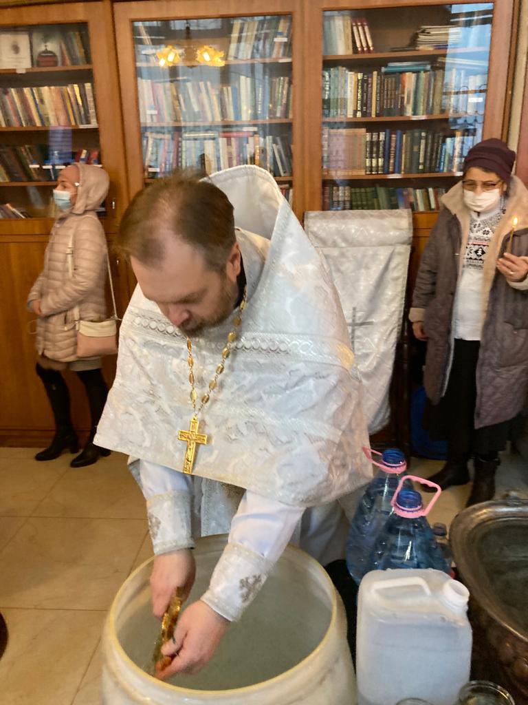 В воспоминание священного Иорданского события, обновляемого сегодня Святой Церковью особым чином великого освящения воды, настоятель Свято-Троицкого прихода иерей Димитрий и советник-помощник правящего архиерея иерей Святослав совершили это священнодействие. Так, после чтения трех паремий, апостольского послания и Святого Евангелия, была произнесена ектения с особыми прошениями об освящении воды силою и действием Святой Троицы, о ниспослании на воду благословения Иорданова и даровании ей благодати к исцелению душевных и телесных немощей, в отгнание всякого навета видимых и невидимых врагов.