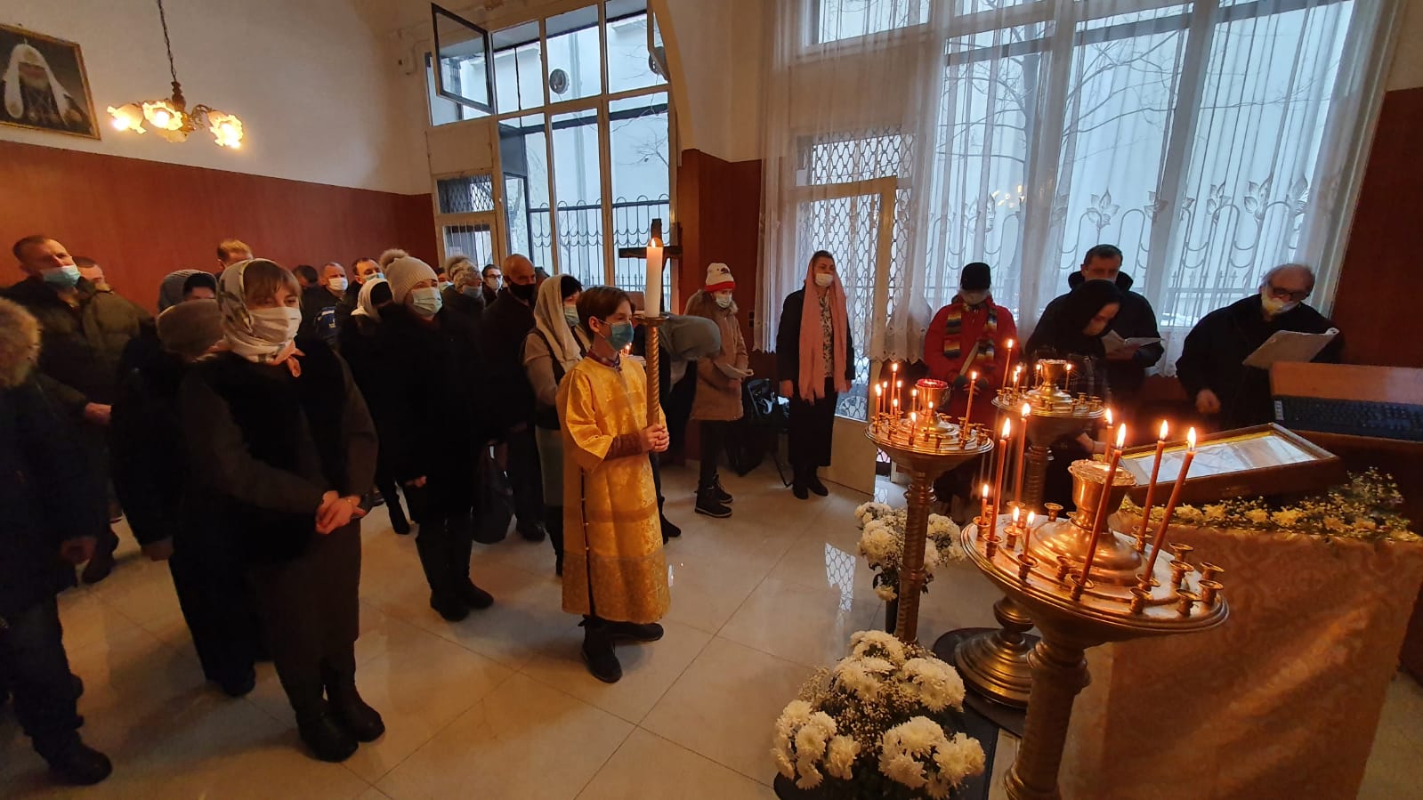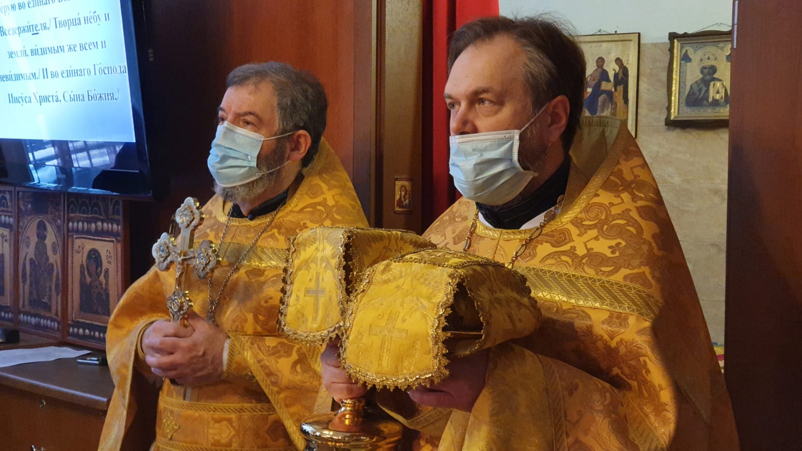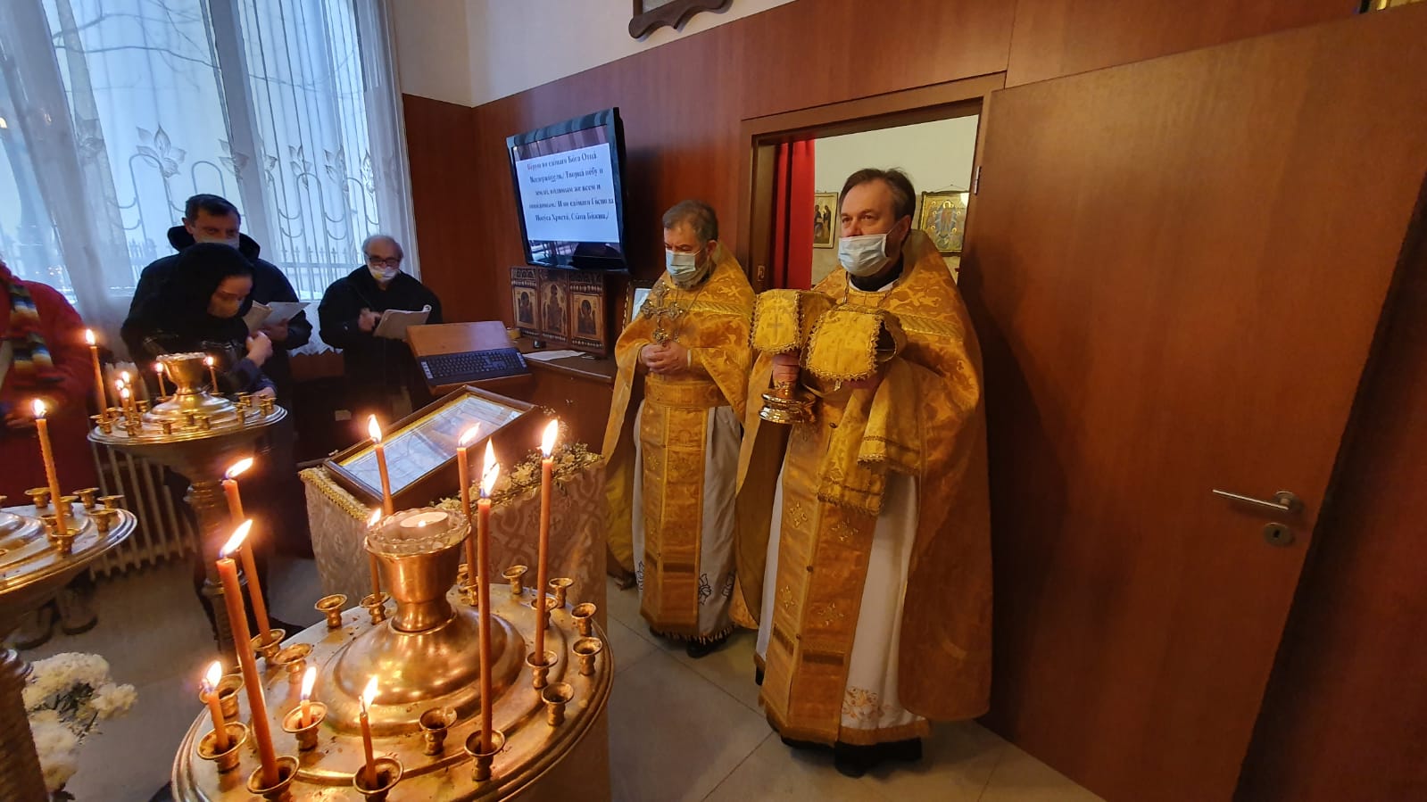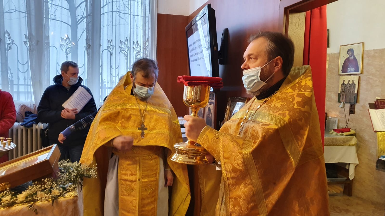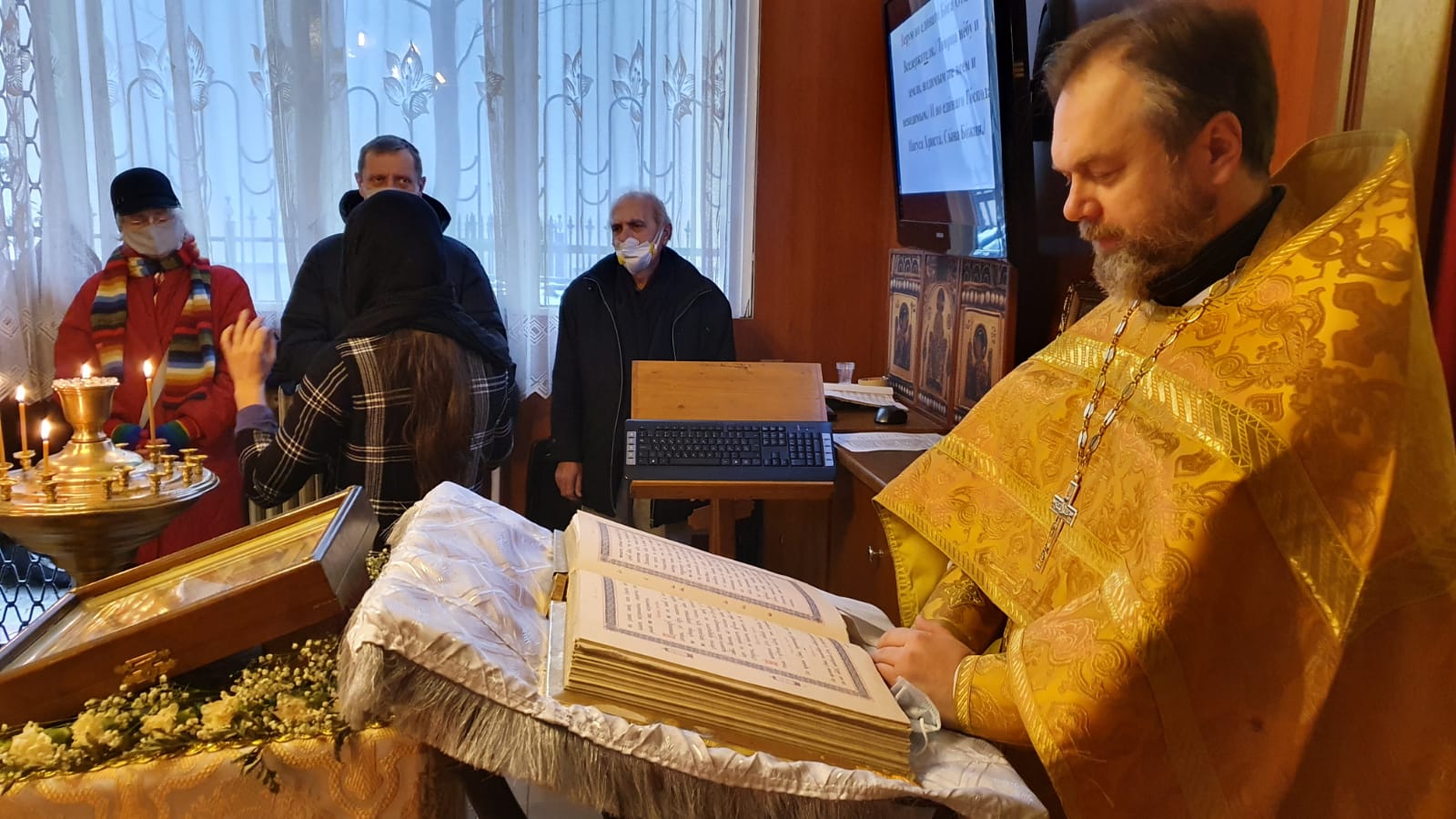 По прочтении Священного Писания, богослужение продолжилось прошениями сугубой ектеньи, после которой иерей Святослав вознес свою молитву о прекращении пагубного поветрия распространяющейся коронавирусной инфекции.